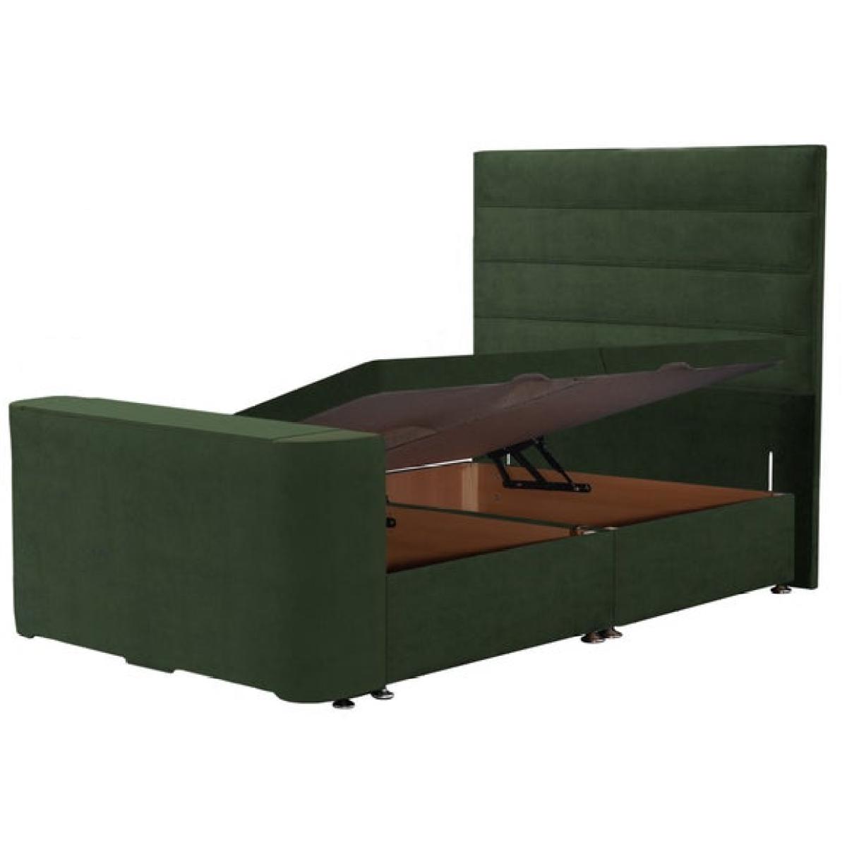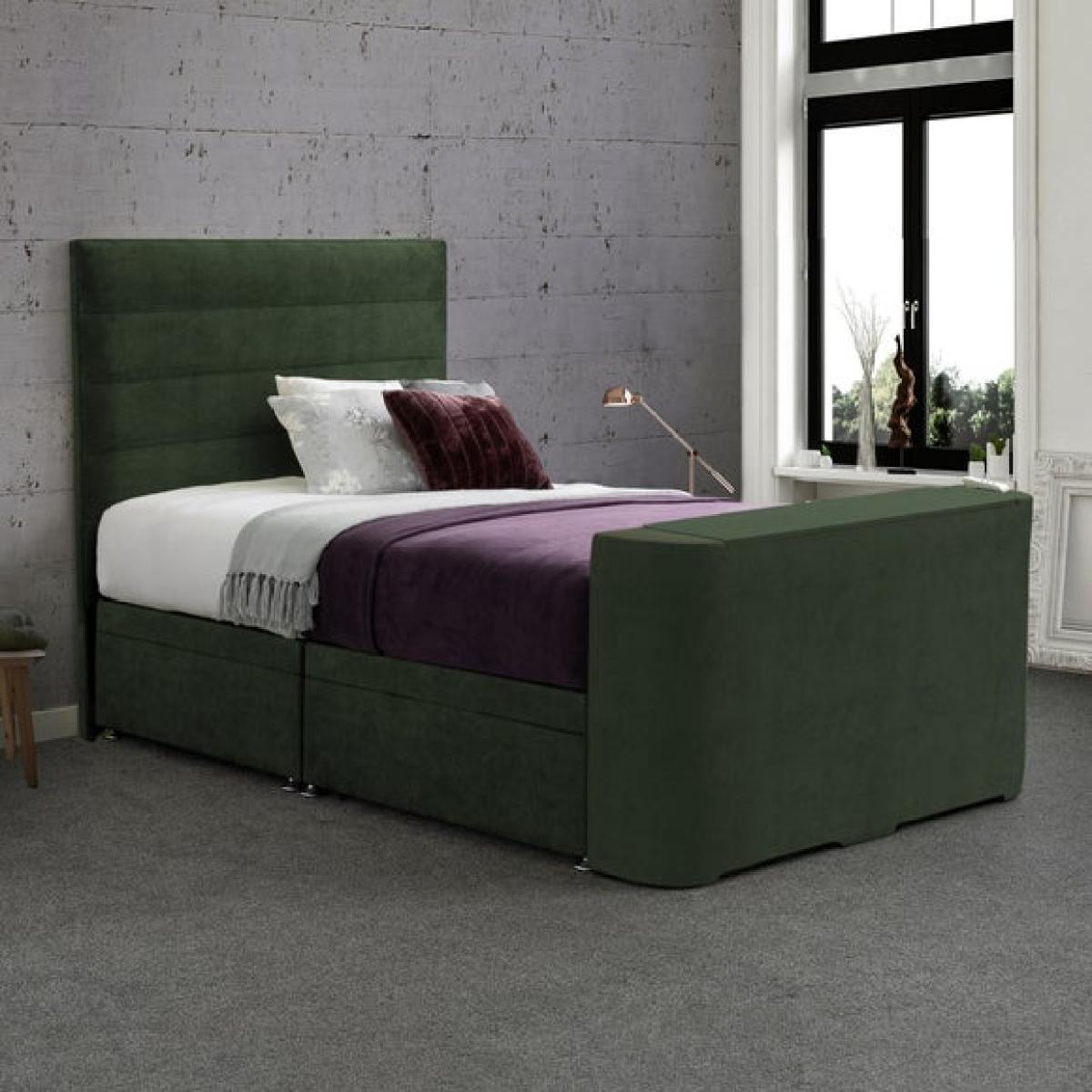 * Remote-controlled TV lift built into the foot end * Suitable for TVs up to 40" with max depth of 8cm (TV not included) * Horizontally pleated headboard for a modern look * Side-lift ottoman base for hidden storage * Available in a range of colour options A clever mix of storage and tech, the Gaia TV Bed is built for relaxed evenings and tidy spaces. Upholstered in soft-touch Luxy fabric, it’s available in a range of colours to suit your style. The horizontally pleated headboard adds a modern finish, while the foot end features a built-in TV lift for screens up to 40" (TV not included). The lift is remote-controlled and must be mains connected to operate. The side-lift ottoman base offers generous hidden storage, perfect for keeping things out of sight. A smart choice for those who like their bedroom to work a little harder.