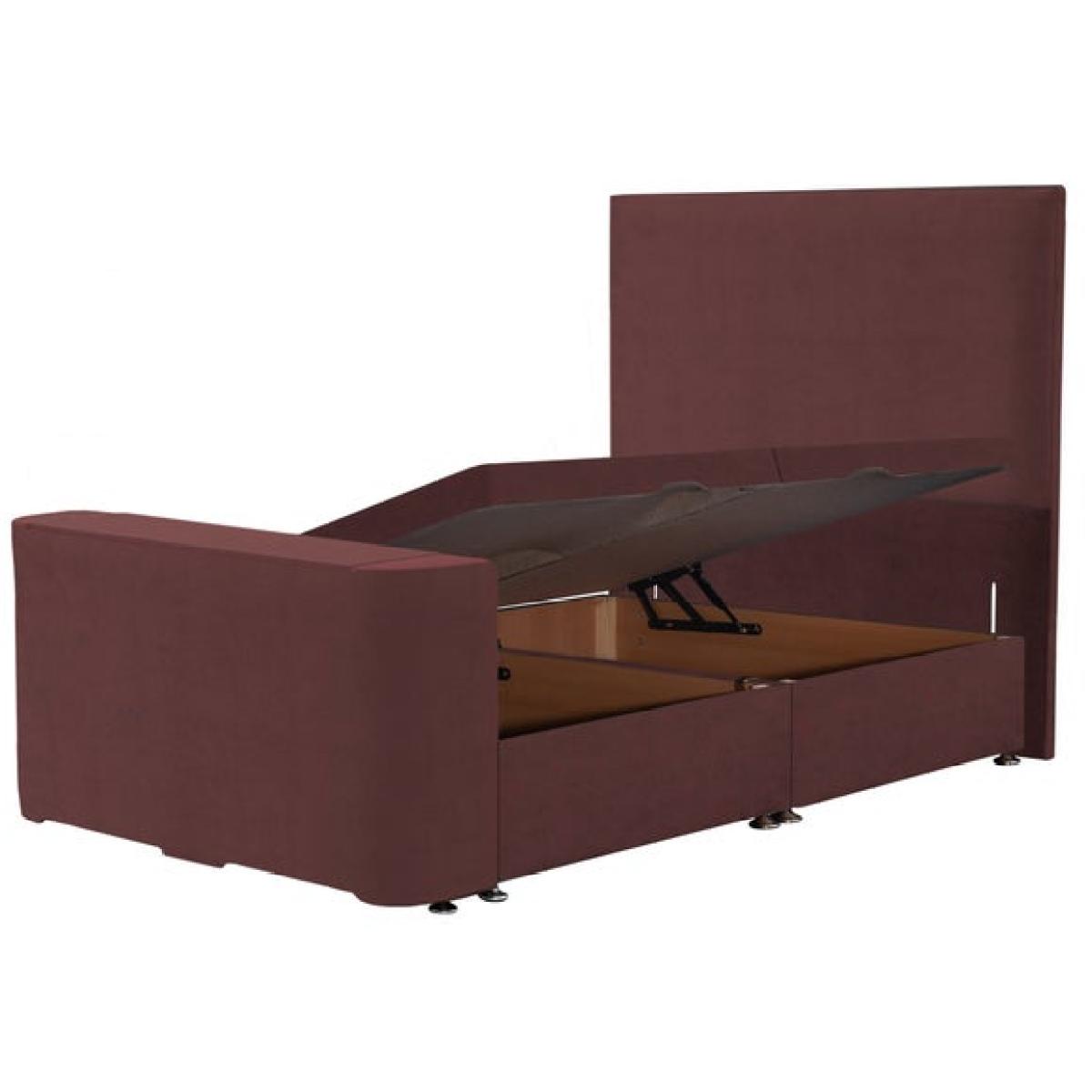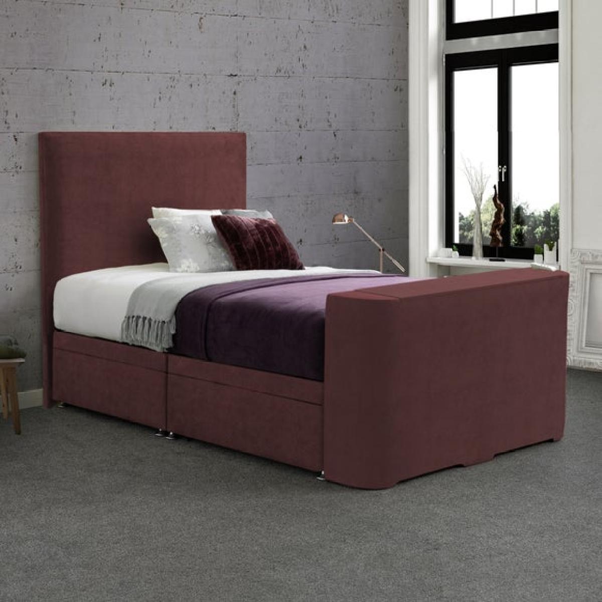 * TV lift built into the foot end * Remote control included for smooth operation * Holds TVs up to 40" with max depth of 8cm (TV not included) * Horizontally pleated headboard with a modern finish * Side-lift ottoman base for underbed storage This bed is built for nights in and clutter-free mornings. Upholstered in soft Luxy fabric, it comes in a range of colours to suit your space. The headboard features horizontal pleats for a structured look that adds texture without taking over. At the foot end, a TV-ready compartment holds screens up to 40 inches, operated by remote and powered via mains connection. The TV is not included, so you can choose the model that suits you best. Underneath, the side lift ottoman base gives you plenty of storage to keep things tucked away.