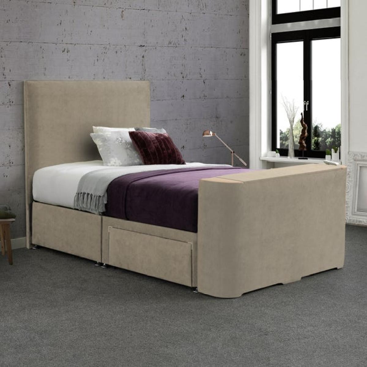 * TV not included – mains connection required for lift mechanism * Upholstered in plush fabric for a soft finish * Available in multiple sizes and storage options * Remote control included for easy TV lift operation * TV-ready foot end fits screens up to 40" (max depth 8cm) Upgrade your bedroom with a design that blends comfort and modern living. The headboard offers a neat, streamlined finish, while the foot end is ready to hold a TV up to 40" (max depth 8cm). Operated by the included remote control, the lift mechanism requires a mains connection for smooth operation. Upholstered in a soft-touch fabric for a luxurious feel, this bed is built with a strong frame for lasting quality. Please note: TV is not included.