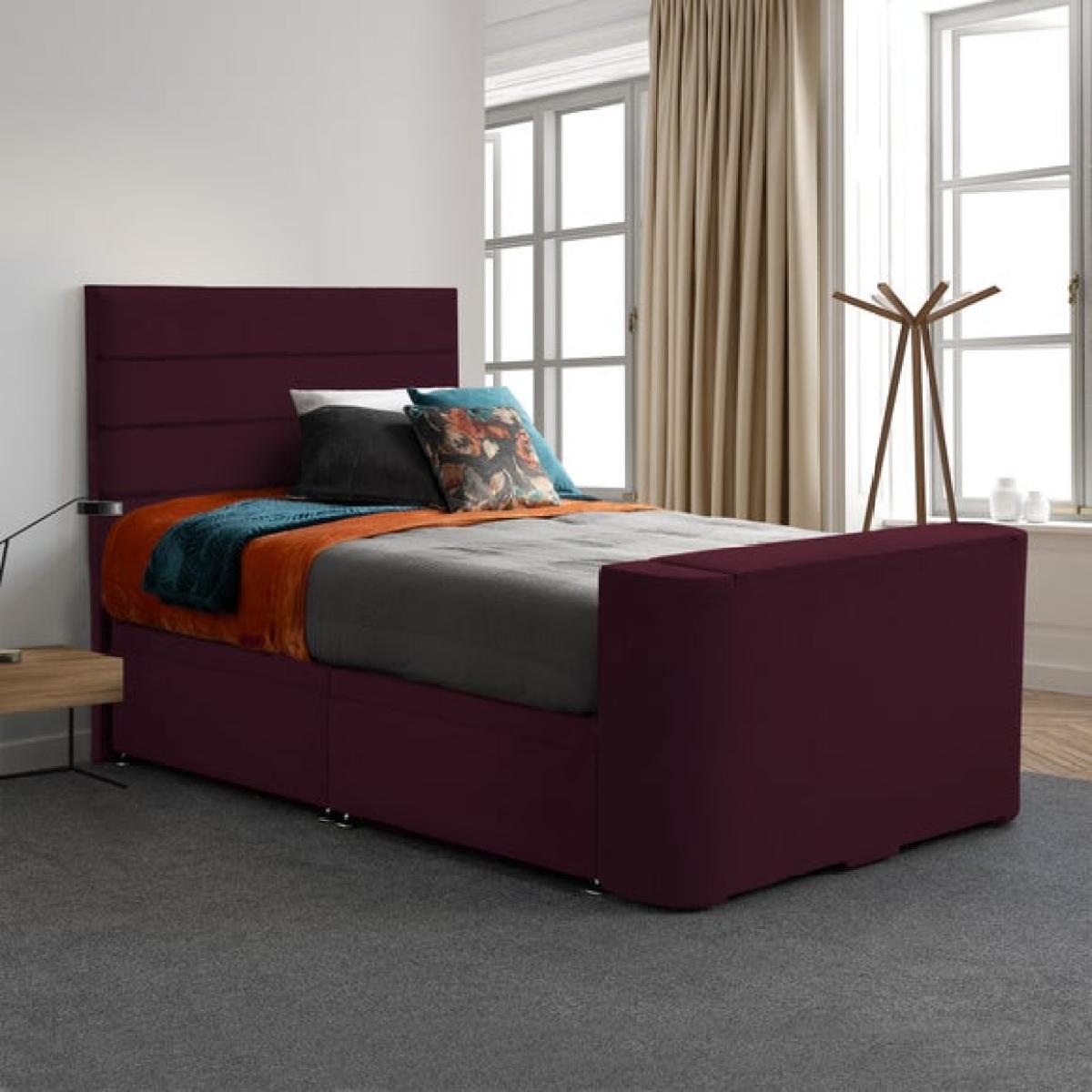 * Remote operated mechanism * Fits televisions up to 40 inches (not included) * Horizontal pleated headboard * Side lift ottoman base for storage * Available in multiple colours A bed that keeps things neat while adding a touch of tech. Upholstered in plush Luxy fabric, it’s soft to the touch and available in a range of colours to suit your space. The headboard features horizontal pleating for a structured finish that works well in modern bedrooms. At the foot end, there’s a built-in compartment designed to hold a television up to 40 inches in size and 8 centimetres in depth. The lift is operated by remote and must be connected to mains power. The TV is not included, so you can choose the model that suits you best.