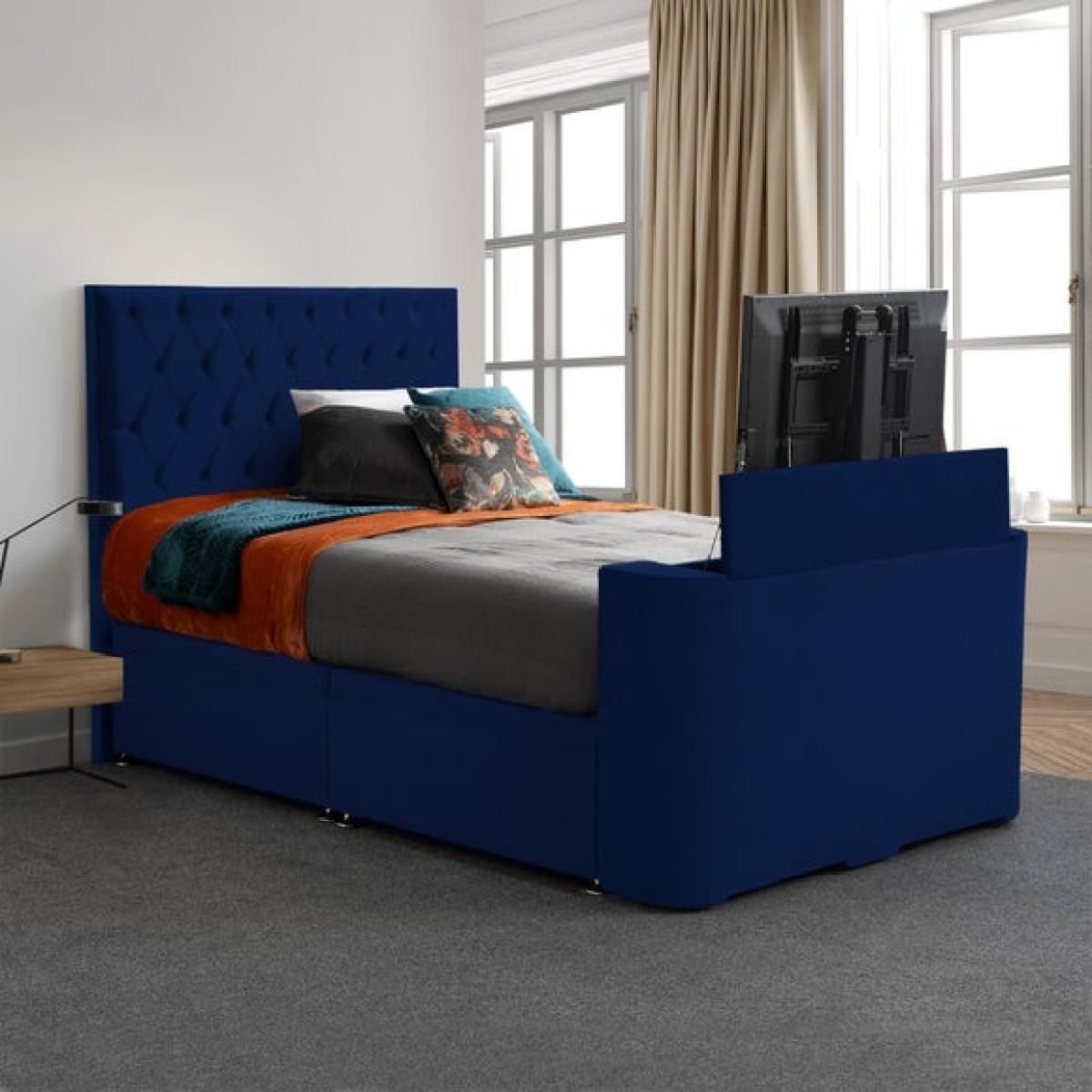 * TV not included – requires mains connection for lift mechanism * TV-ready foot end fits screens up to 40" (max depth 8cm) * Side-lift ottoman base for spacious hidden storage * Remote control included for effortless TV lift operation Enjoy the perfect mix of comfort and practicality with this upholstered TV bed. The side-lift ottoman base offers generous storage to keep your bedroom organised, while the headboard features neat button detailing for a refined finish. The foot end is designed to hold a TV up to 40" (max depth 8cm), operated smoothly by the included remote control. Please note: TV is not included and the lift mechanism requires a mains connection.