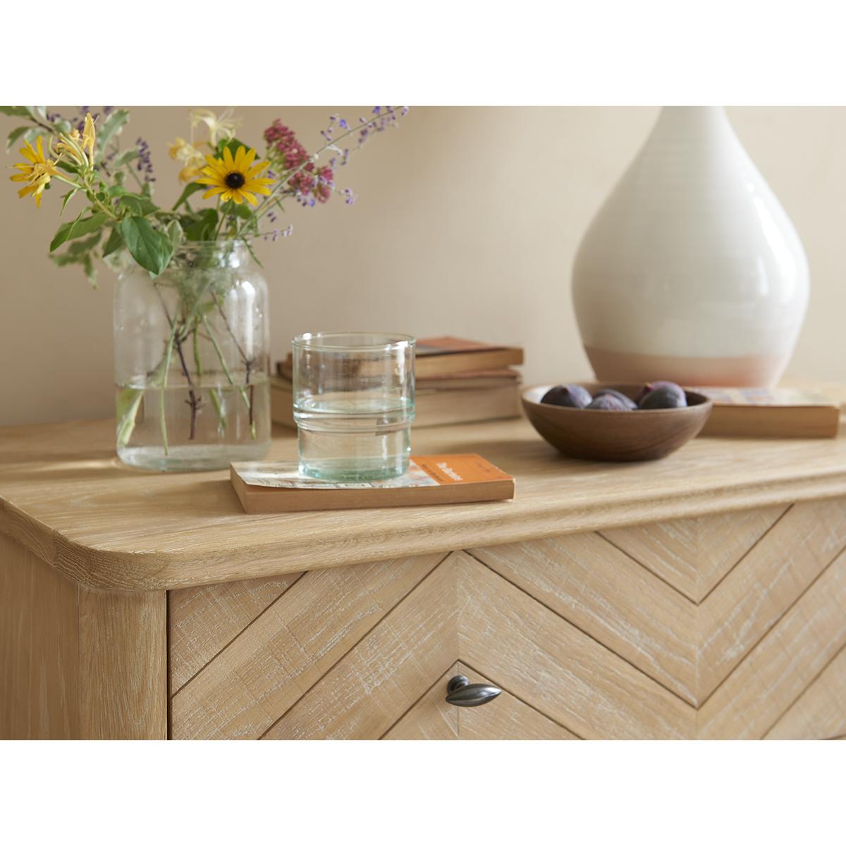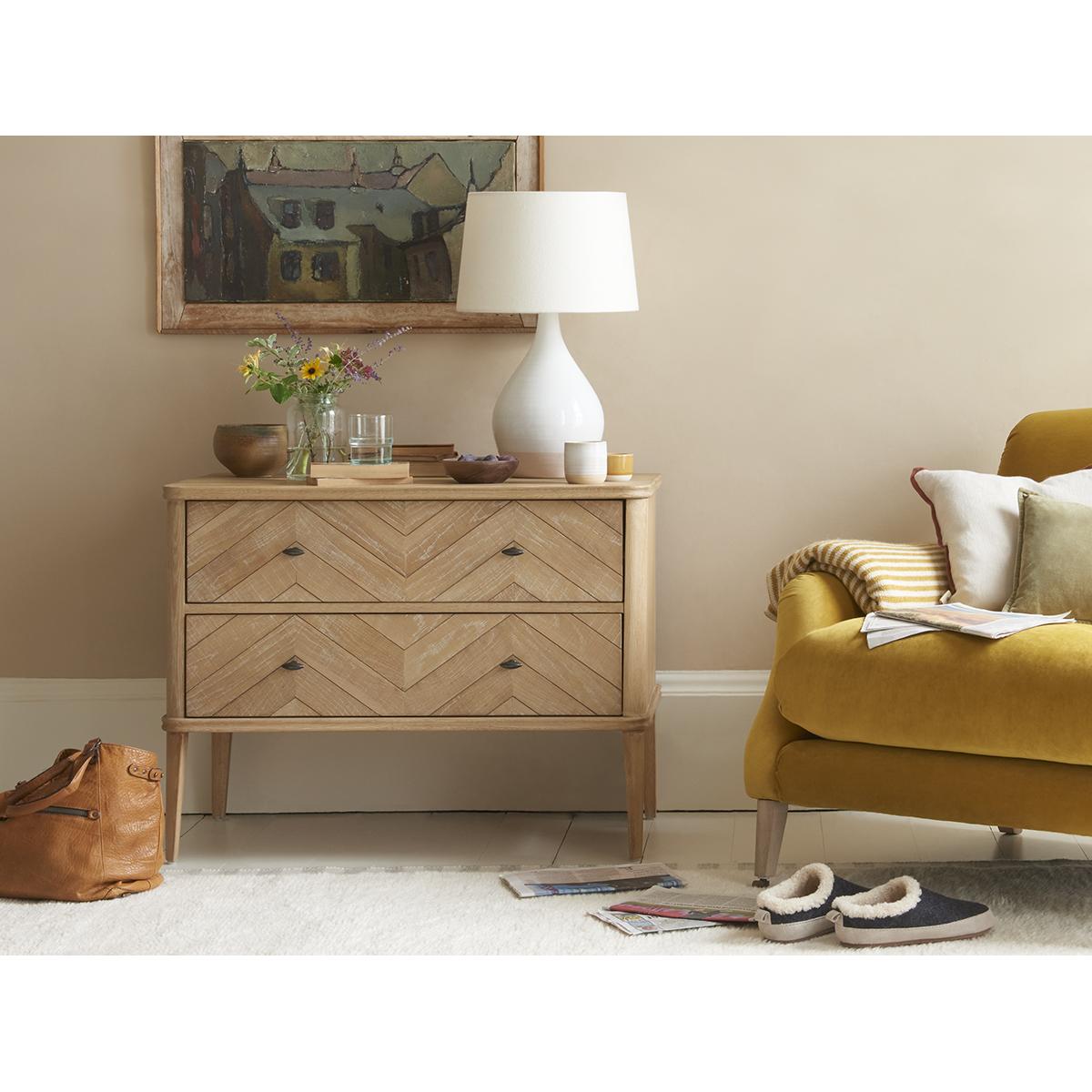 I love this chest of drawers because of its simple yet stylish design-it’s the perfect piece to add a touch of warmth and texture to a variety of interiors. Its neutral, slightly distressed finish makes it versatile, easily fitting into both Scandi and vintage-inspired spaces. It works particularly well in bedrooms or living rooms, where it can serve as a practical storage solution while adding understated charm. For styling, I recommend pairing it with organic textiles, like linen or jute, alongside some vintage accessories or plants to create a cosy, inviting atmosphere. Its understated design means it can adapt across different schemes, making it a reliable staple in many interiors.