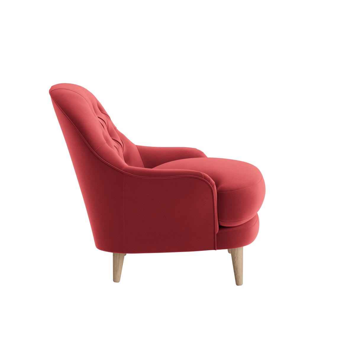 I love this cosy little chair for adding a playful yet polished touch to a living space. Its bold colour makes it a fabulous statement piece, especially in neutral or pared-back interiors where it can truly stand out. The rounded, button-tufted design lends a touch of vintage charm, while the size makes it versatile for smaller rooms or as a quirky accent in a larger seating plan. Practical styling tips include pairing it with a textured throw or colourful cushion to soften the look, or positioning it near a bookshelf or window to create a charming reading nook. It works well in eclectic, contemporary, or even transitional interiors-just remember to balance its standout hue with more subdued tones elsewhere in the room.