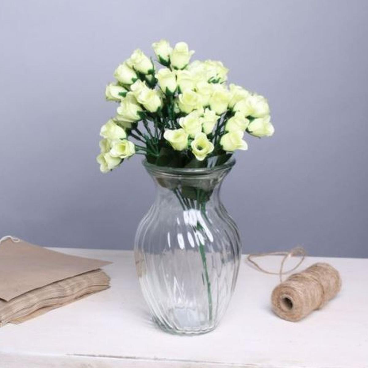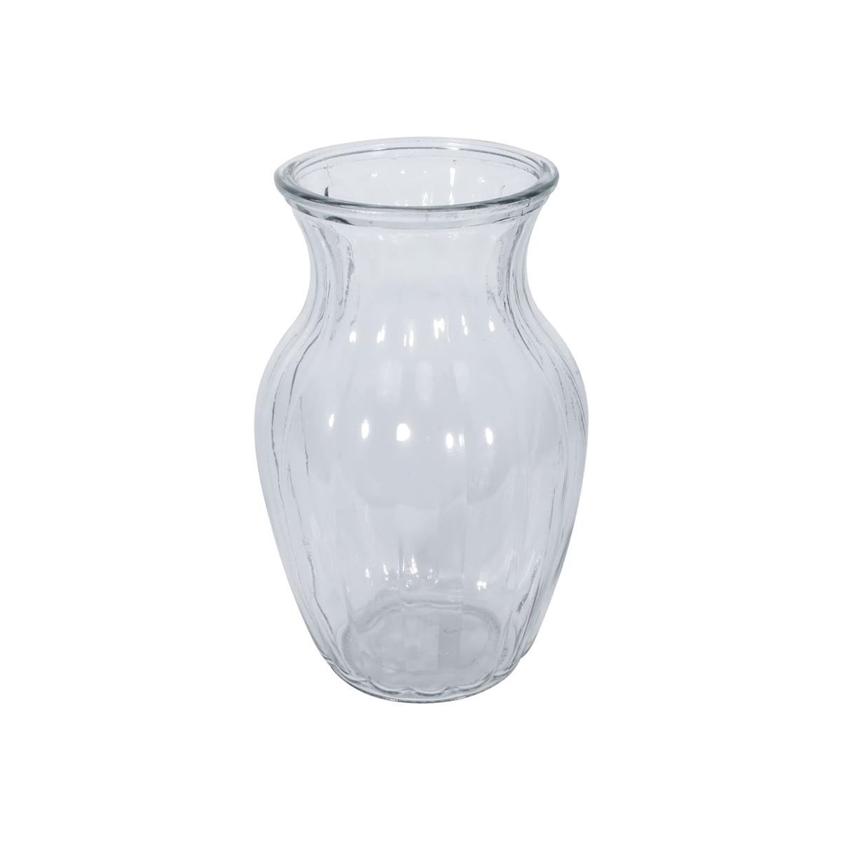 Clear glass vase. Ideal for real or artificial flower displays. Enhance the look of your arrangements with the handtied design. Ribbed texture. Use in any room to show off your favourite flowers.