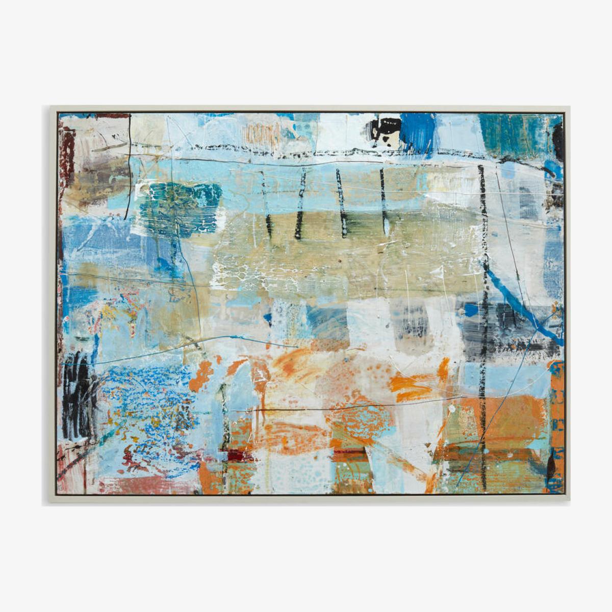 Joe Warrior-Walker is a fine artist from Cornwall. A childhood spent travelling across India continues to inspire his artwork, which is influenced by landscape and movement. In 2009, he moved to London to study Fine Art at Chelsea School of Art, before completing a master's degree at UEA London. ' Swells and Shrinks' by Joe Warrior-Walker Mixed media on board White timber frame Exclusive piece From the M.A.H Gallery collection Includes M.A.H branded certificate of authenticity