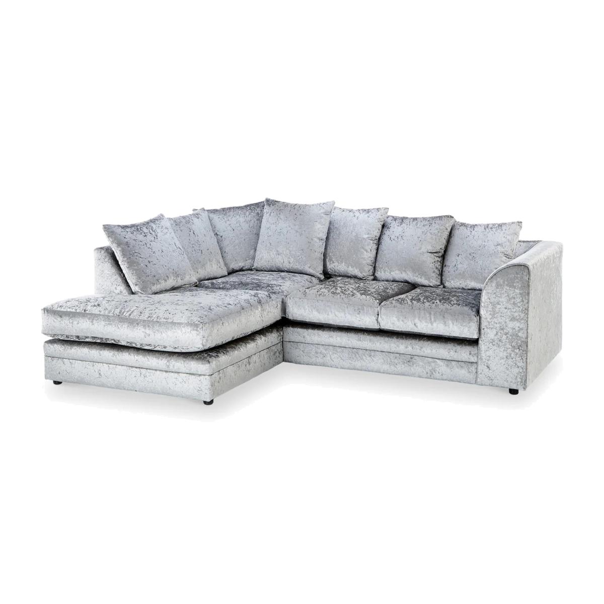 Swift Crushed Velvet 4 Seater Corner Sofa - Silver / Left-hand