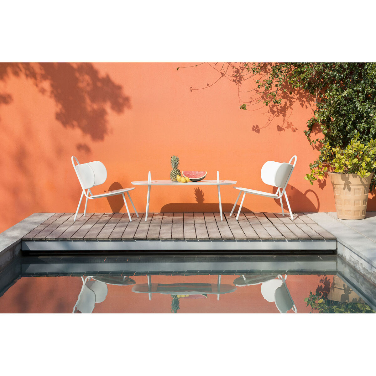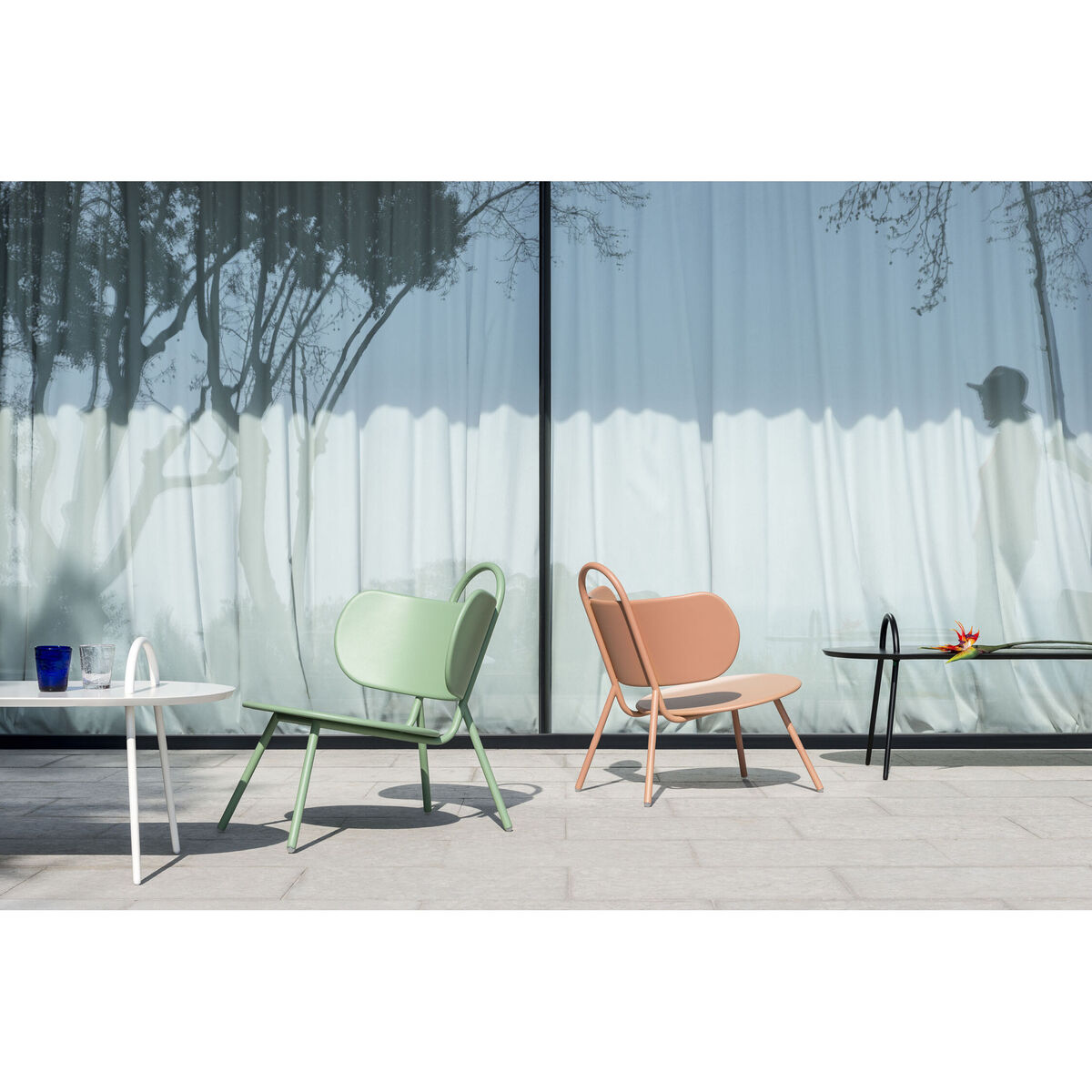 Swim is a collection of epoxy metal furniture that offers surprising proportions and staggered. The Swim coffee table has two handles that seem to dip into the table top, and become four feet. These two handles recall the curve of a pool ladder. They make Swim easy to move and make it suitable for our new, evolving and nomadic lifestyles. The Swim coffee table is light, with a rounded and generous design that is adapted to all interiors.