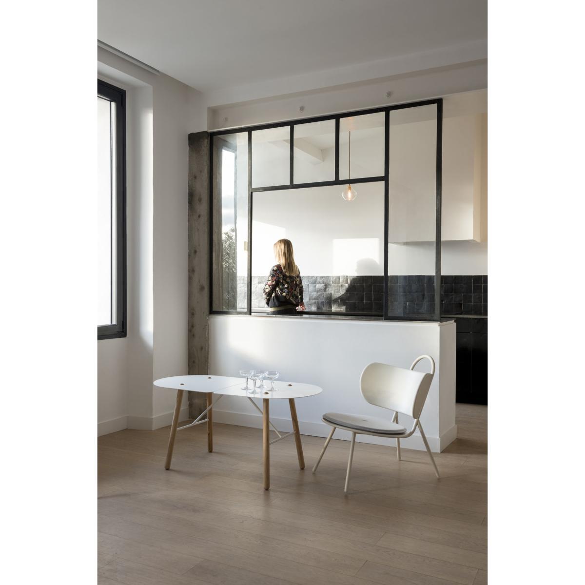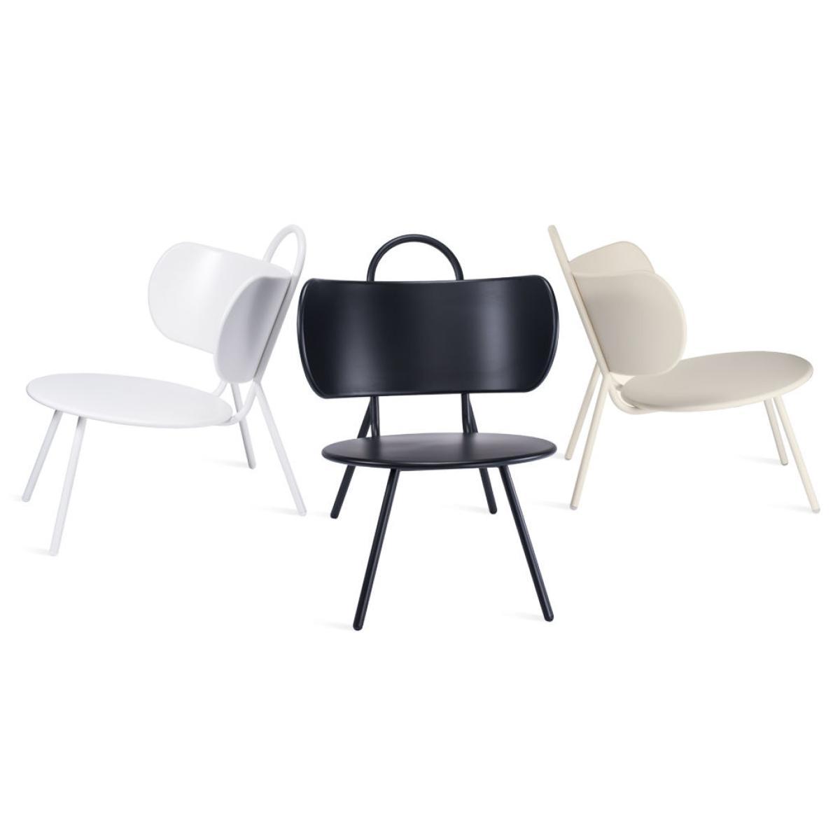 Swim is a collection of epoxy metal furniture that offers surprising proportions and staggered. The backrest of the Swim armchair is deliberately exaggerated and lower than usual, to allow an armrest function. Swim boasts a rounded design, generous and nomadic. Lightweight and with a handle, it's easy to move it. Imagined in the way of the purified curve of a ladder of swimming pool, the handle gives to Swim all its character and makes it adapted to our new ways of life, evolutive and modulable.