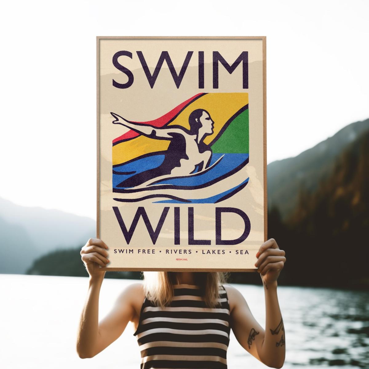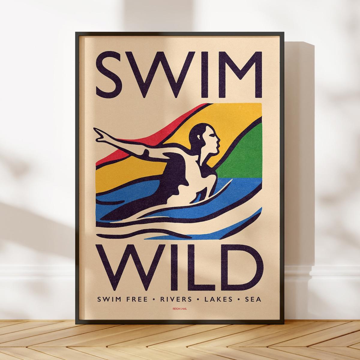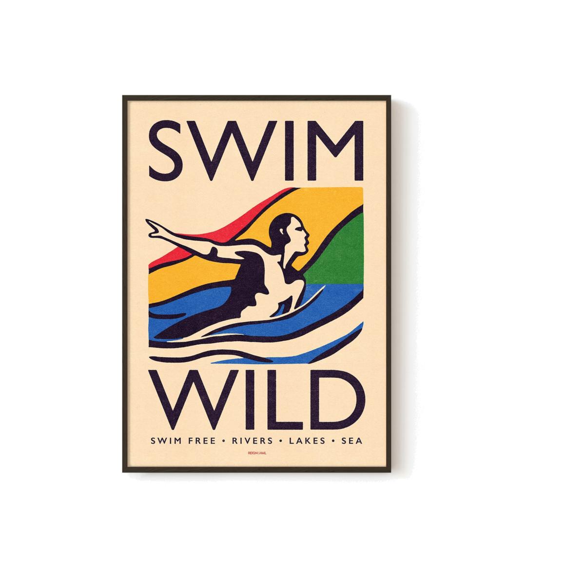 Swim Wild - Wild Swimming Print - White - A2 Reign & Hail