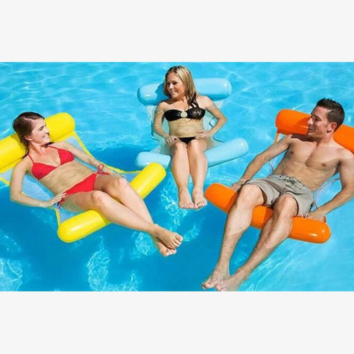 Soft and comfortable mesh hammock with inflatable pillows at both ends. Ergonomic design provides plenty of support and an abundance of comfort, keeping swimmers relaxed in the pool for hours. Durable, soft and drying quickly. Can be used as hammocks, loungers, drifters and sports saddles. Inflatable rafts help keep the core cool by soaking in the water while keeping the head and knees above the water. Made of premium environmentally friendly PVC.
