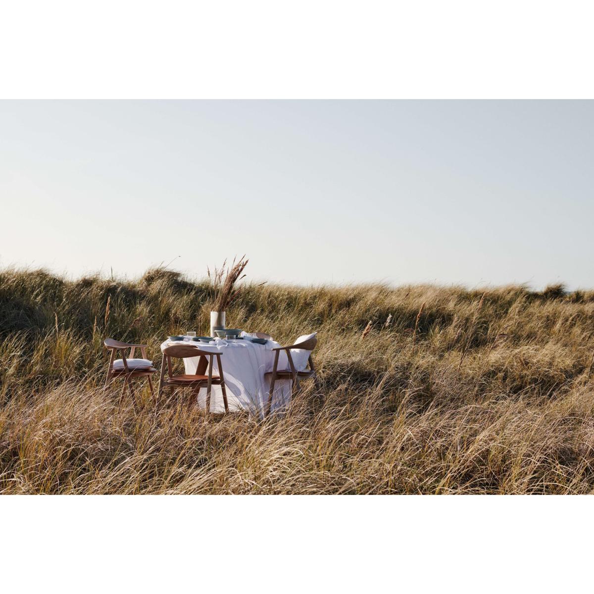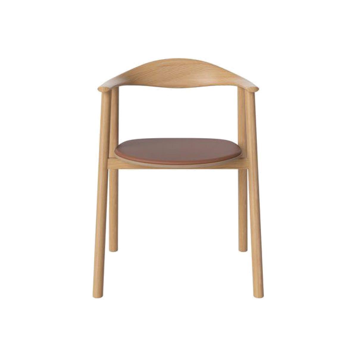 I love this armchair for its simple yet crafted look, combining natural wood with a sleek leather seat that adds a touch of sophistication. It works particularly well in contemporary or Scandinavian-inspired interiors, where clean lines and natural materials shine. Styling tips would include pairing it with a round dining table to enhance its inviting feel, or placing it in a minimalist setting to let its craftsmanship stand out. Practical advice is to use it in a space that balances comfort and style, as the leather seat provides a tactile, inviting element, making it ideal for both everyday dining and occasional gatherings.