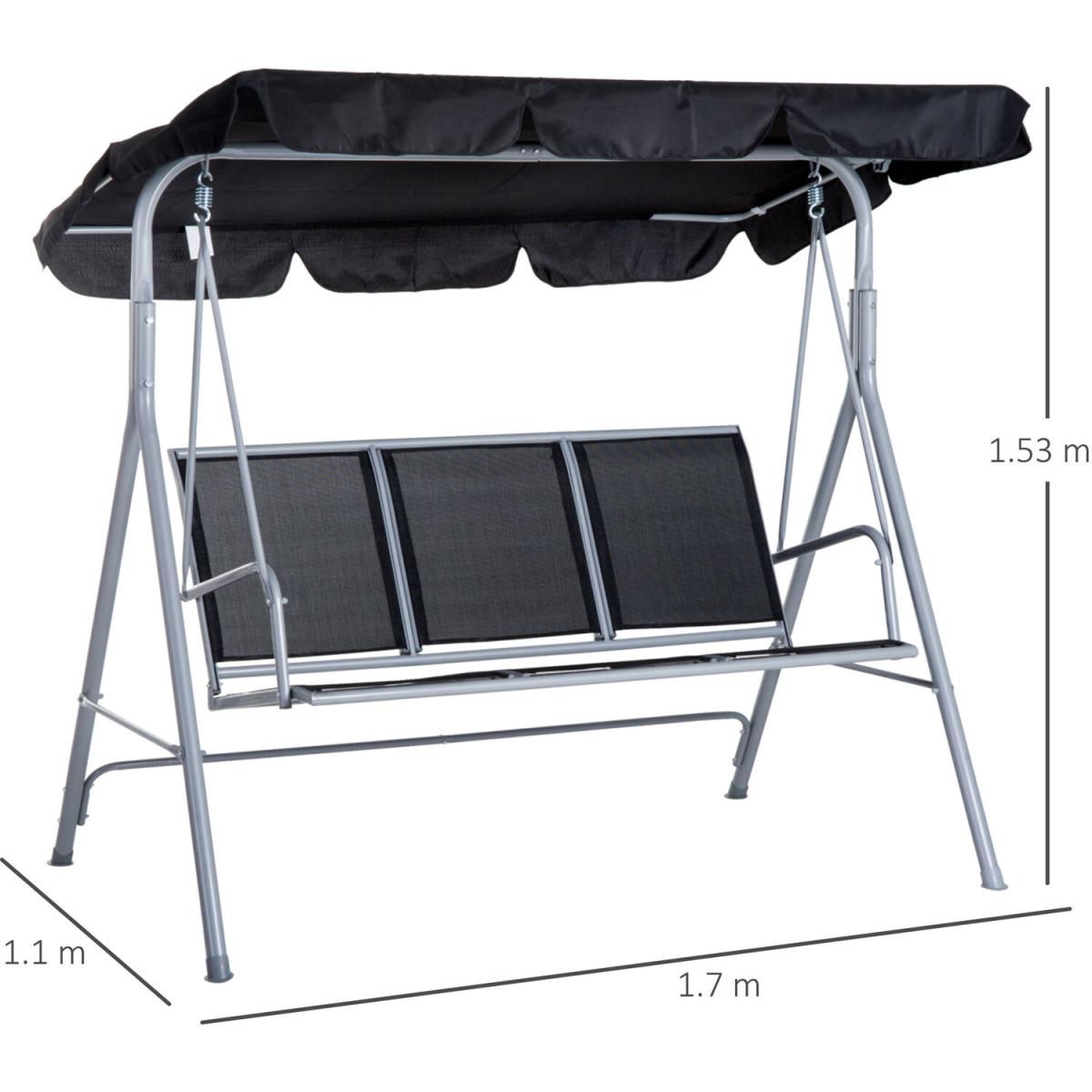 Swing Chair Garden Hammock Bench 3 Seater - Black
