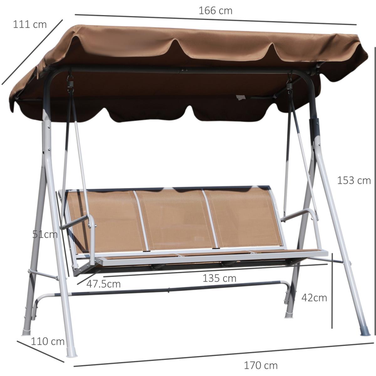 This Outsunny 3 seater swing chair is an ideal addition to any garden, patio or outdoor living space. Made from metal with sling fabric seating, it also has a UV protected polyester canopy to keep you shaded from rain and sunlight. This swing chairs is stylish, practical and would match any outdoor decor.
