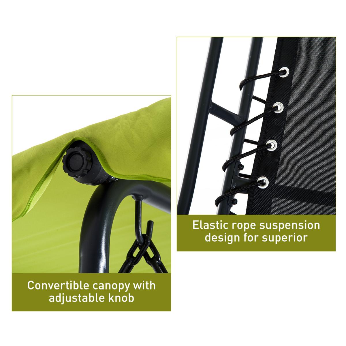 This Outsunny two-person patio swing chair is the ultimate piece of furniture for outdoor relaxation. It has a modern design that will be a great addition to any outdoor living space and a better way to socialize with friends. The adjustable and convertible canopy provides cool shade and protection from the sun's harmful UV rays. Removable thick cushions ultimately eliminate the stress of spills with effortless cleaning. Our swing chair is ideal for the poolside, patio, deck, garden. Quality steel pipe frame and waterproof polyester cloth in exquisite craftsmanship, Comes with thick seat and back cushion for maximum comfort.