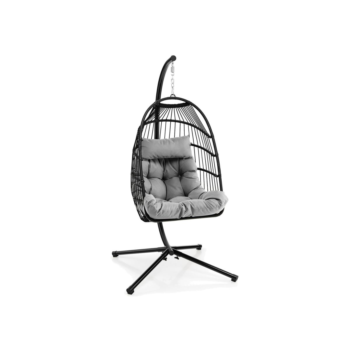 The chair is equipped with a head pillow and cushion, which are both soft and comfortable. And the cushion cover can resist to daily splashes so the maintenance is quite simple. Furthermore, both the egg chair and swing stand are super sturdy with the heavy-duty steel frame which is anti-deformation and rustproof. The X-shaped base makes it stand with higher stability. Swing Egg Chair with Stand Upholstered Rattan Wicker Hammock Chair - Grey