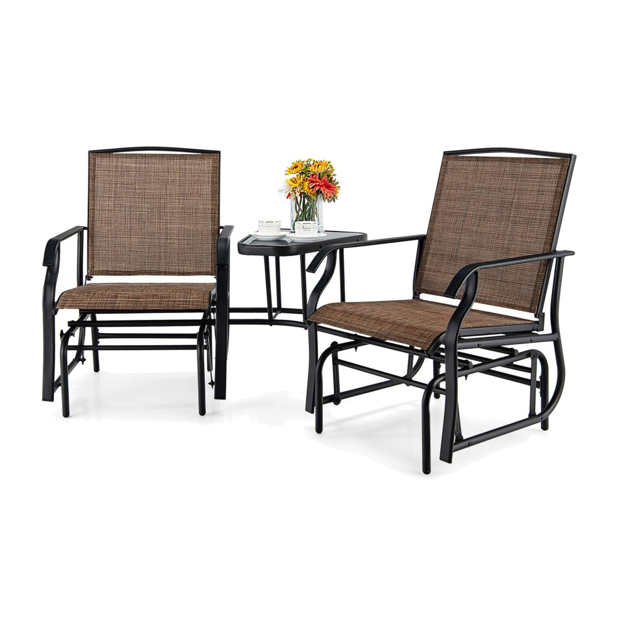 You will be fully relaxed with this glider chair after long-time working, as its ergonomically designed seat and smooth glide motion will immediately drive away your fatigue and stress. And the 2-seat design allows you to enjoy good time with best friends or family members. Other than that, the center table provides you with much convenience. You can put snacks, drinks, magazines and any other small items on it. And its smooth glass tabletop makes daily maintenance quite simple. Swing Glider Chair with Side Table - Brown