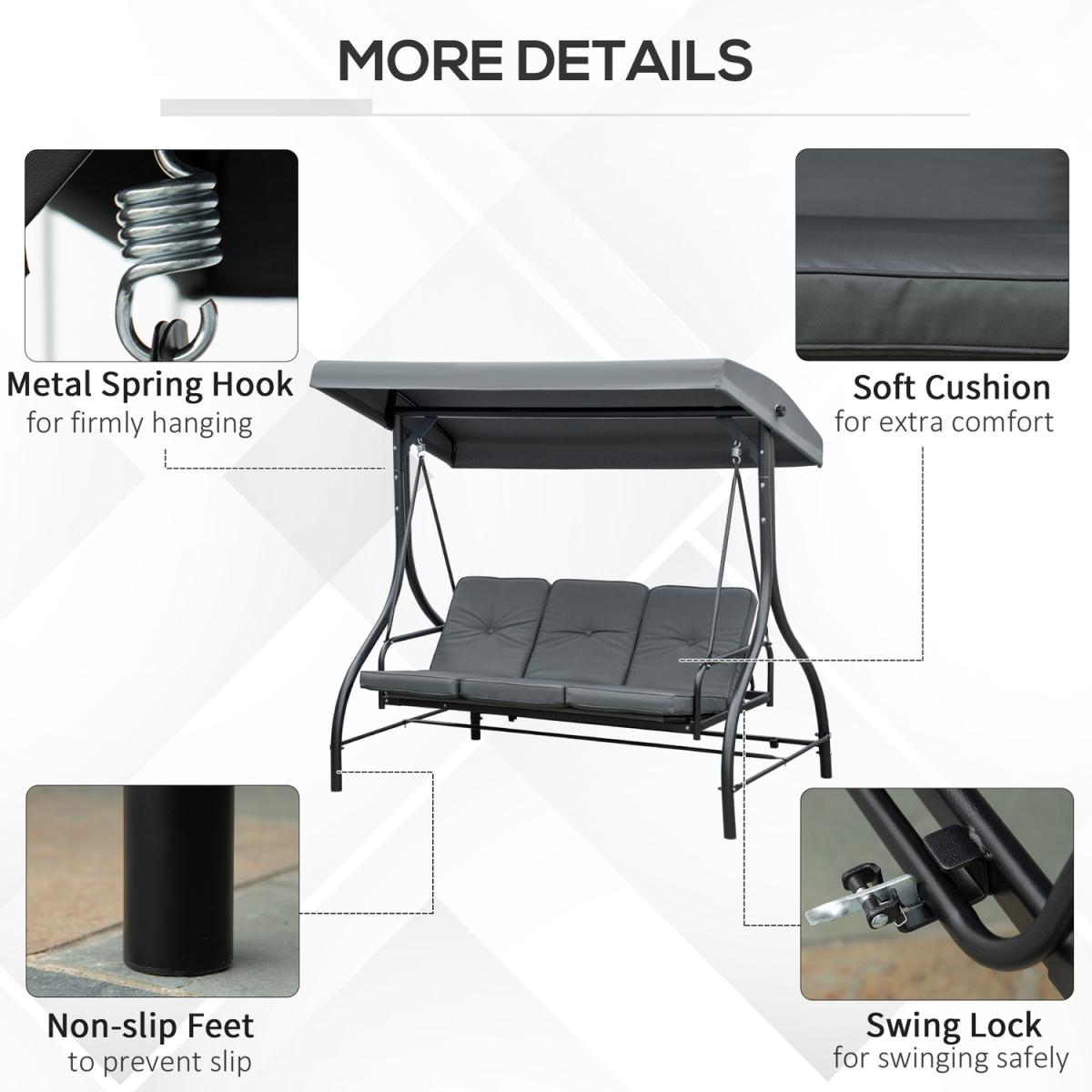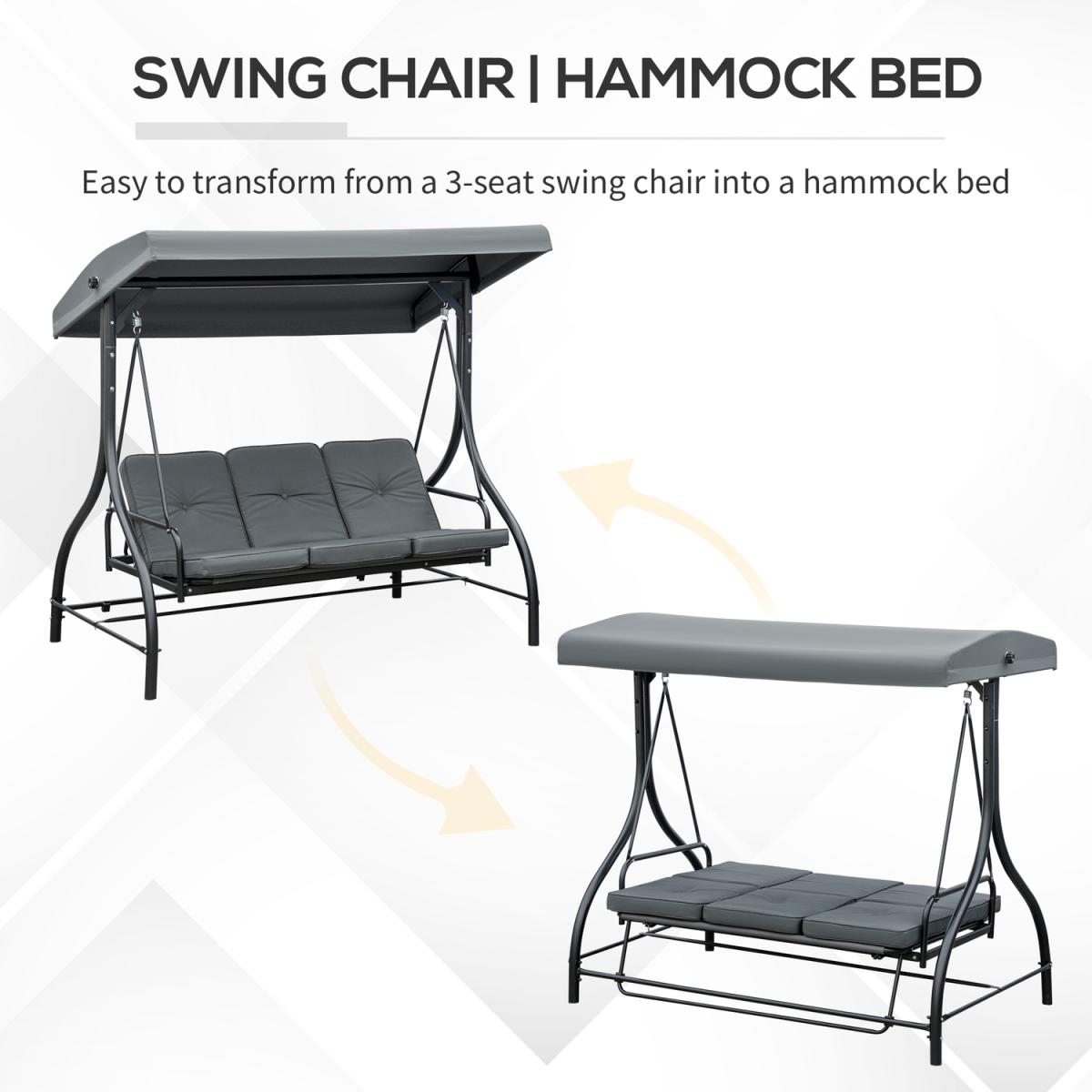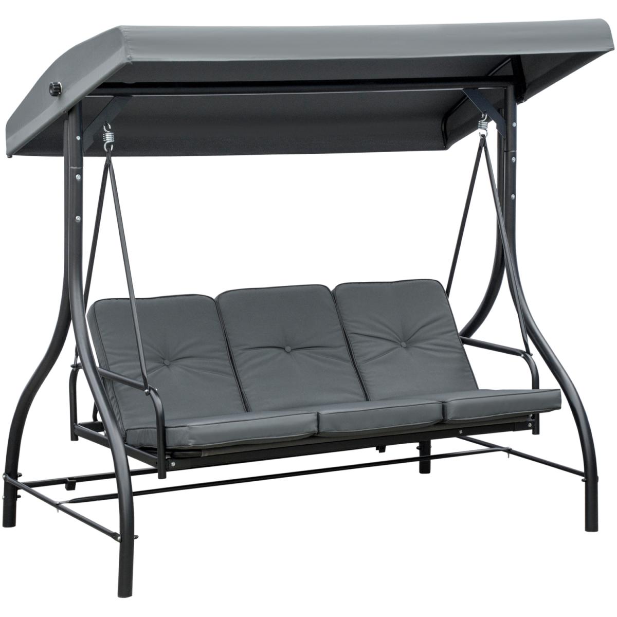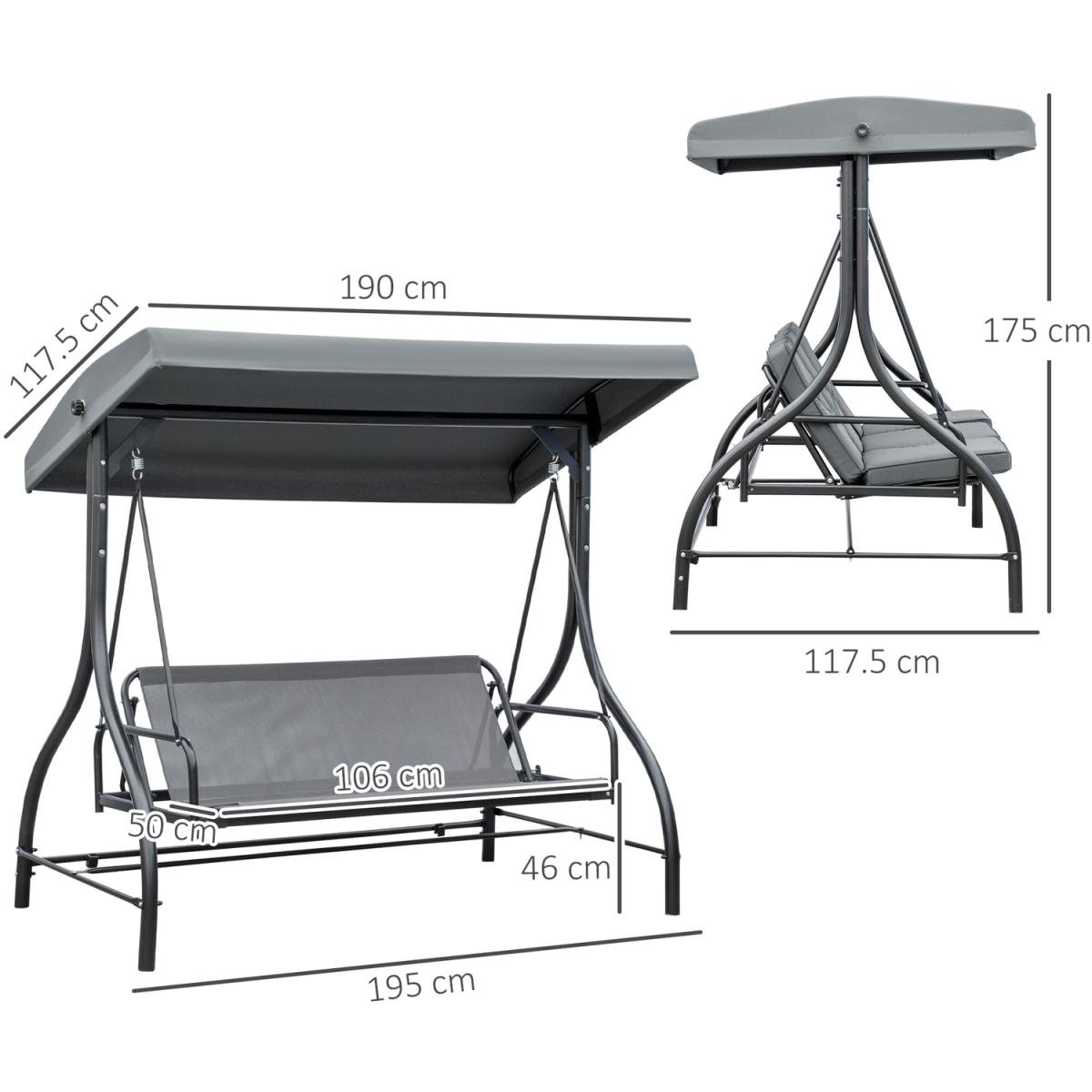 This Outsunny 3 seater garden swing is a welcome addition to any outdoor living space. It has a capacity to seat three people so you can enjoy with your friends. The adjustable canopy will keep you covered from sunlight and light rain. The swinging chair seat and back cushion is padded for comfort - the back can be folded flat to transform this into a bed.