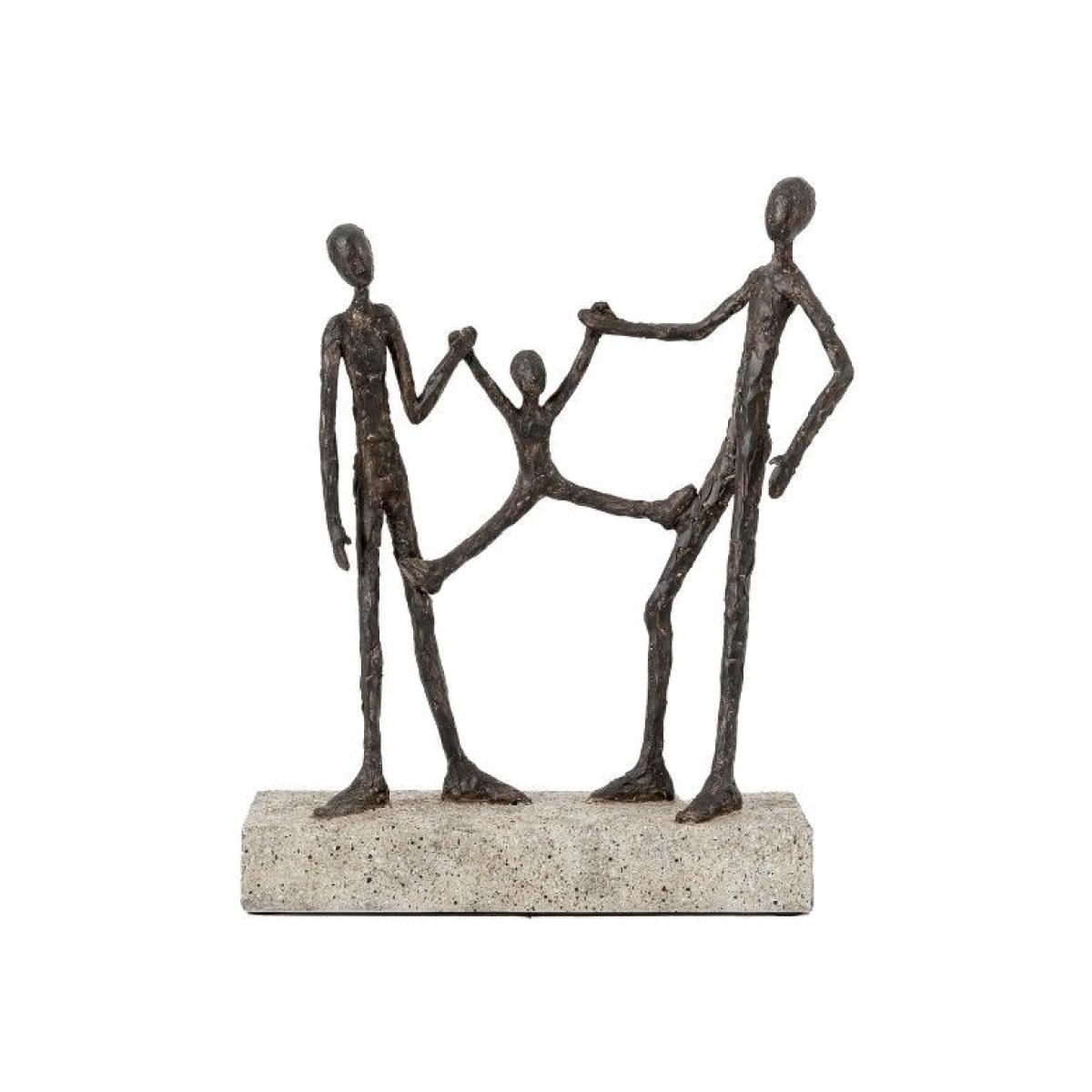 Capturing a joyful family moment, this Swing Sculpture adds a unique charm to any room. The abstract family figures in a bronze style resin stand on a grey stone style base. Colour - Black / Grey Indoor Use Only Material - Polyresin Dimensions; (H)30cm x (W)22.5cm x (D)8cm Please note: Lifestyle images are for illustrative purposes