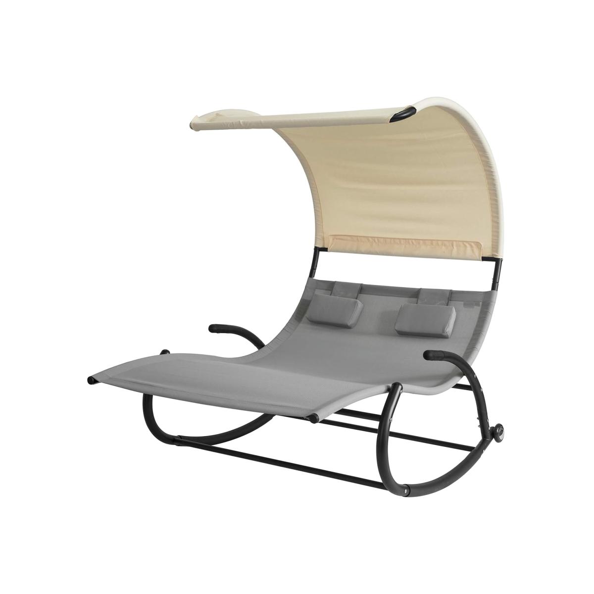 With this 2 Person rocking chair, you can enjoy your own relaxation time during weekends, holidays, or after a long day work. It features an off-white sunshade, allowing you to enjoy the sun without glare. Equipped with 2 headrests, detachable and can be moved at will, ensuring comfort, not easily fatigued even after long-term use. Made of high-quality textilene fabric and powder-coated iron frame, lightweight but sturdy and durable enough to ensure a long service life. Item comes in a flat pack and requires self-assembly, detailed instructions supplied.