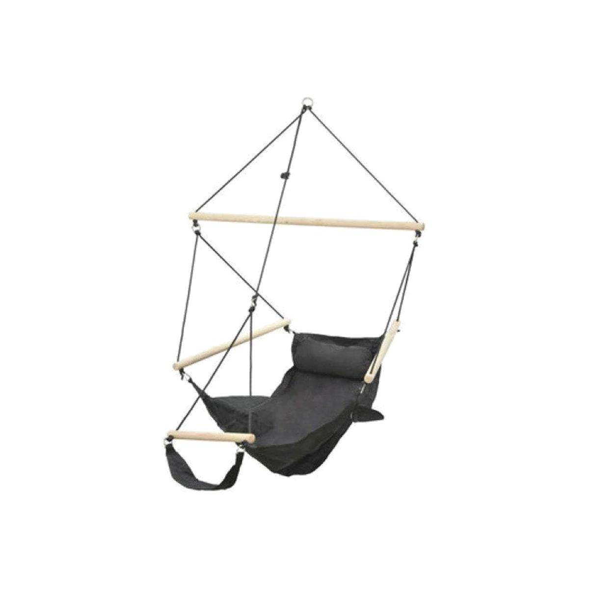 A lovely, comfortable spot to relax, the Swinger Black Hammock Chair is made from tough hardwood bars and comfy 'rucksack' material which is strong, weather resistant. The Swinger Hammock Chair is supplied with a snug neck pillow, footrest and wooden arm rests, providing perfect comfort. Ideal for use indoors or outside, the chair is strong enough to hold up to 120 kg in weight. So kick back and chill out in style this summer. Alternative colours are also available,