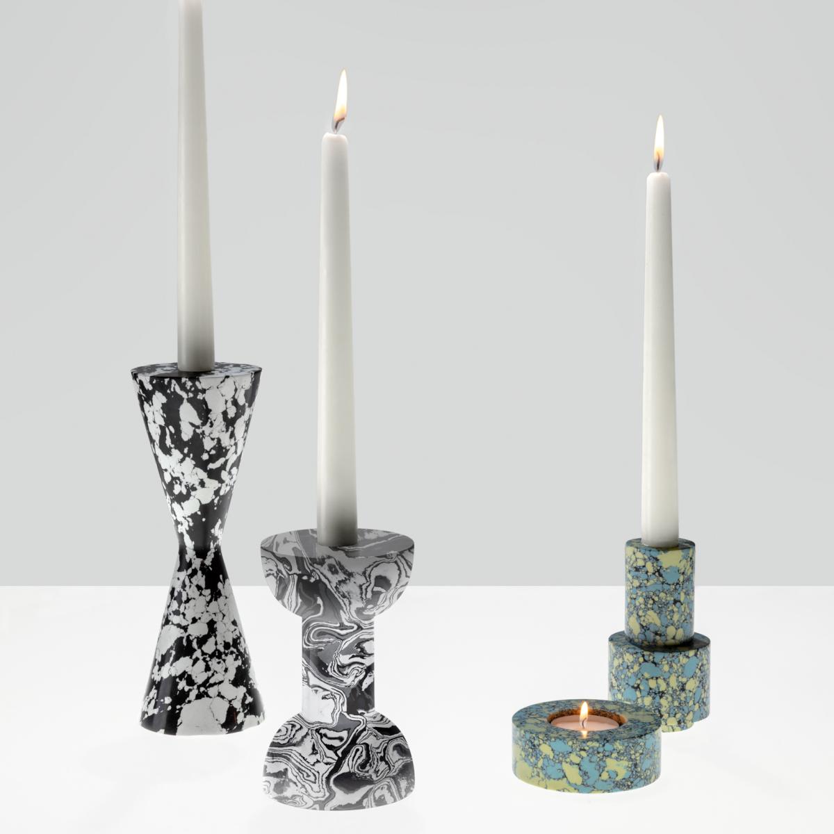 The Swirl Dumbbell candle holder from Tom Dixon makes an exciting interior detail for the design-conscious home. An interplay of a striking pattern and a precise geometric figure, the sleek design looks great with a candle, or you can place it without a light as a unique sculptural decor — either way, a sure conversation starter amongst guests. The candle holder is made from an innovative material with a stylish aesthetic that resembles marbled paper but has the luxuriously solid weight of stone. Explore the entire Swirl collection to find elegant combinations of swirling sculptural decor to beautifully adorn your home.