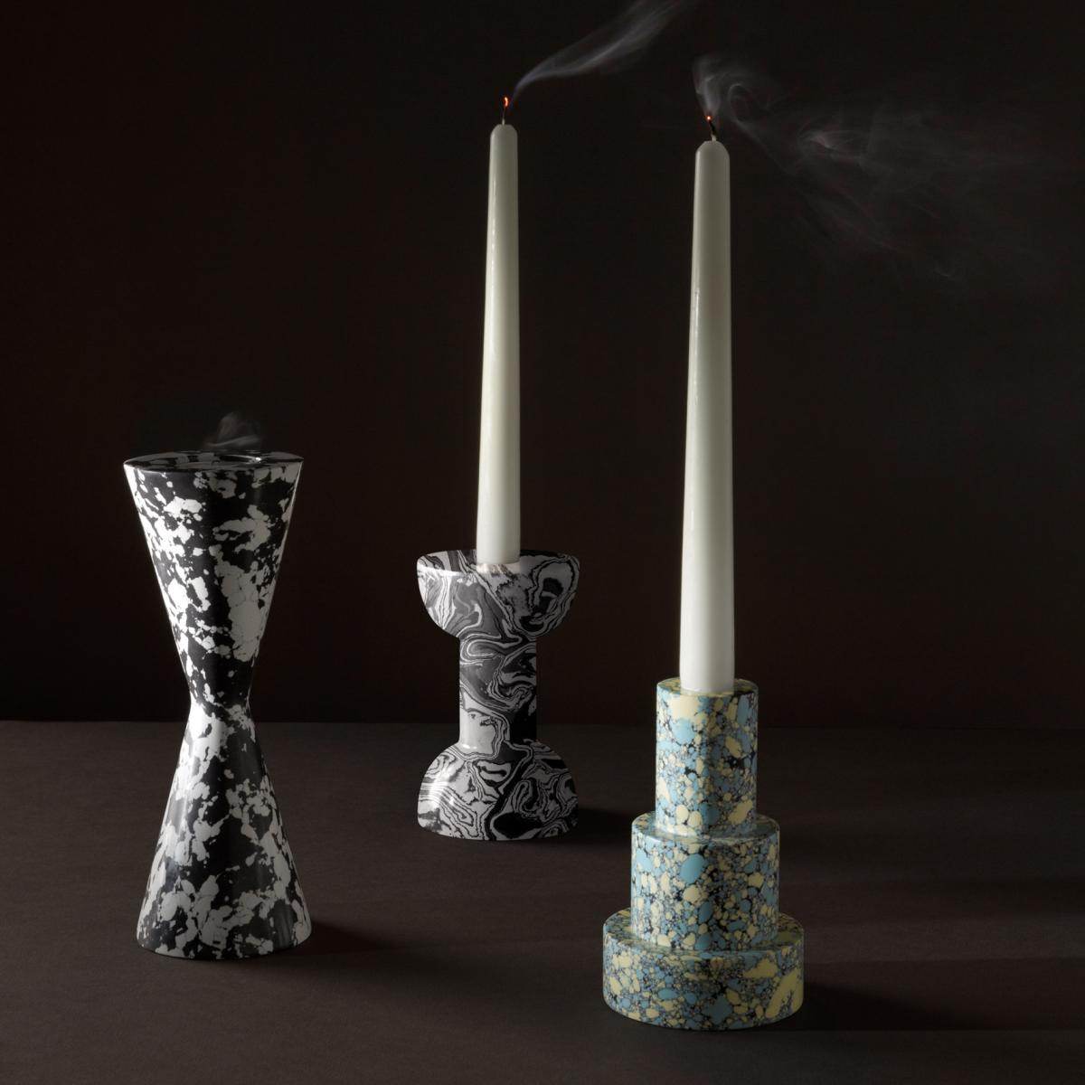 The Swirl Stepped candle holder from Tom Dixon makes an exciting interior detail for the design-conscious home. An interplay of striking colours and precise geometric figures, the sleek design can be divided into two pieces so that you can use a tealight or long-burning candle — either way, a sure conversation starter amongst guests. The candle holder is made from an innovative material with a stylish aesthetic that resembles marbled paper but has the luxuriously solid weight of stone. Explore the entire Swirl collection to find elegant combinations of swirling sculptural decor to beautifully adorn your home.