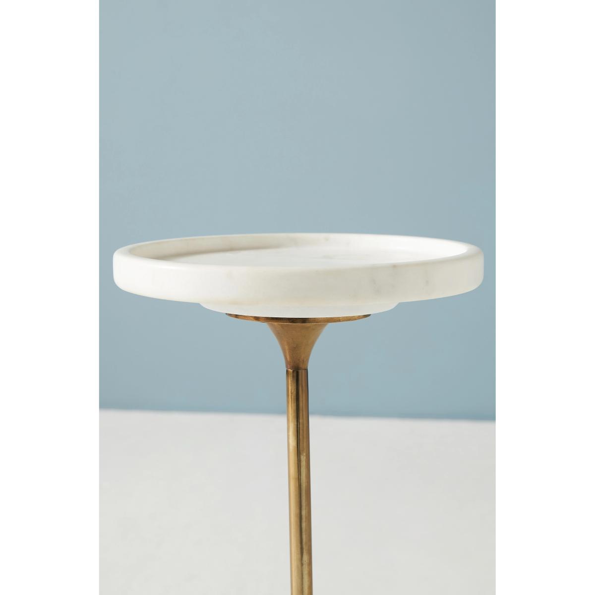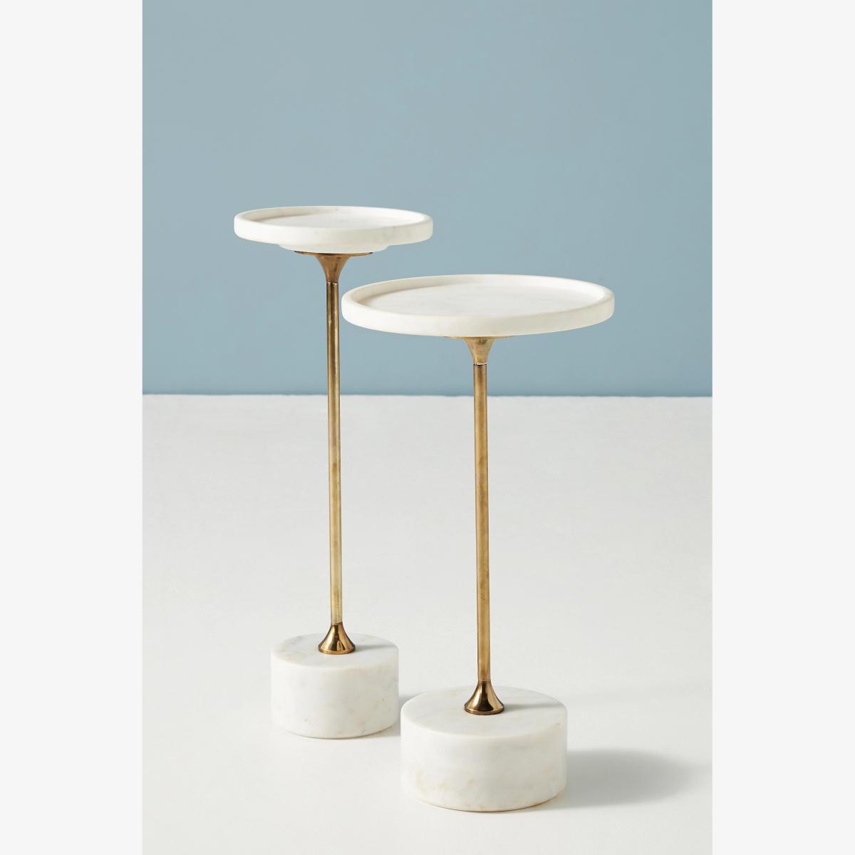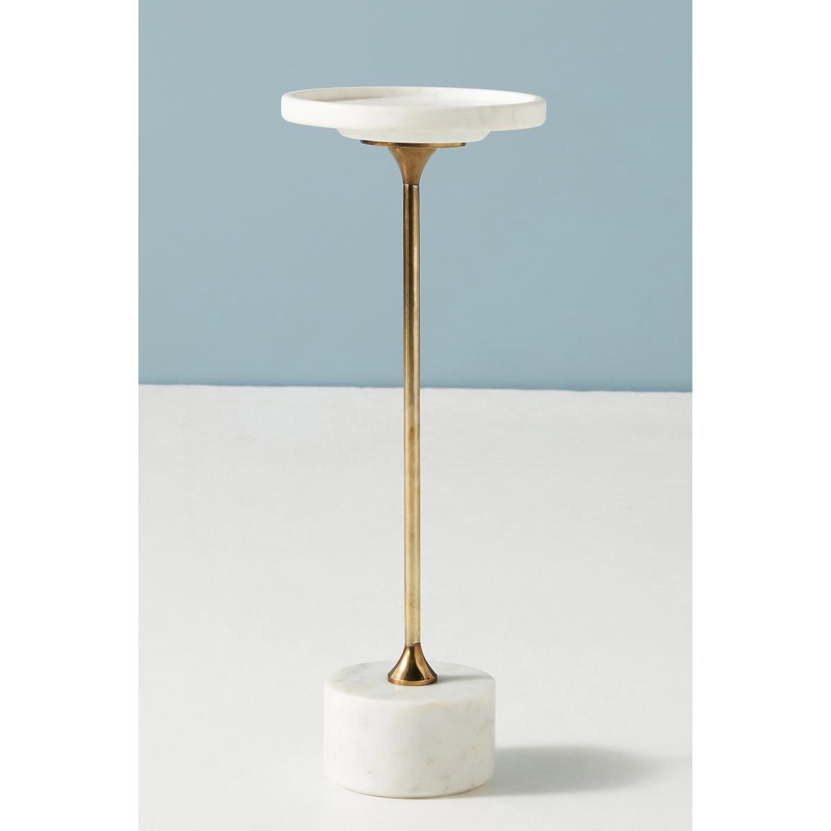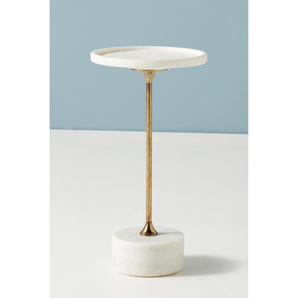 Crafted from swirling marble and brushed brass, this end table is a sophisticated perch for homemade cocktails and tasty mixed drinks. * Furniture pieces weighing over 30kg include delivery to your room of choice and packaging removal * Marble end table with a brushed brass iron pedestal * Slight variation in natural marble texture will occur * Sealed with clear lacquer for protection * Wipe clean with soft cloth. Avoid using chemical cleaners * This piece is intended for indoor use * No assembly required * Imported
