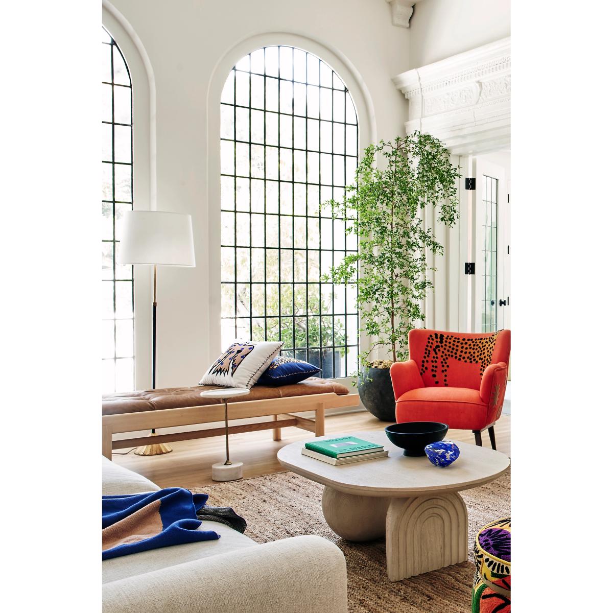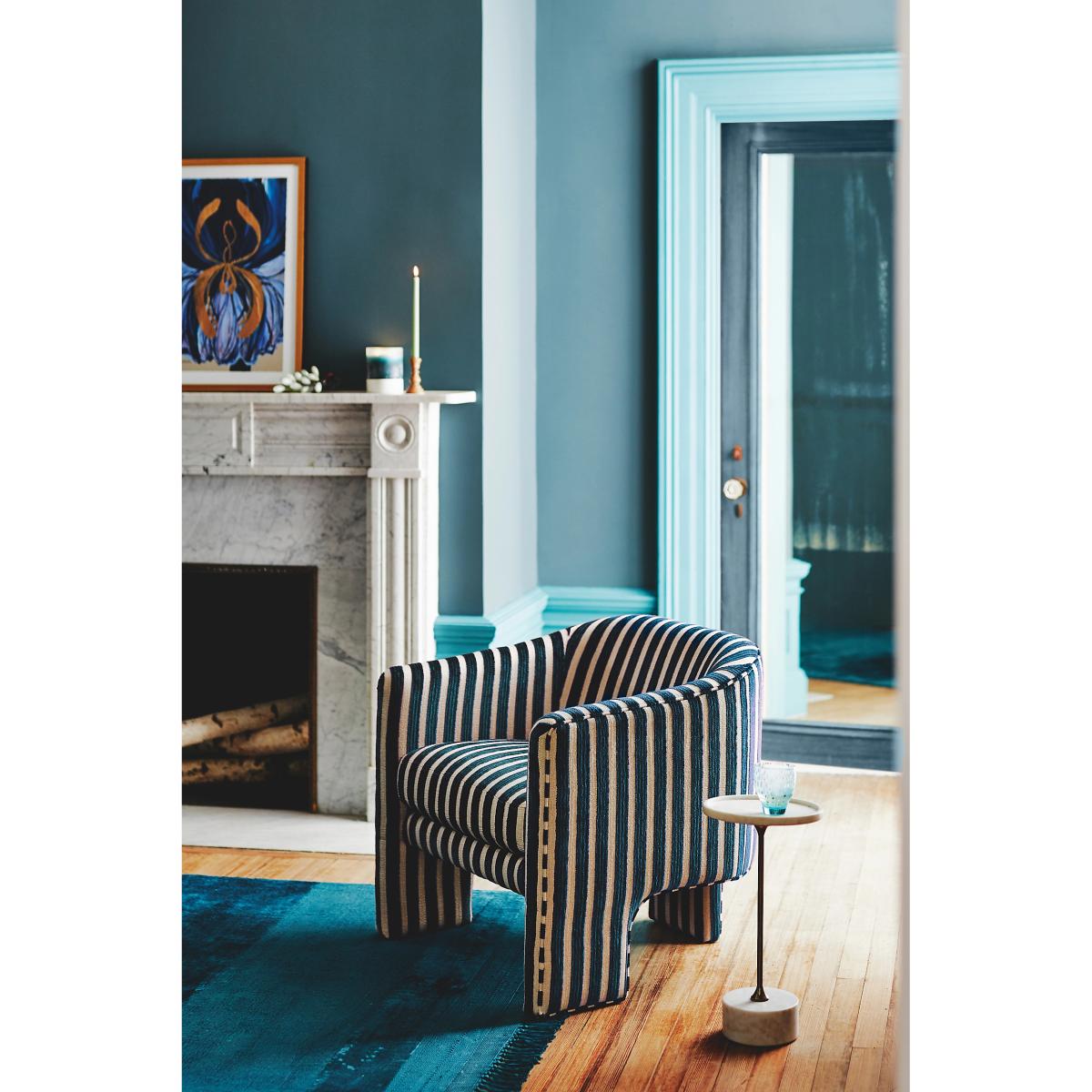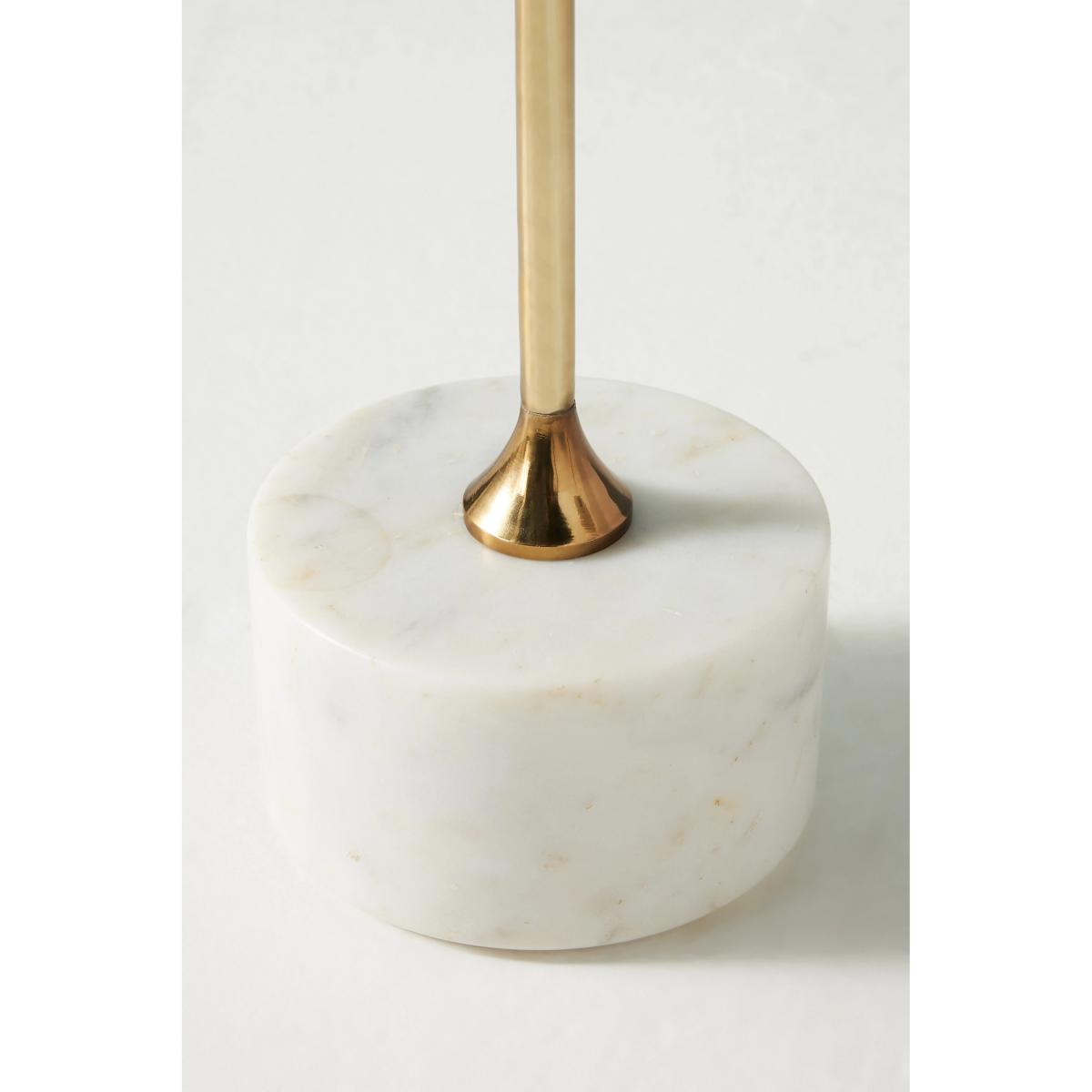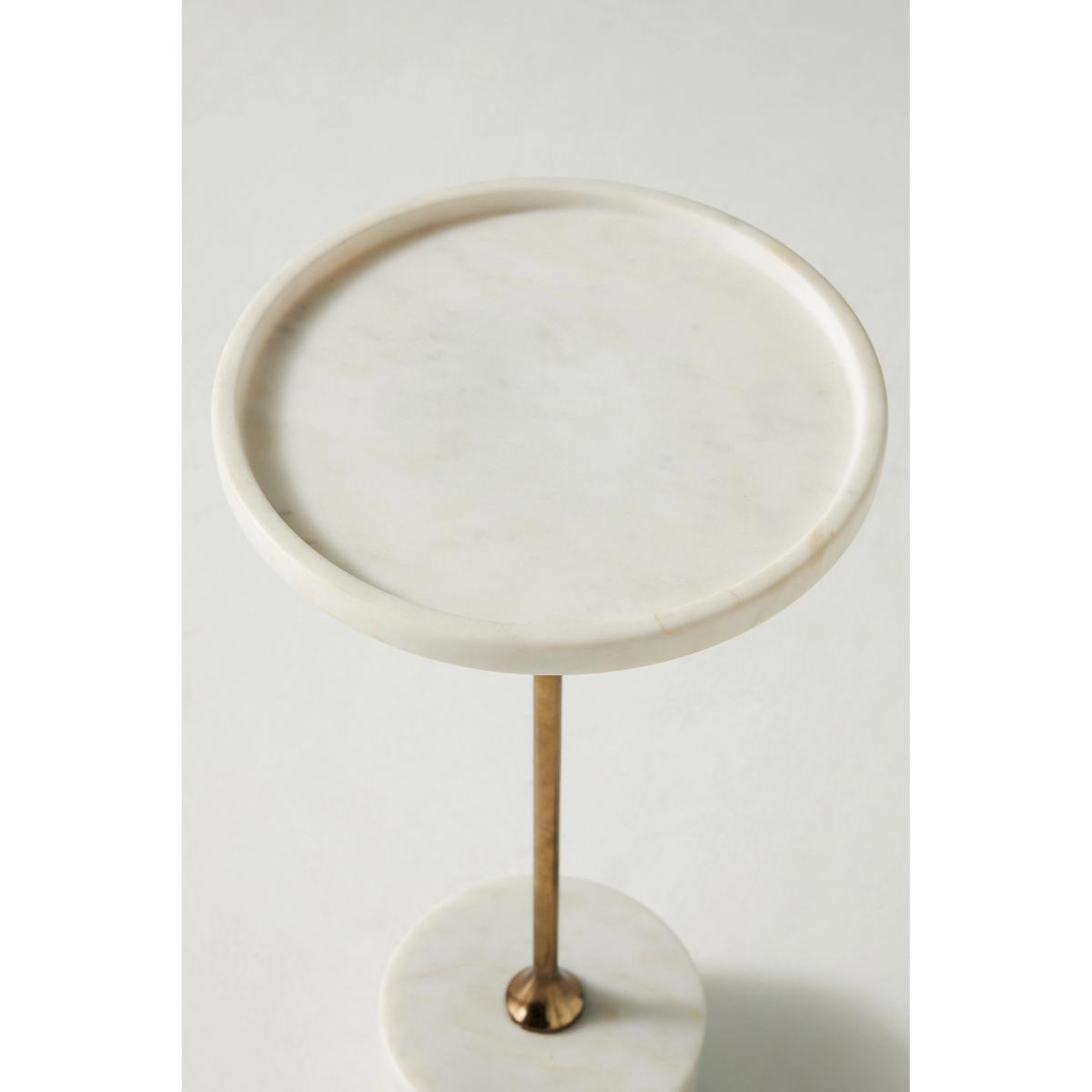 Crafted from swirling marble and brushed brass, this end table is a sophisticated perch for homemade cocktails and tasty mixed drinks. * Furniture pieces weighing over 30kg include delivery to your room of choice and packaging removal * Marble end table with a brushed brass iron pedestal * Slight variation in natural marble texture will occur * Sealed with clear lacquer for protection * Wipe clean with soft cloth. Avoid using chemical cleaners * This piece is intended for indoor use * No assembly required * Imported