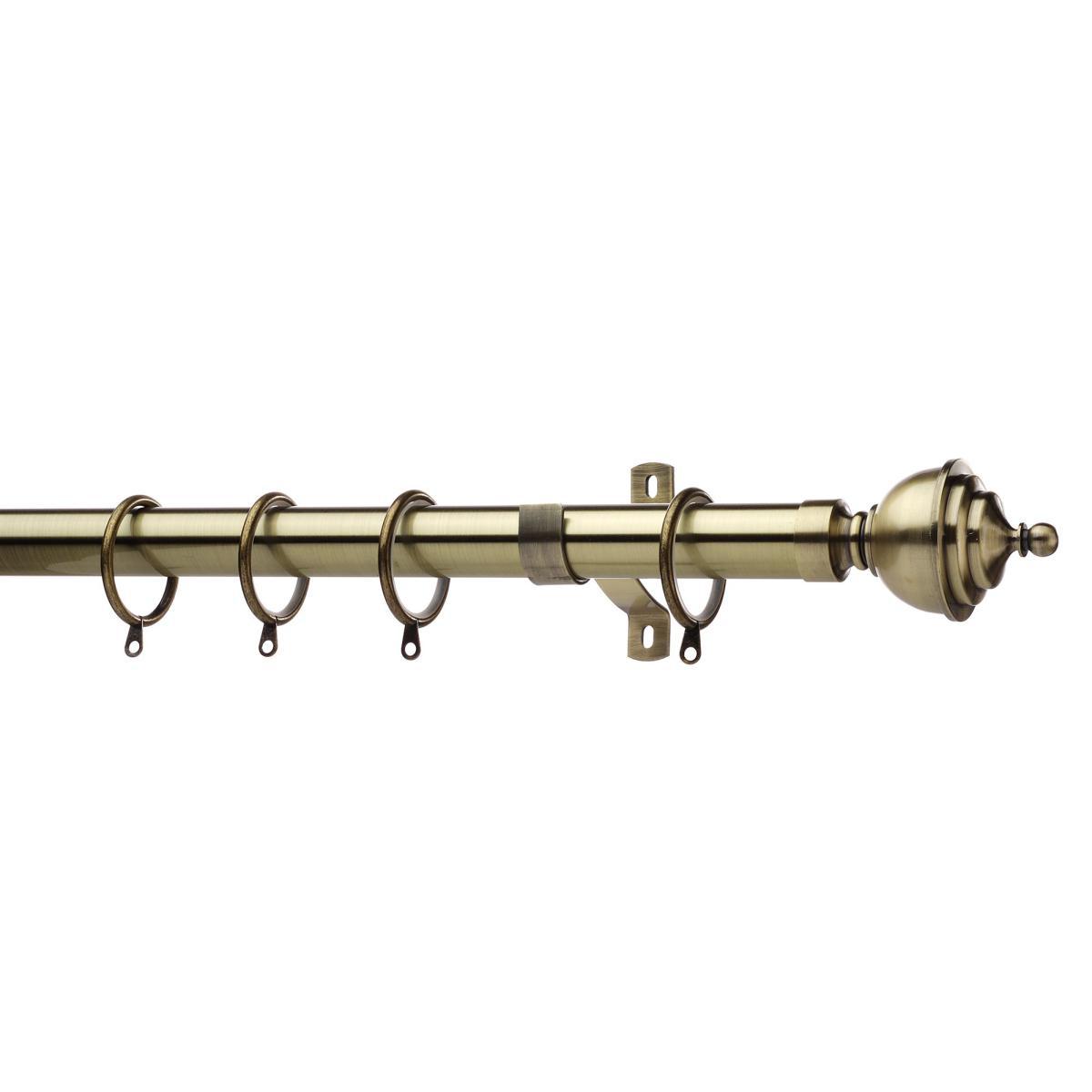 Perfect for adding a traditional touch to your home, the Minster curtain pole comes complete with urn finials and has been made in a variety of fixed lengths and stunning finishes. Supplied with nylon lined rings for a smooth and gentle glide, this pole is suitable for pencil pleat curtains or eyelet curtains and can be cut down to size if necessary to suit your needs. All fittings are included. The number of curtain rings supplied is based on the industry standard of 1 ring per every 10cm. Please note: All curtain poles in lengths of 240cm and above come in two lengths with a joiner. Please note: the pole length stated does not include the finials. Please allow up to an additional 20cm to the pole length to accommodate the finials. Disclaimer:. This pole can be cut to size and the finials can be removed.