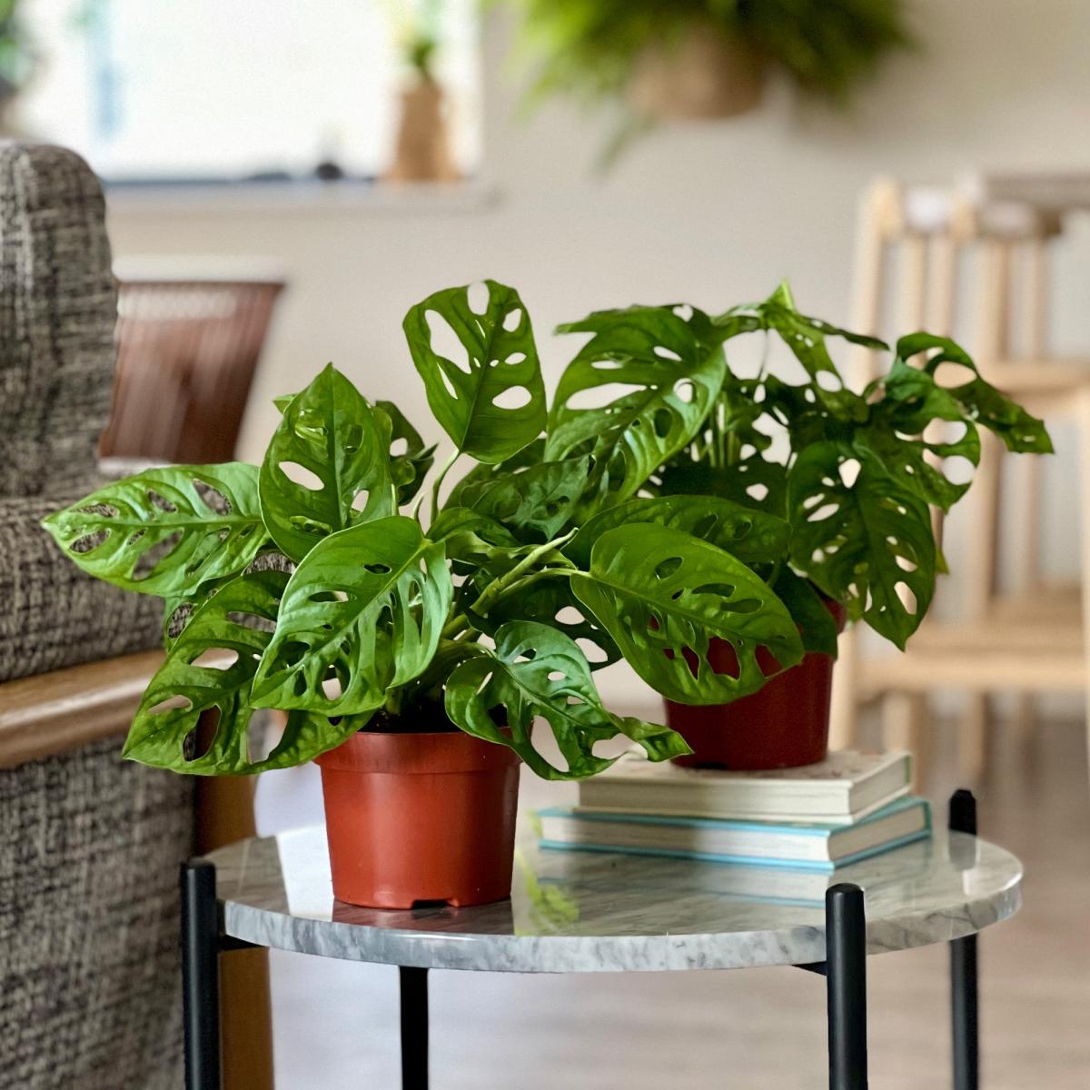 * Includes 2 x Swiss Cheese Plants* Enjoys Bright, Indirect Light* Likes Moist Soil, So Water Regularly* I'm Perfect for Those New to Plant Parenthood* Not Pet Friendly - Keep Away from Furry Friends & Little People* Air Purifying - I Remove the Nasties Lurking in Your Room Affectionately known as the swiss cheese plant, due to the iconic holes in its leaves which it's become so well-known for. Bring the jungle indoors into your home, with the monstera’s dramatic, tropical leaves. This plant enjoys warm and humid conditions, so treat it to a regular misting. **How to keep me happy:**1. Light:Enjoys bright, indirect light and can even cope with occasional direct sunlight.2. Water:Likes moist soil, so water regularly.3. Expert level: I'm perfect for those new to plant parenthood. Please note: As this is a living product, your plant may vary to the one photographed.