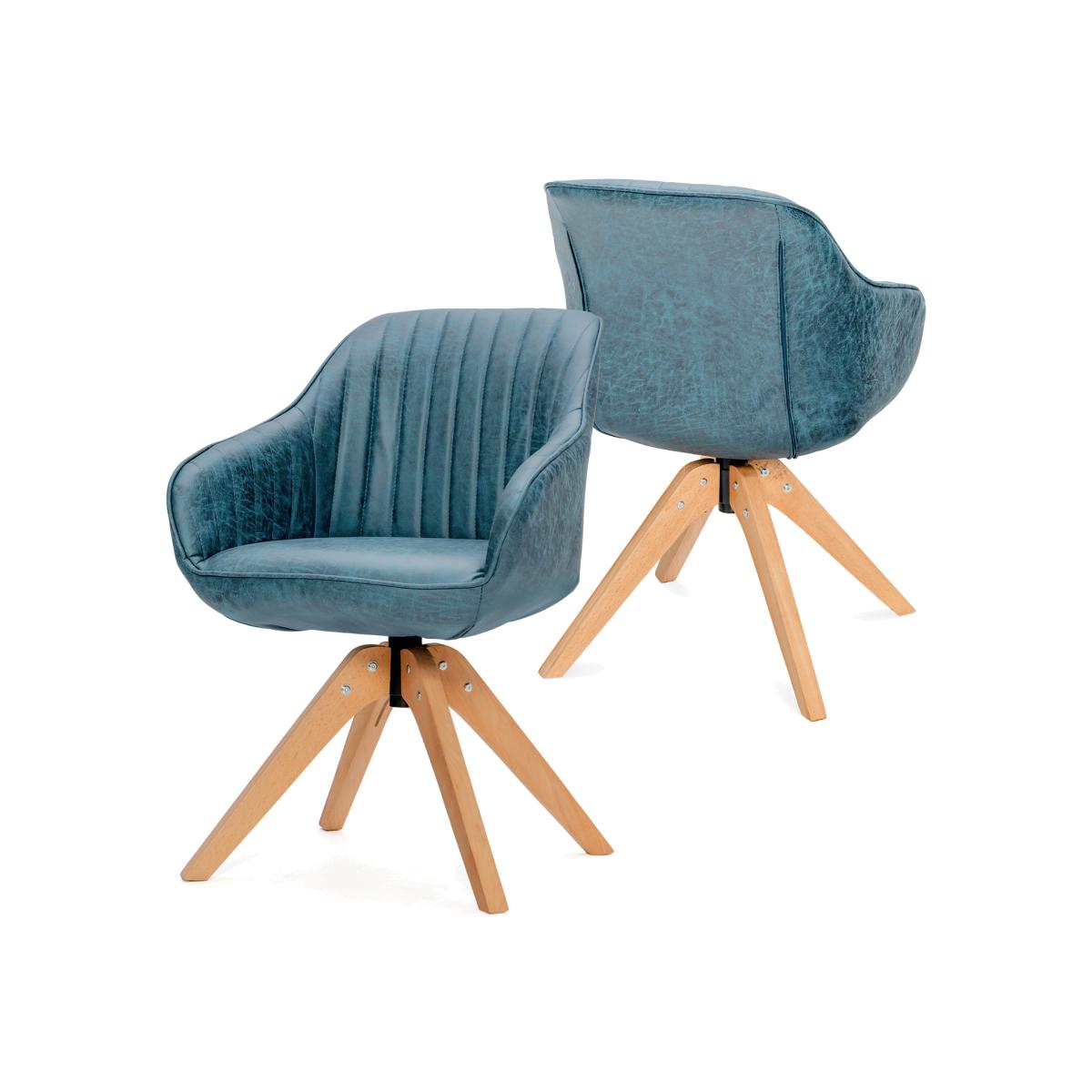 I’d reach for these blue swivel chairs when you need a quick style lift - the soft velvet finish and pale oak legs bridge Scandi simplicity and mid-century curves. They work just as well in a pared-back neutral lounge as they do to anchor a colourful home office or dressing corner. Practical tip: angle one beside a slim console and the other near a low bookcase to create a balanced reading nook. A neat throw draped over the arm and a small planter on a side table will add texture without clutter. The 360° swivel also keeps the layout flexible.