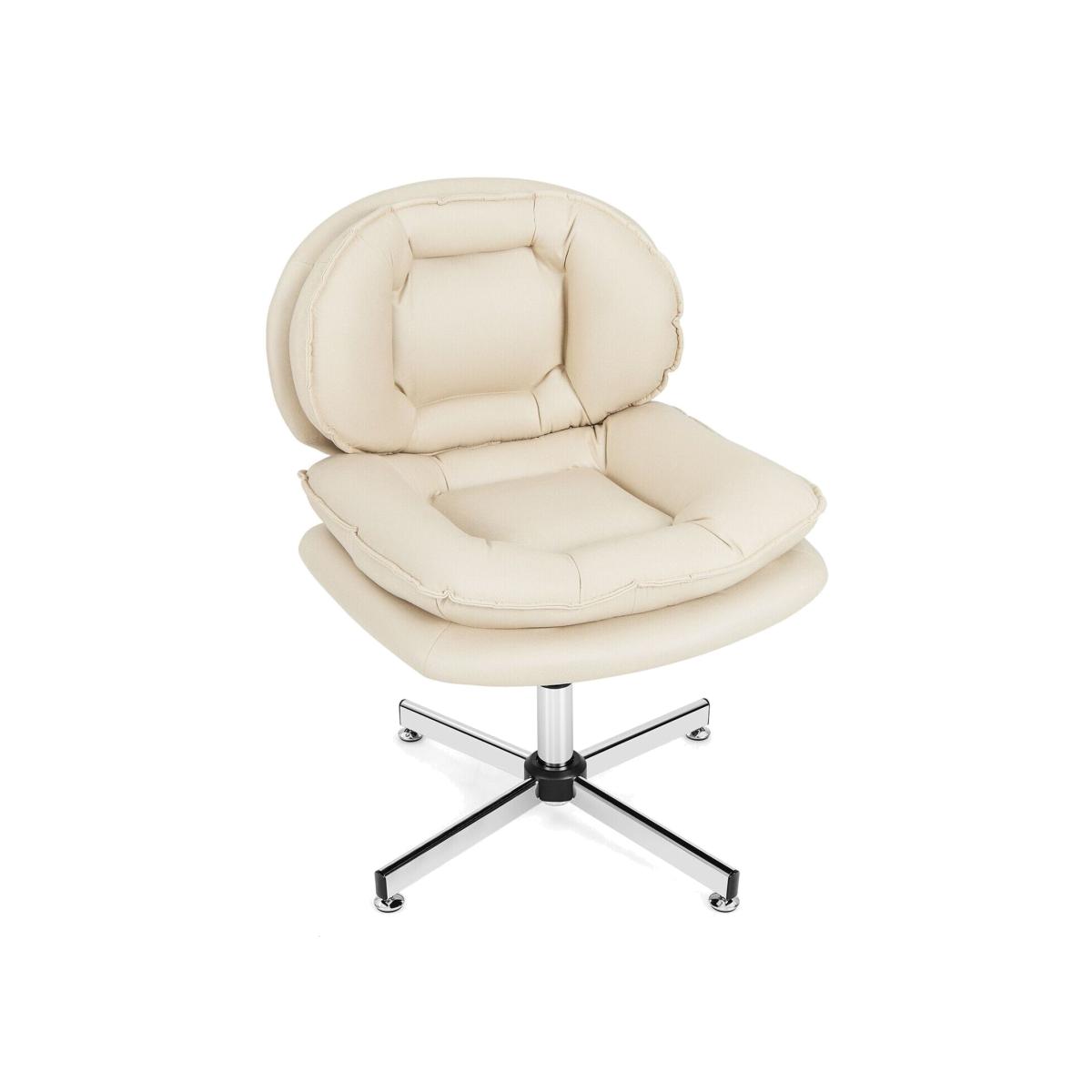 I’m a fan of this white swivel chair for its clean lines and lightweight feel - the armless shape keeps a room airy, so it’s perfect in a Scandi-inspired lounge or a modern home office. Style it next to a slim desk or set in a reading corner with a slimline floor lamp. To soften the look, drape a heather-grey wool throw over the back and add a moss-green planter beside it. Repeat the polished-chrome finish in a lamp base or side table to tie everything together.