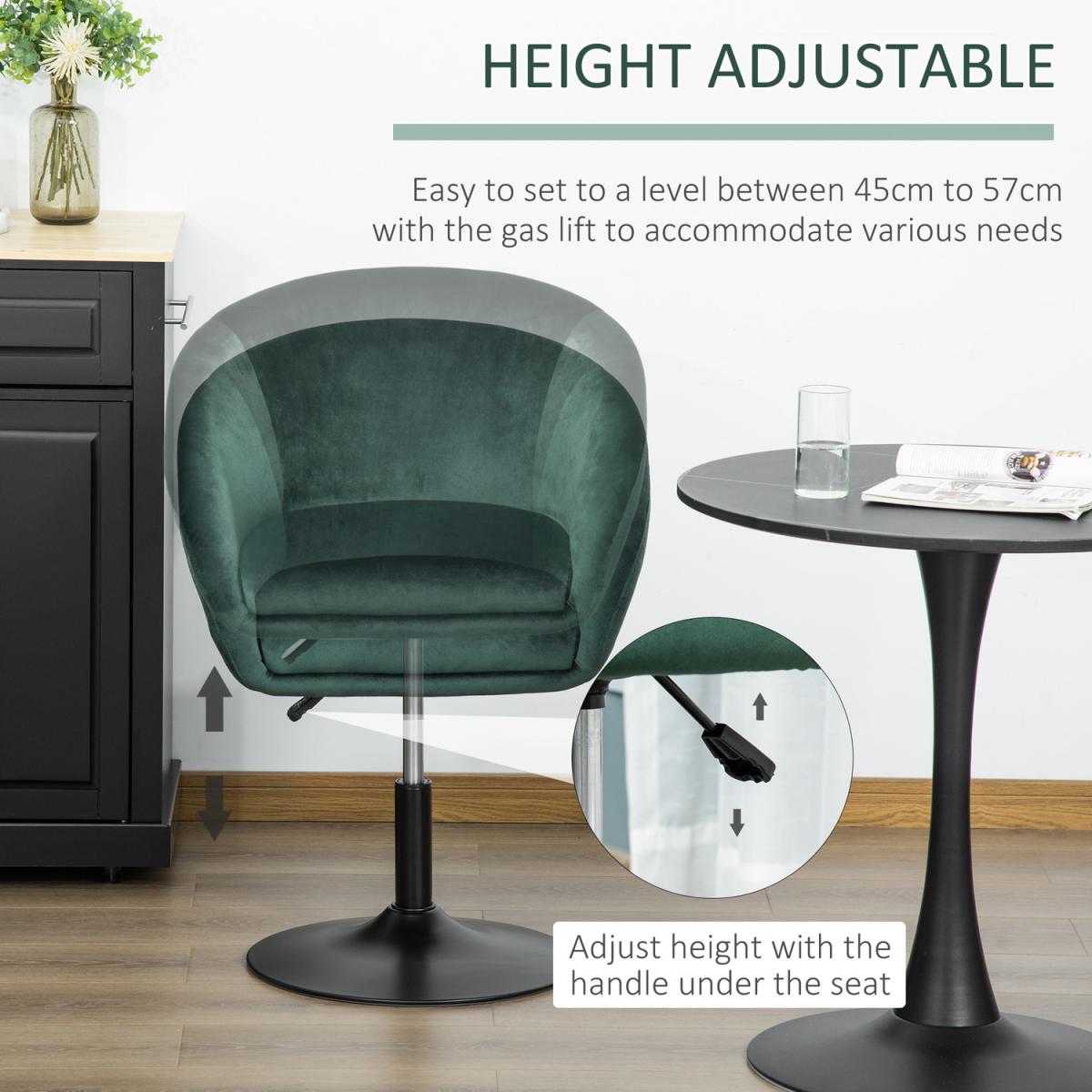 A beautiful piece for the everyday in your home - this HOMCOM stool seat. A stylish and spacious tub shape, there's plenty of room to sit and relax, with the padded seat, soft velvet-feel upholstery and high back making it as comfortable and supportive as possible. Height is also adjustable between 45cm and 57cm: it's easy to fix to a level you're happy with. Fixed on a strong metal frame, it's completed with a large round base for balance.
