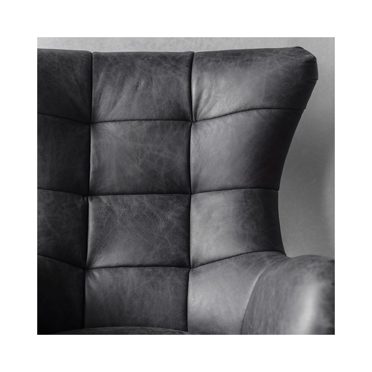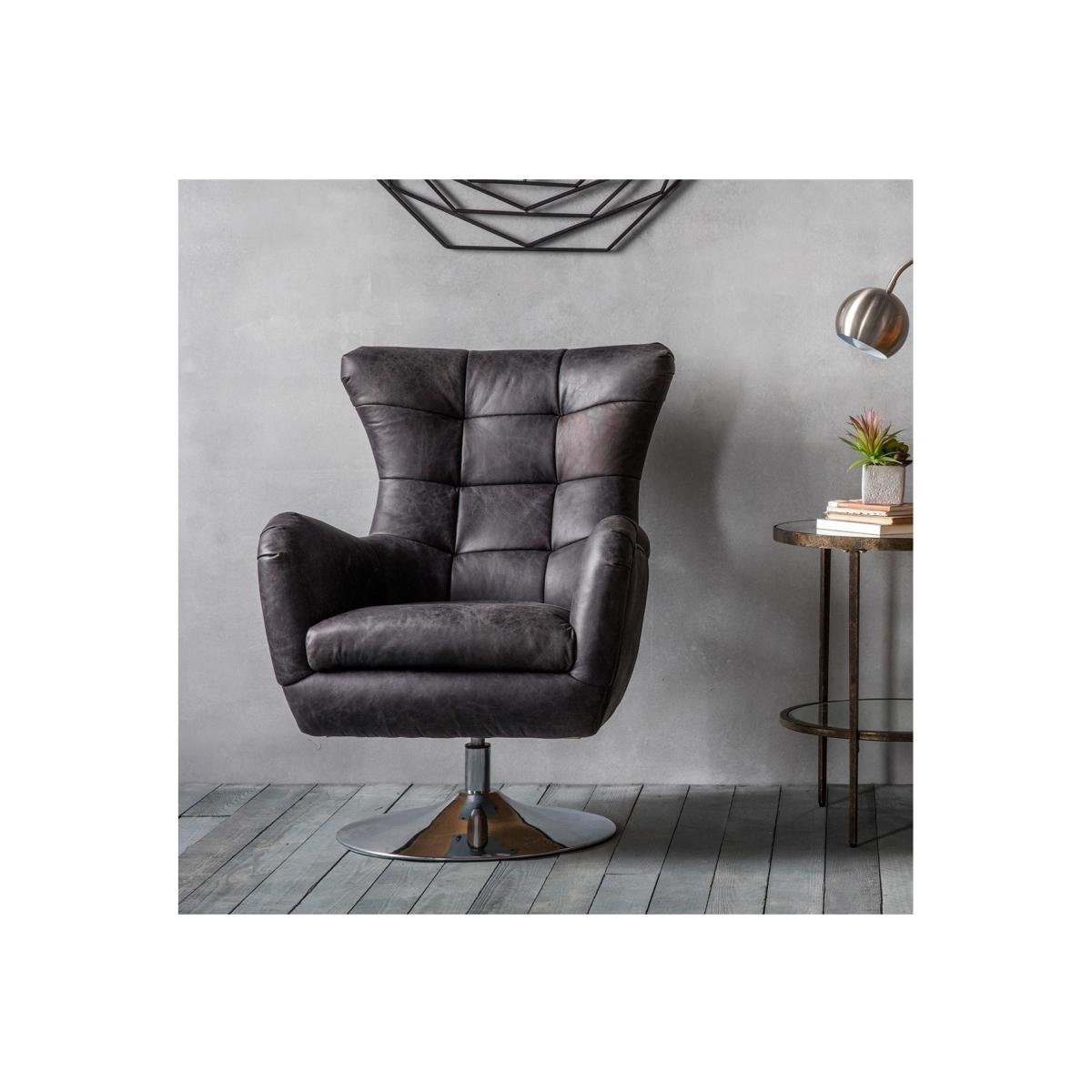Swivel Chair in Black Leather with Silver Base - Caspian House
