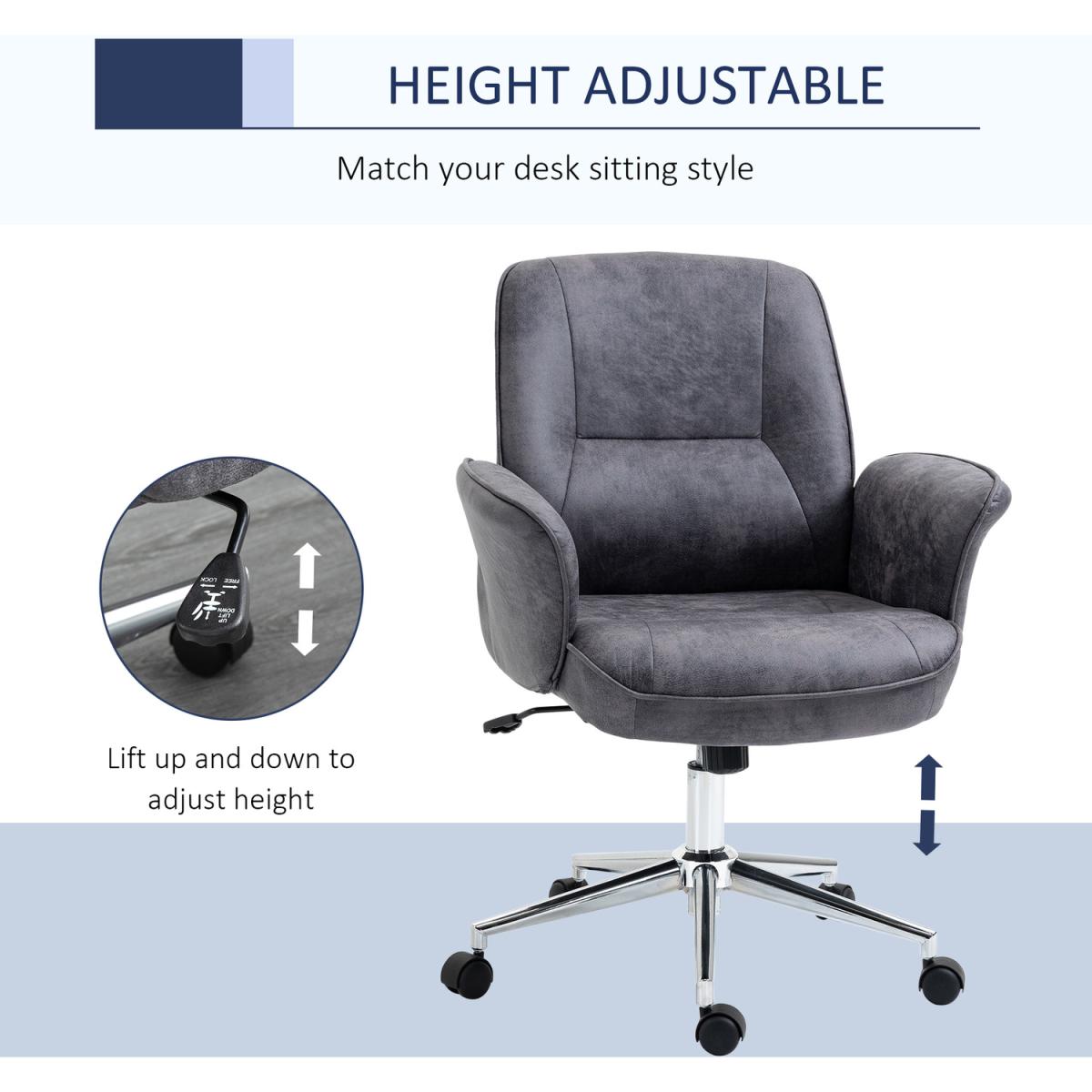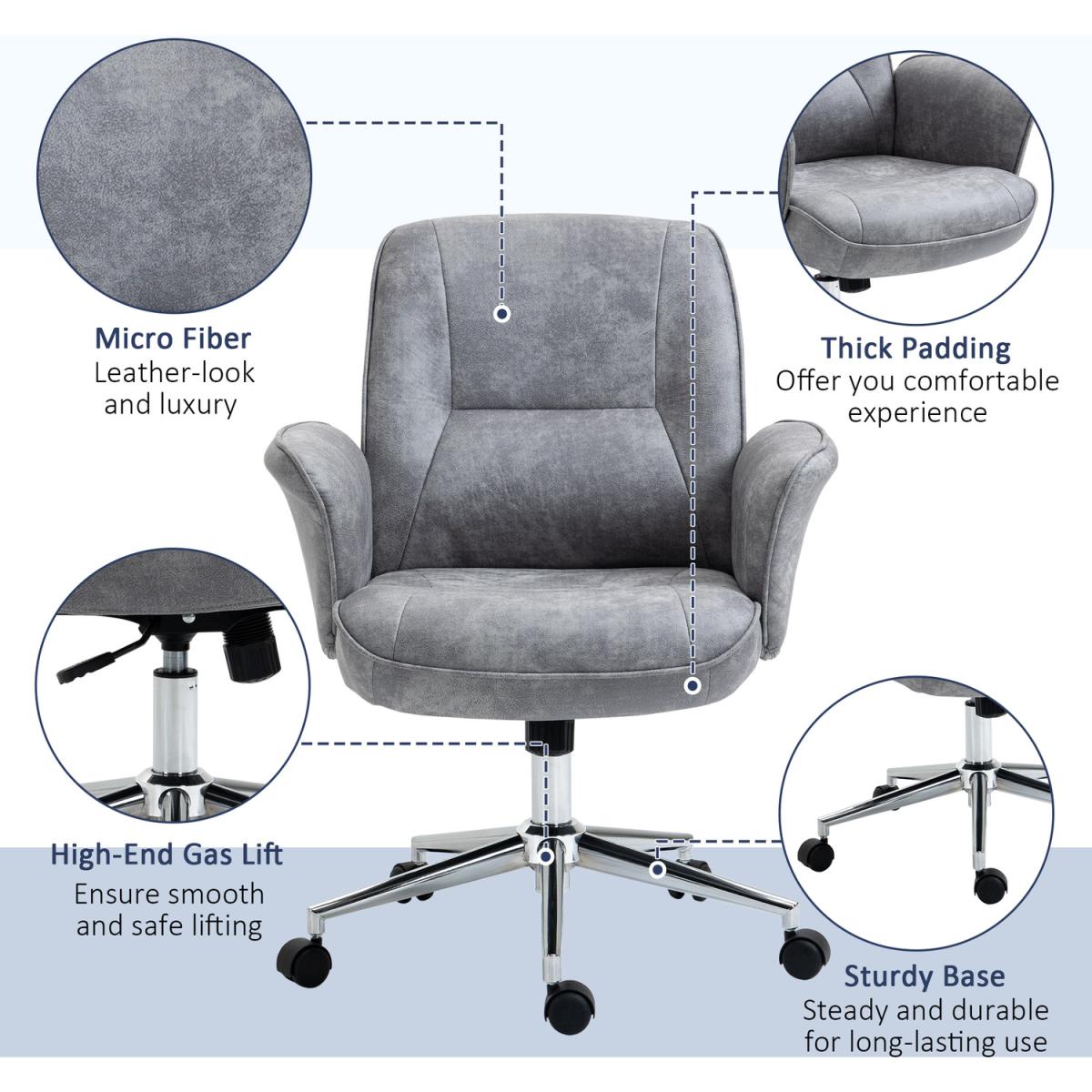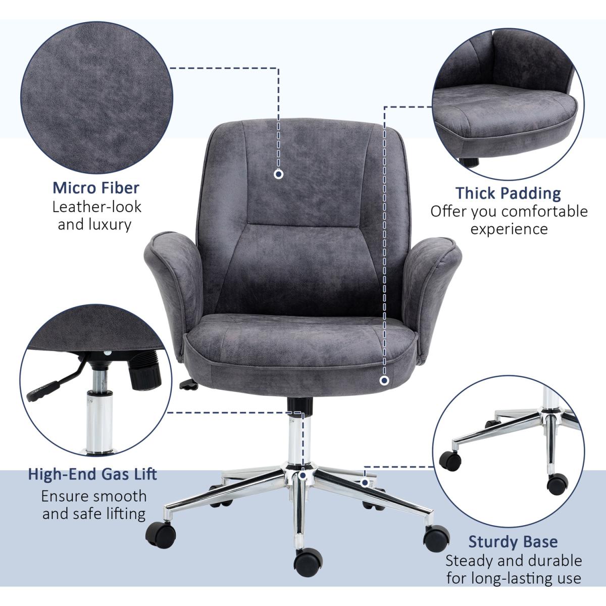 Big comfort, superb style starts here. Welcome this office chair, from Vinsetto, into the home for something you'll love using from day tonight. It's wrapped in microfibre upholstery, which gives a look of worn leather but is beautifully soft to the touch. An ergonomic design formed of a large seat that swivels side-to-side, a high back and curved armrests. It's padded all over for comfort, finished with five wheels on the base to move around easily.