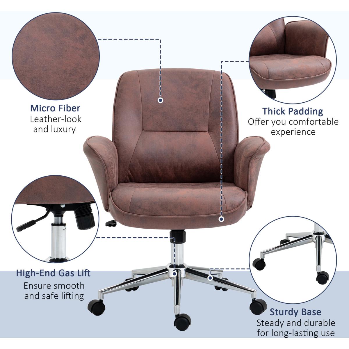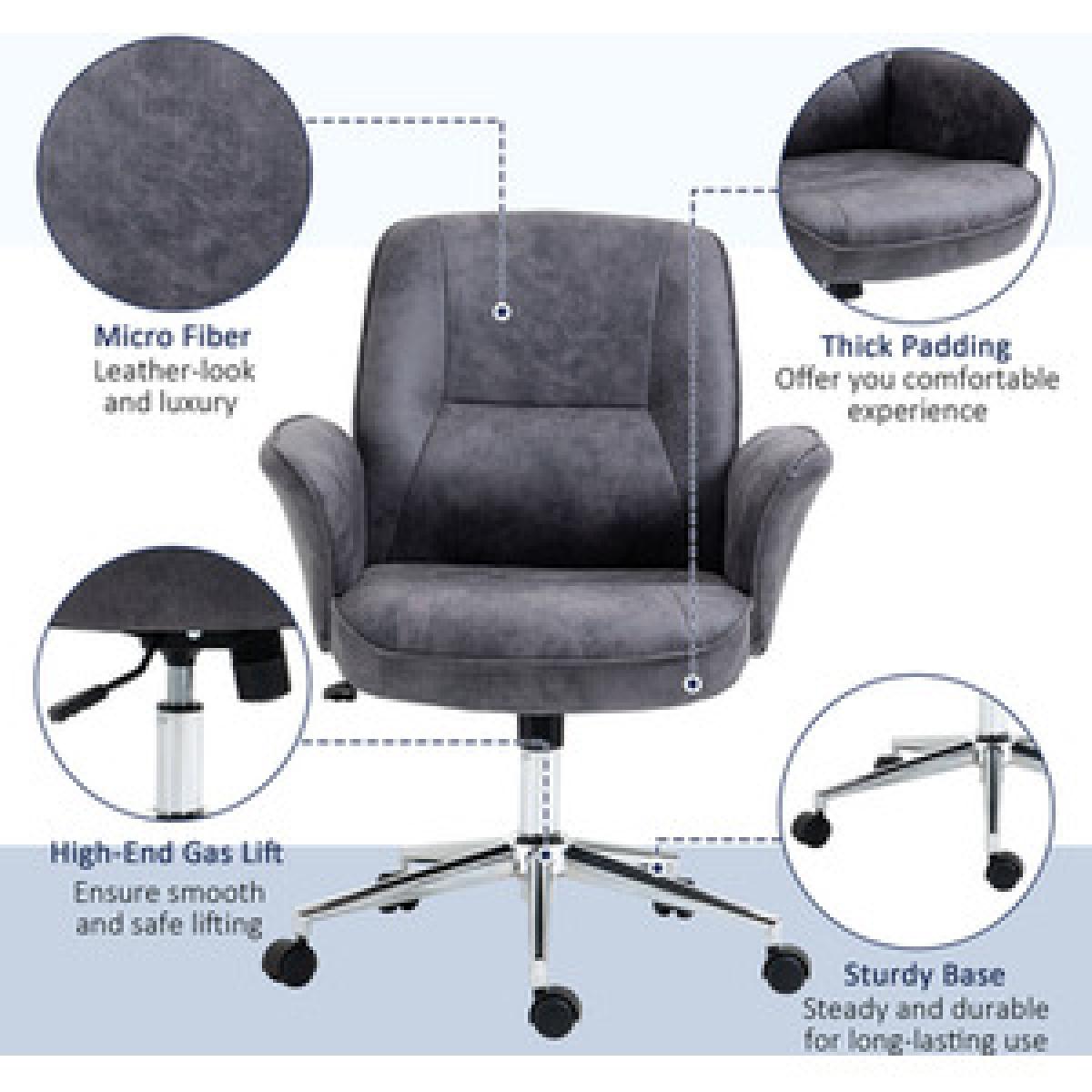 Big comfort, superb style starts here. Welcome this office chair, from Vinsetto, into the home for something you'll love using from day tonight. It's wrapped in microfibre upholstery, which gives a look of worn leather but is beautifully soft to the touch. An ergonomic design formed of a large seat that swivels side-to-side, a high back and curved armrests. It's padded all over for comfort, finished with five wheels on the base to move around easily.