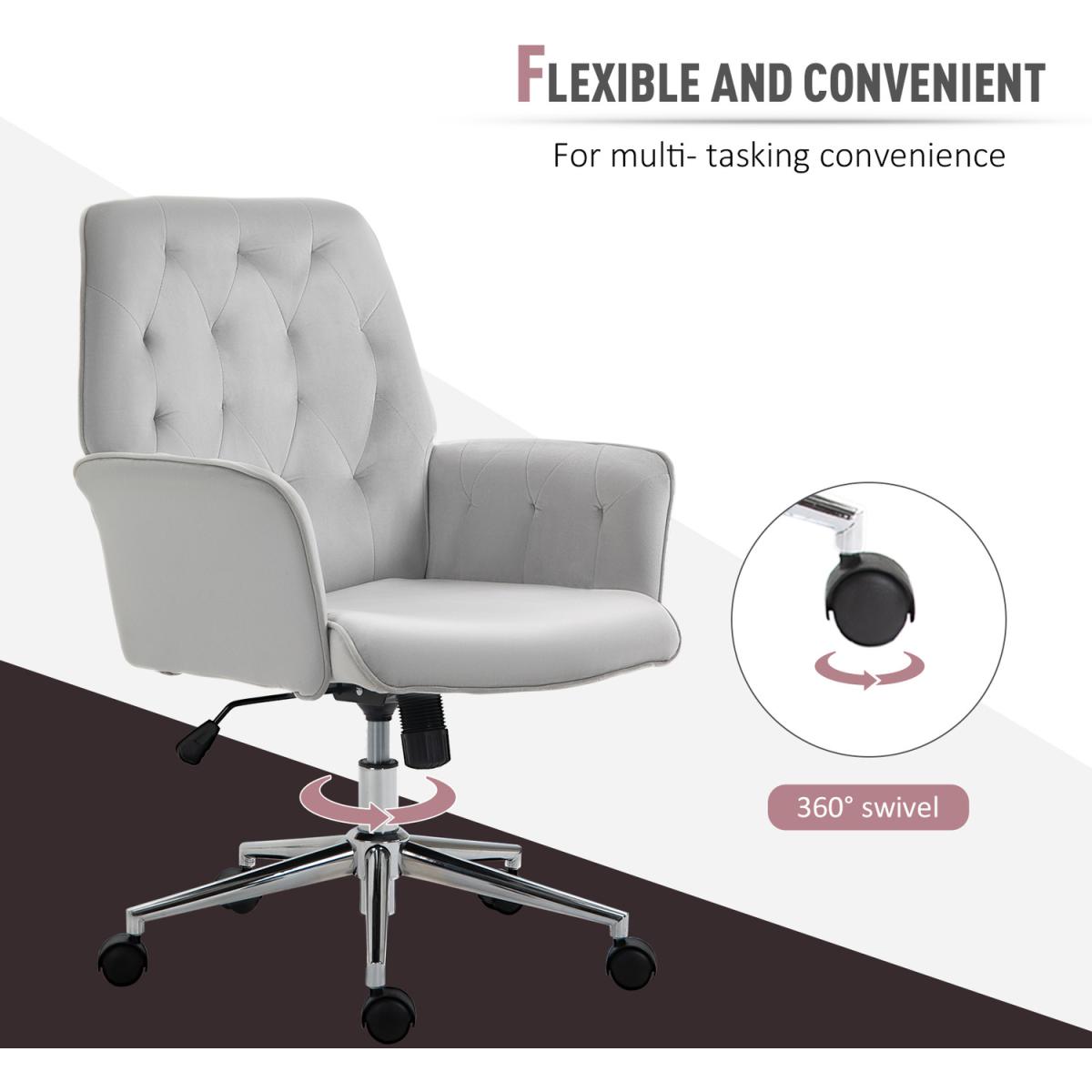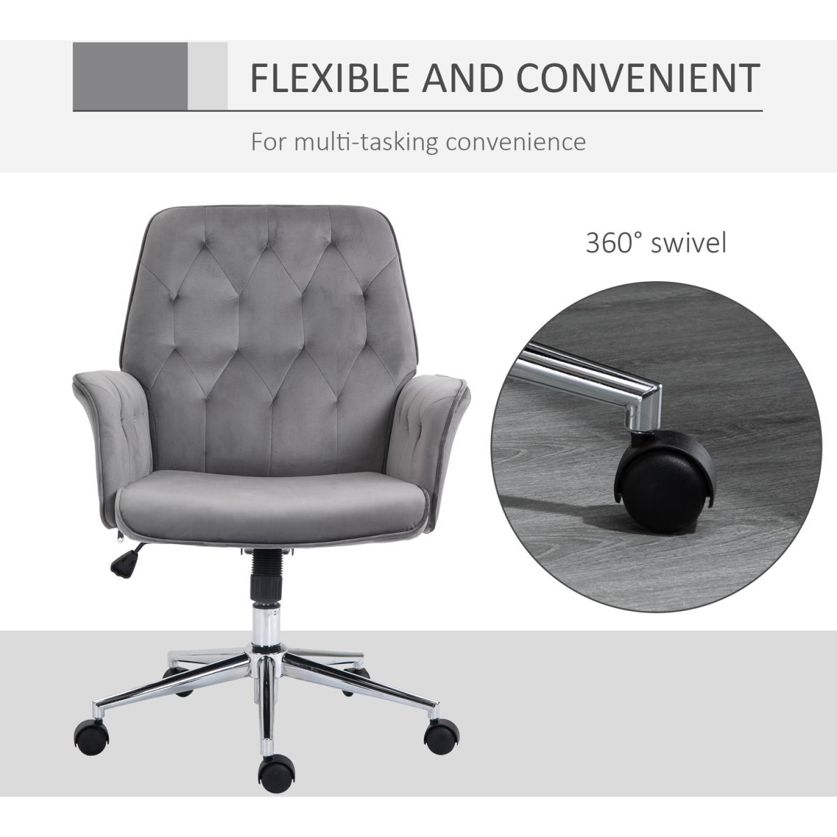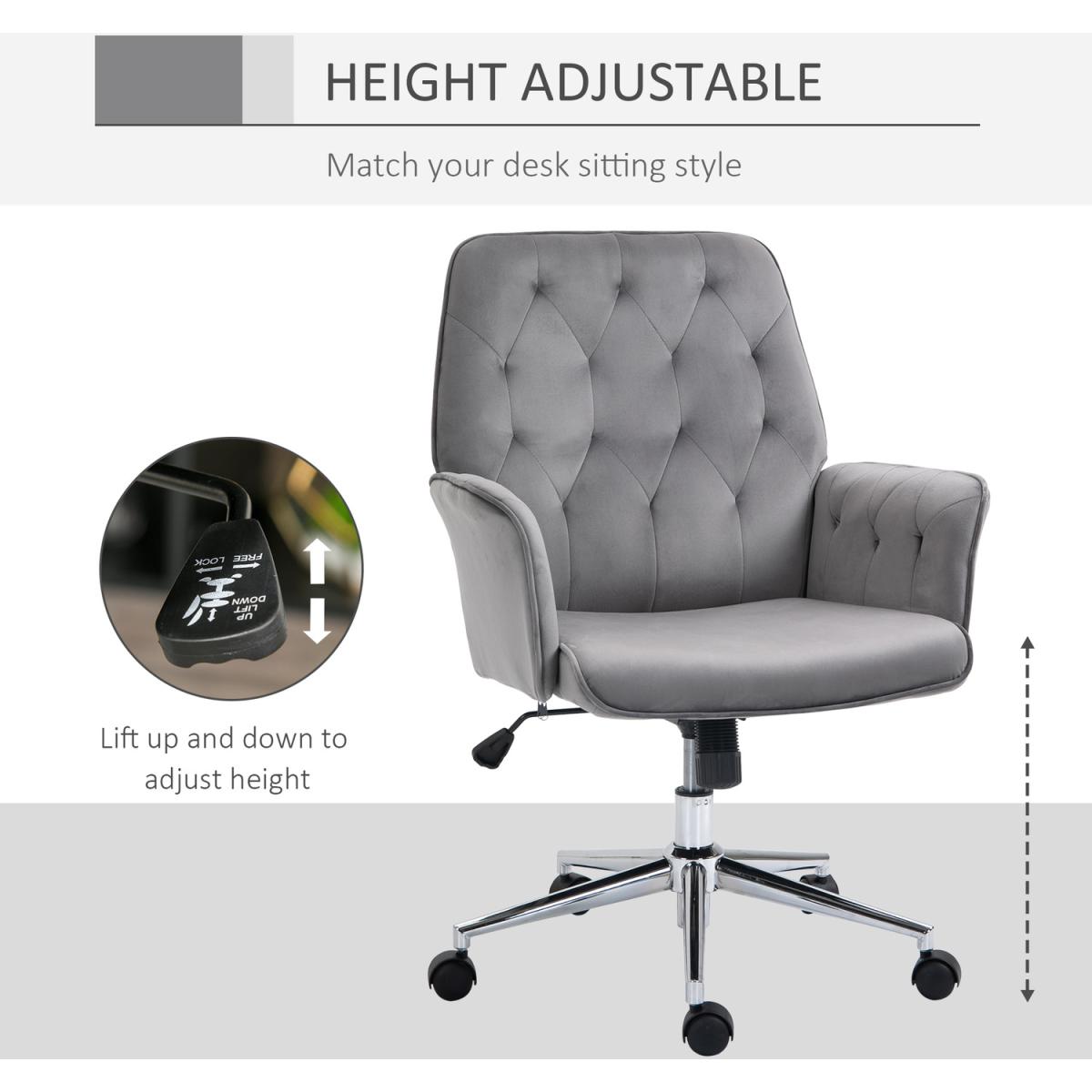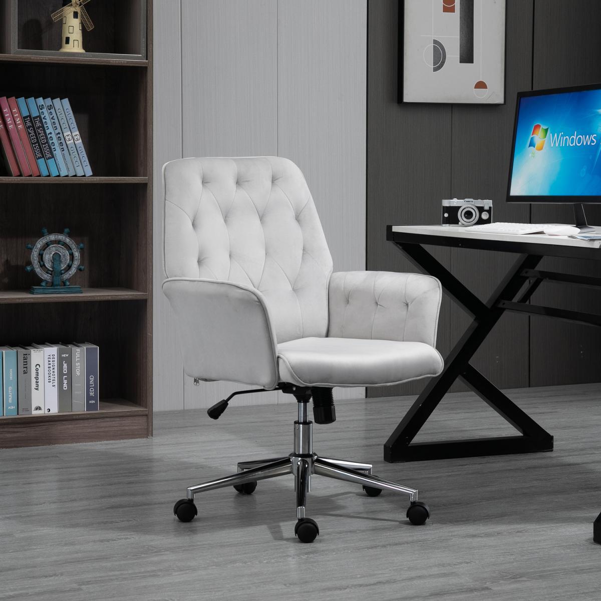This home office chair from Vinsetto proves that functionality doesn't have to mean a sacrifice in style. It's designed for premium comfort with 360 degrees of swivel movement and an adjustable height. The smooth-rolling casters allow for easy movement. This mid-back desk chair for bedroom features a velvet touch fabric and steel base that provides all-day support to your upper and lower regions. A padded seat, armrests, and backrest extend this for extra comfort and support.