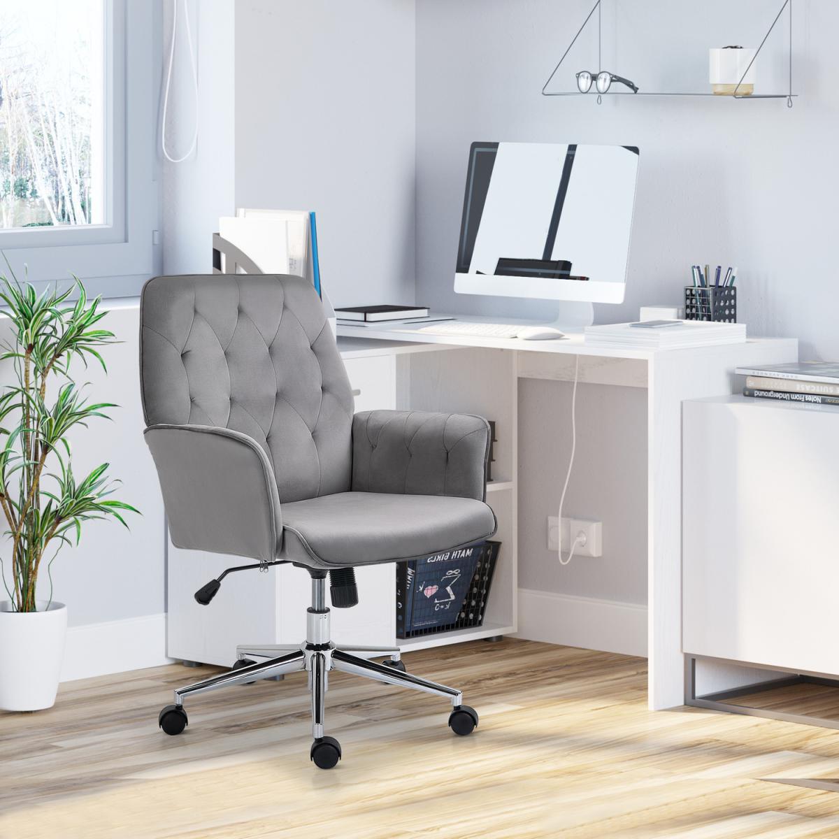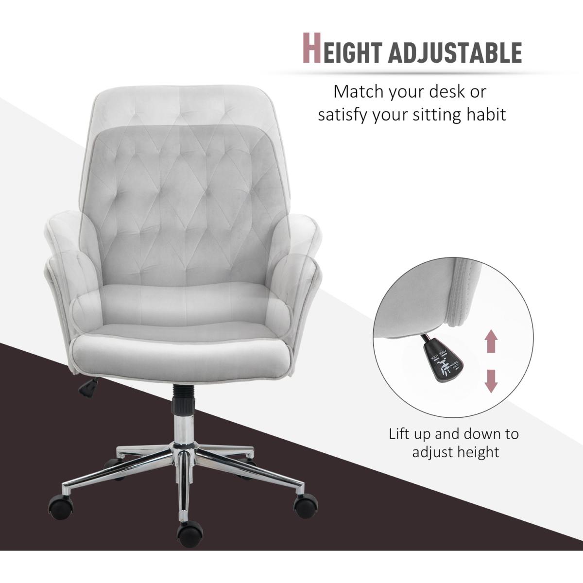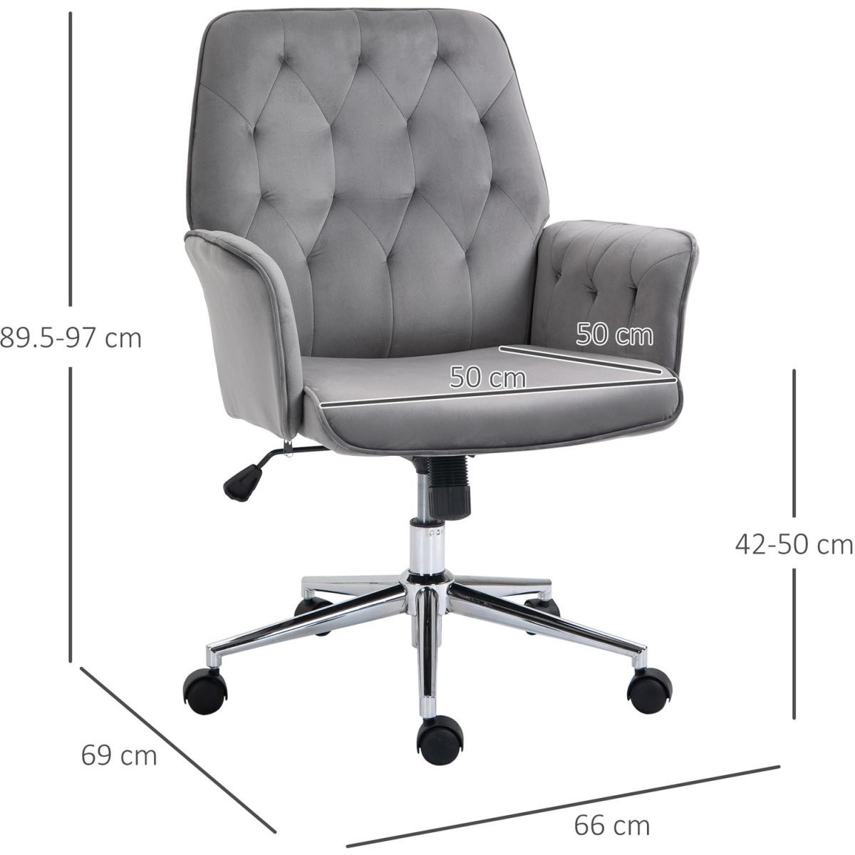 This home office chair from Vinsetto proves that functionality doesn't have to mean a sacrifice in style. It's designed for premium comfort with 360 degrees of swivel movement and an adjustable height. The smooth-rolling casters allow for easy movement. This mid-back desk chair for bedroom features a velvet touch fabric and steel base that provides all-day support to your upper and lower regions. A padded seat, armrests, and backrest extend this for extra comfort and support.