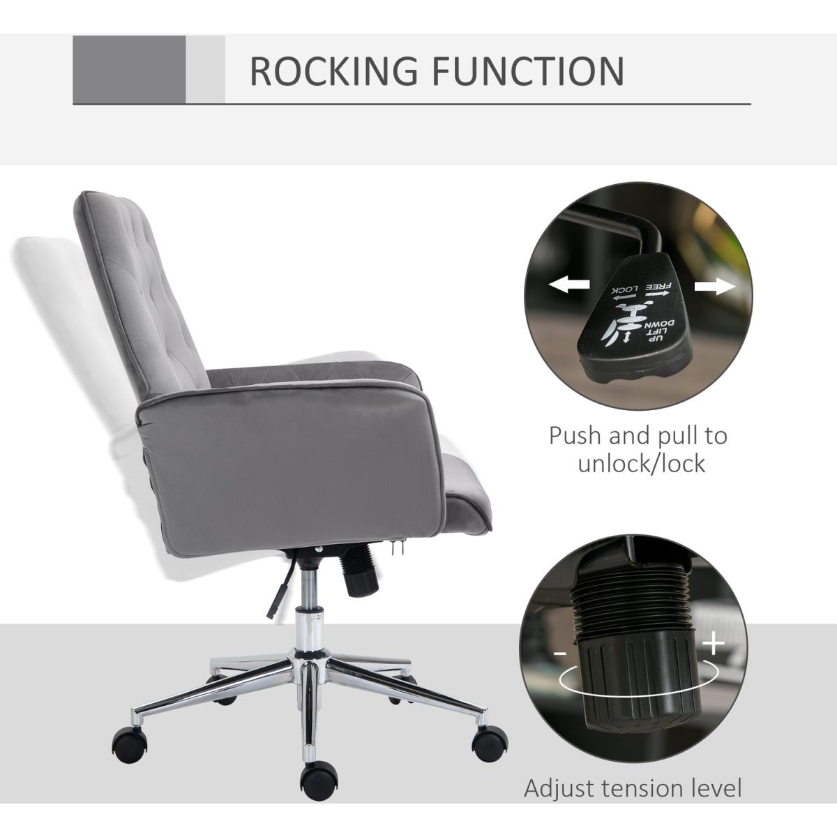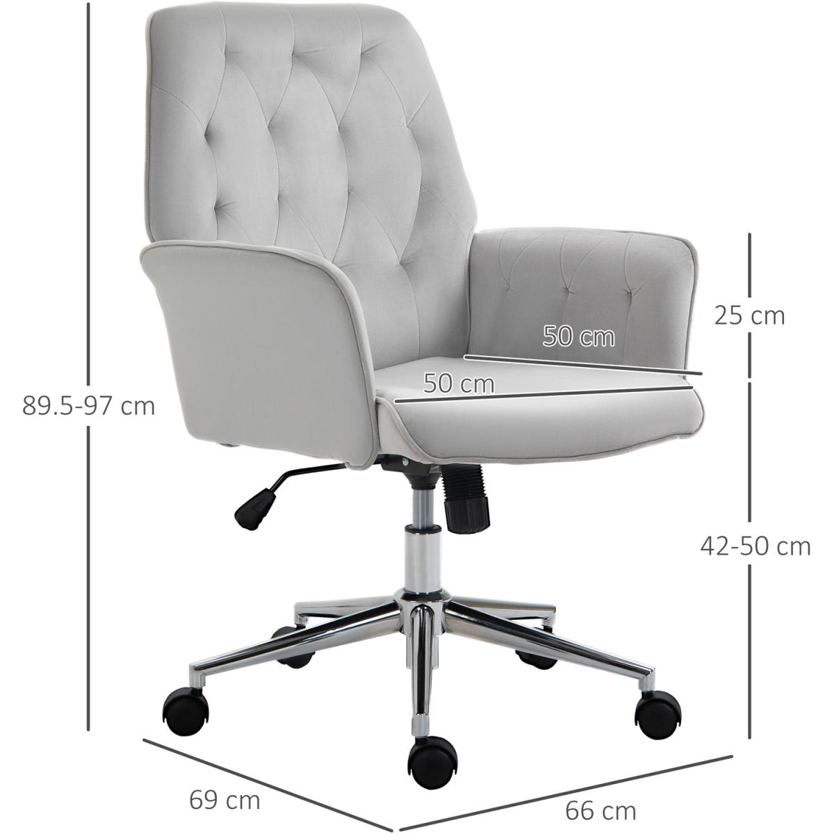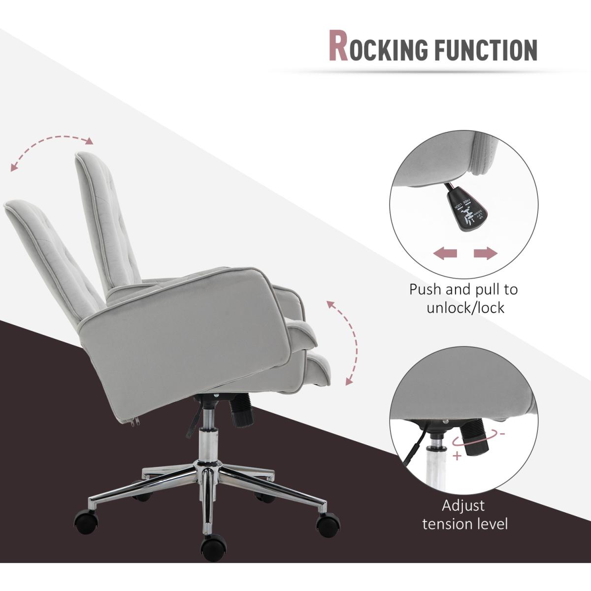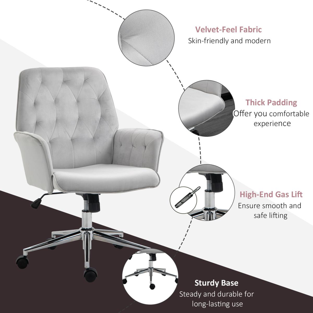 This home office chair from Vinsetto proves that functionality doesn't have to mean a sacrifice in style. It's designed for premium comfort with 360 degrees of swivel movement and an adjustable height. The smooth-rolling casters allow for easy movement. This mid-back desk chair for bedroom features a velvet touch fabric and steel base that provides all-day support to your upper and lower regions. A padded seat, armrests, and backrest extend this for extra comfort and support.