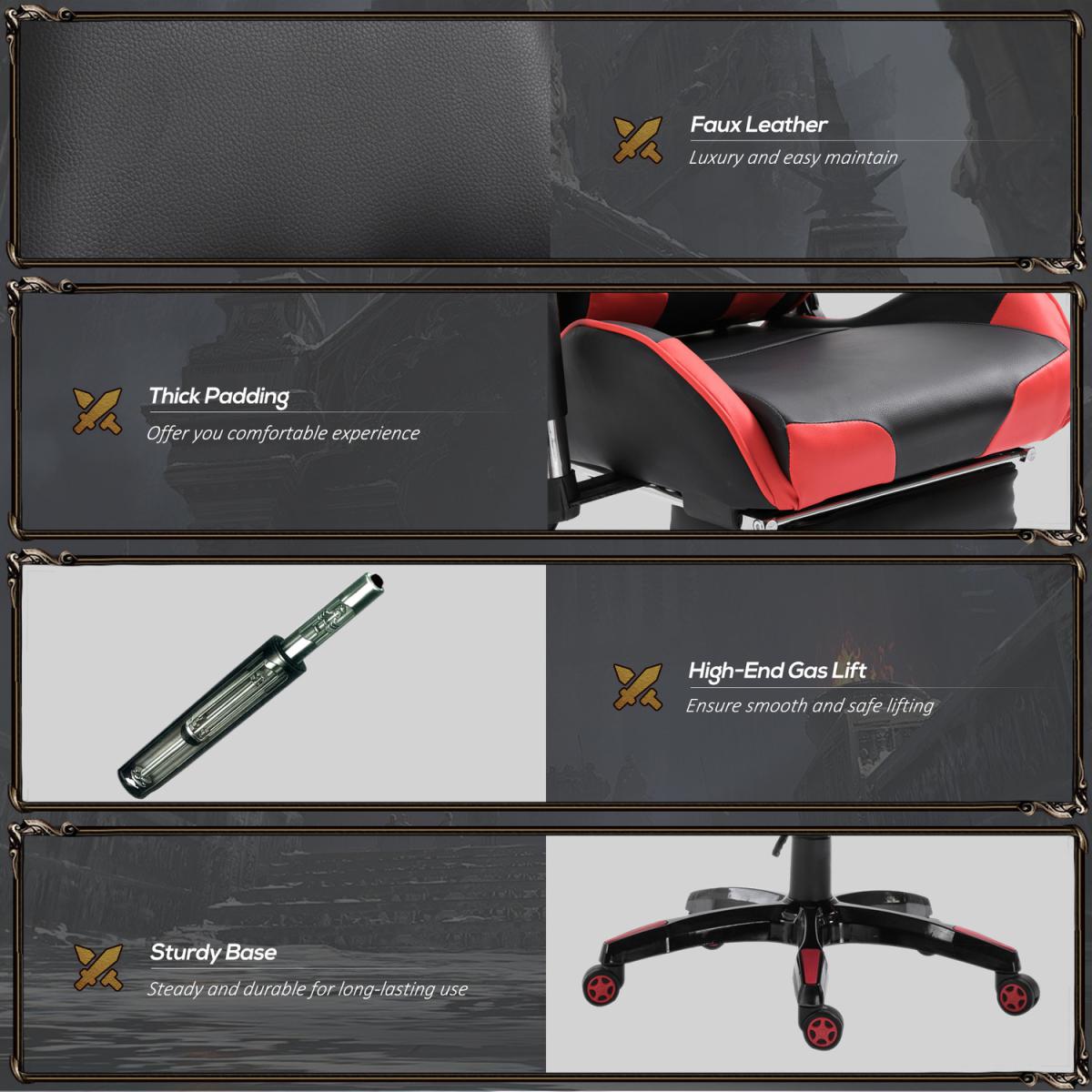 A well-designed curve and shaped gaming chair from HOMCOM fit most body types perfectly. Convenient lift and tilt control enable you to find a perfect position for a comfortable rest, gaming sessions or work. You can lie on it in a luxurious 180-degree position, putting your feet on the pedal so as to relax your whole body and have a good rest after extensive work.