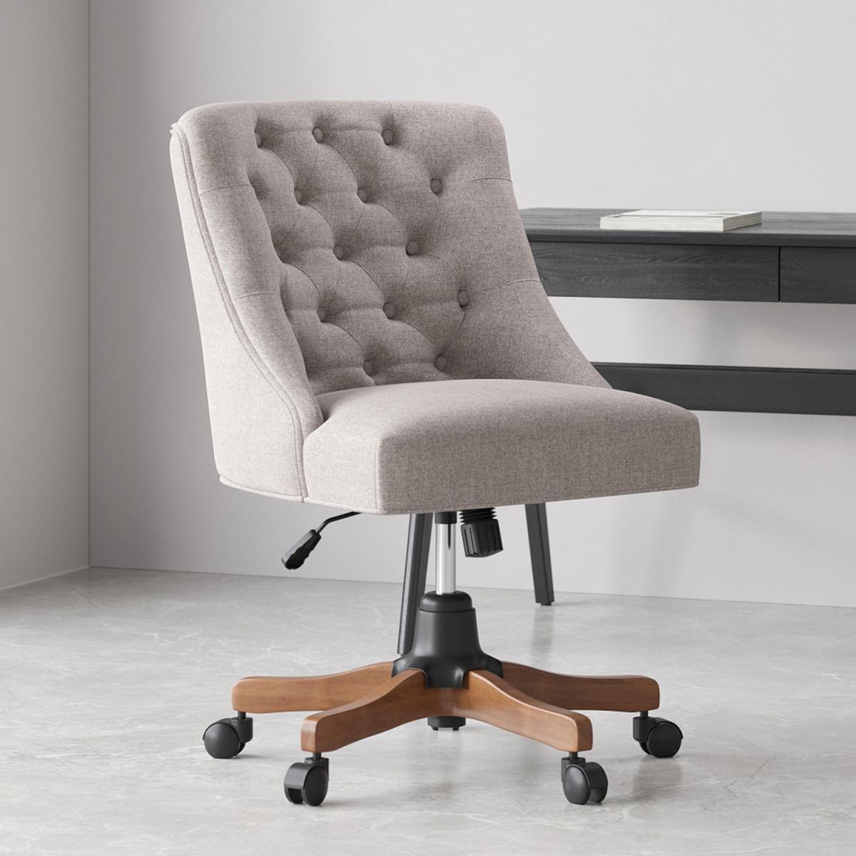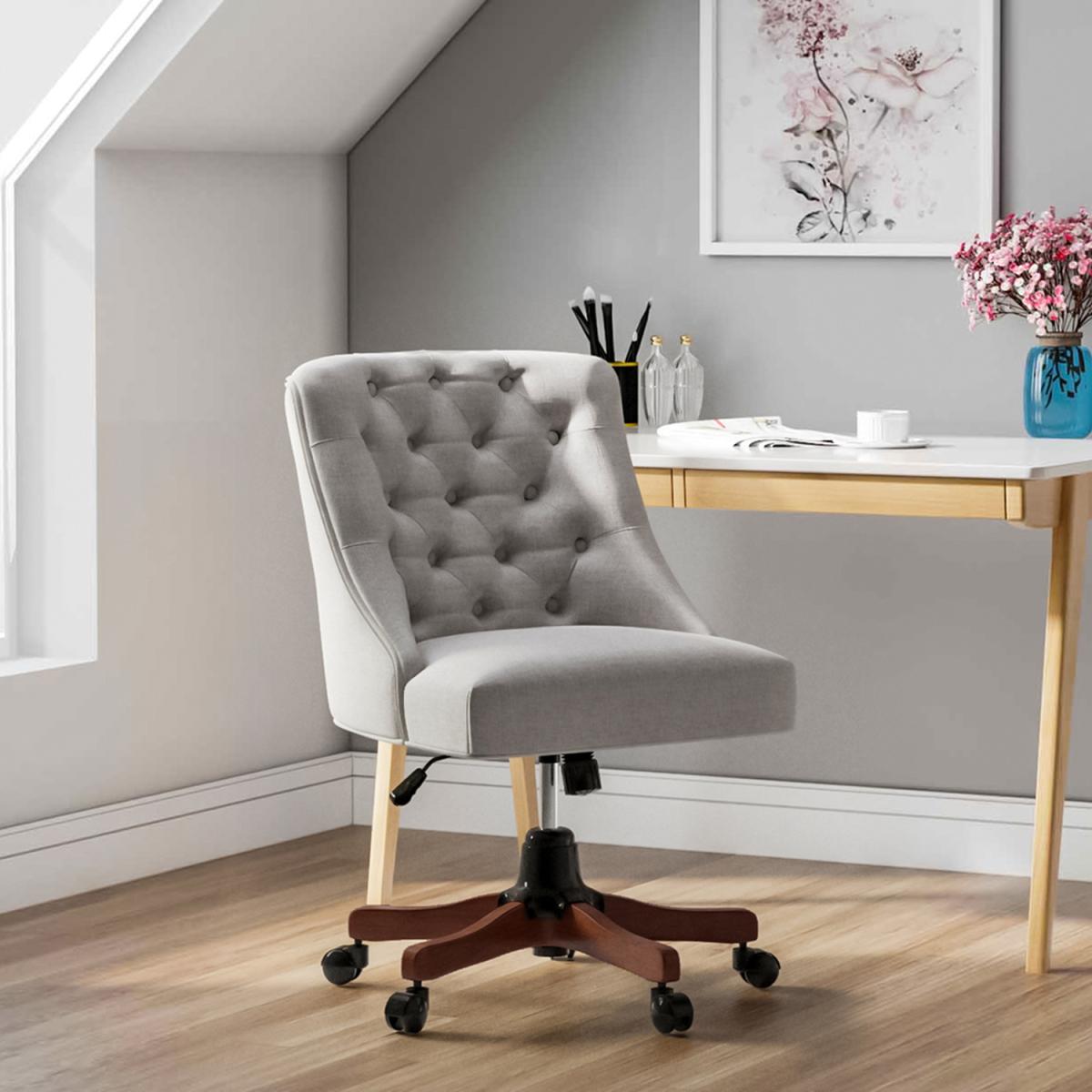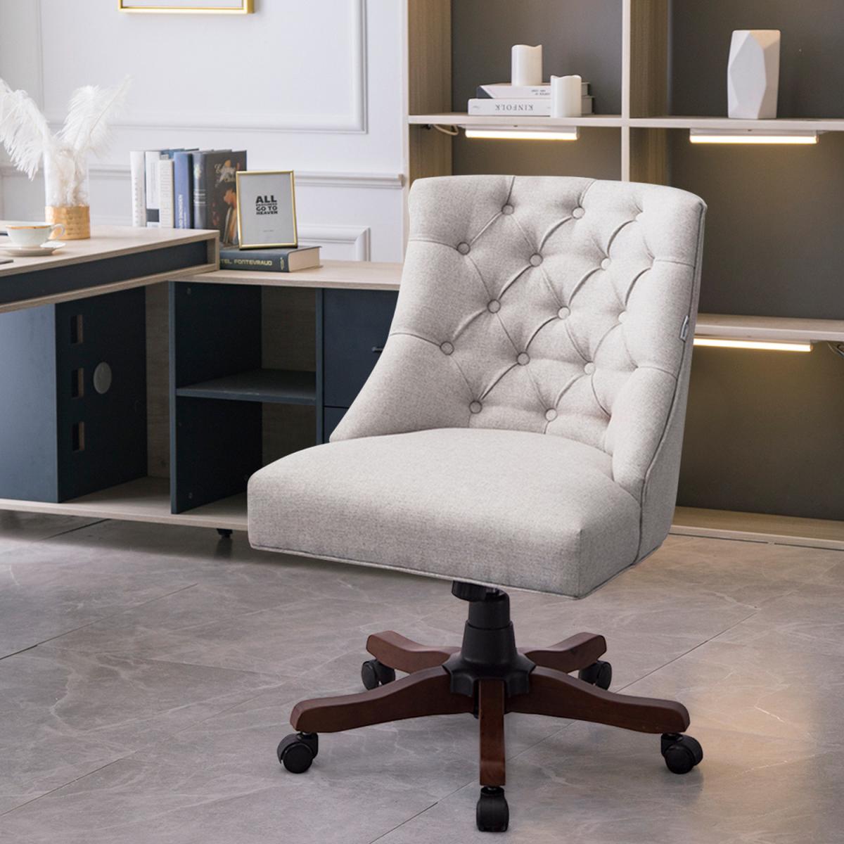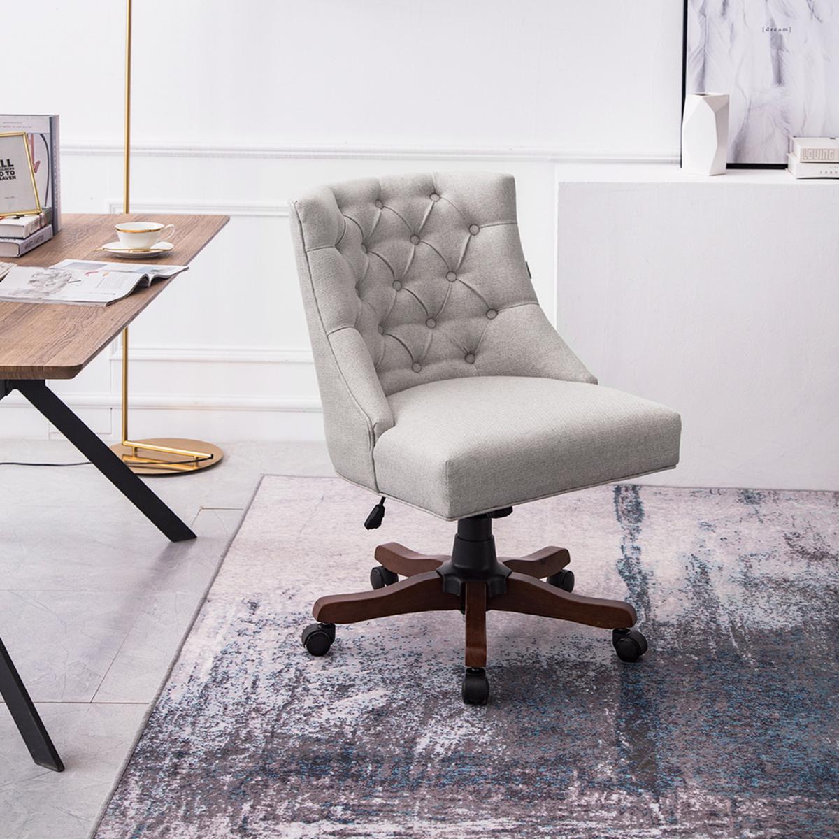 The mid-back executive office chair offers reliable back support for daily use. It stands on metal wooden legs, which not only has excellent stability but also adds to the modern style of the chair. Wrapped in soft microfibre with sponge padding to extend comfort, the seat is etched with a button and square design for style. This revolving computer chair stands on 5 noise-cancelling casters, all made of high-quality plastic and rubber and capable of multi-directional running. You can also easily adjust the height, allowing you to sit at a level that is best for you. Whether it is placed in the office or in the home, you will have instantly made the right choice.