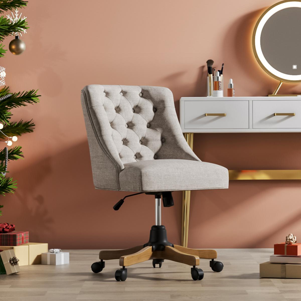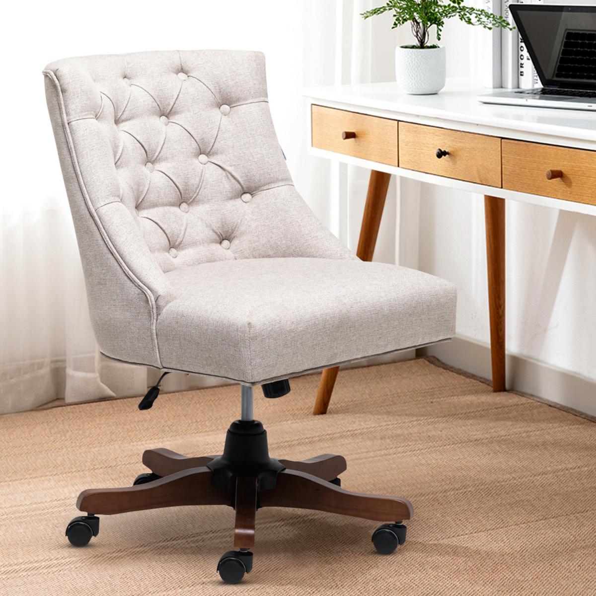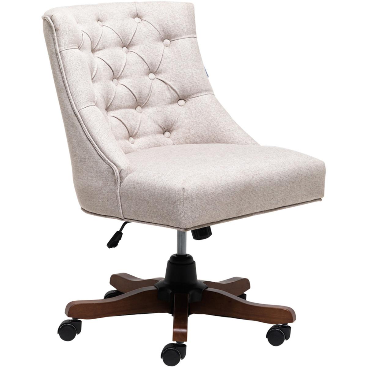 The mid-back executive office chair offers reliable back support for daily use. It stands on metal wooden legs, which not only has excellent stability but also adds to the modern style of the chair. Wrapped in soft microfibre with sponge padding to extend comfort, the seat is etched with a button and square design for style. This revolving computer chair stands on 5 noise-cancelling casters, all made of high-quality plastic and rubber and capable of multi-directional running. You can also easily adjust the height, allowing you to sit at a level that is best for you. Whether it is placed in the office or in the home, you will have instantly made the right choice.