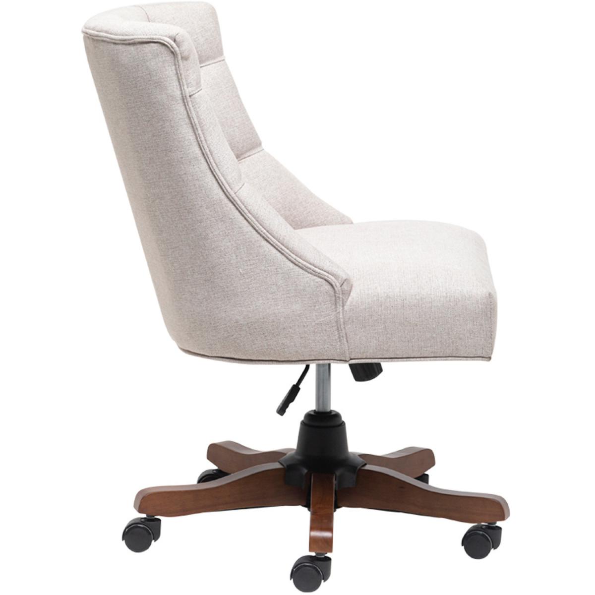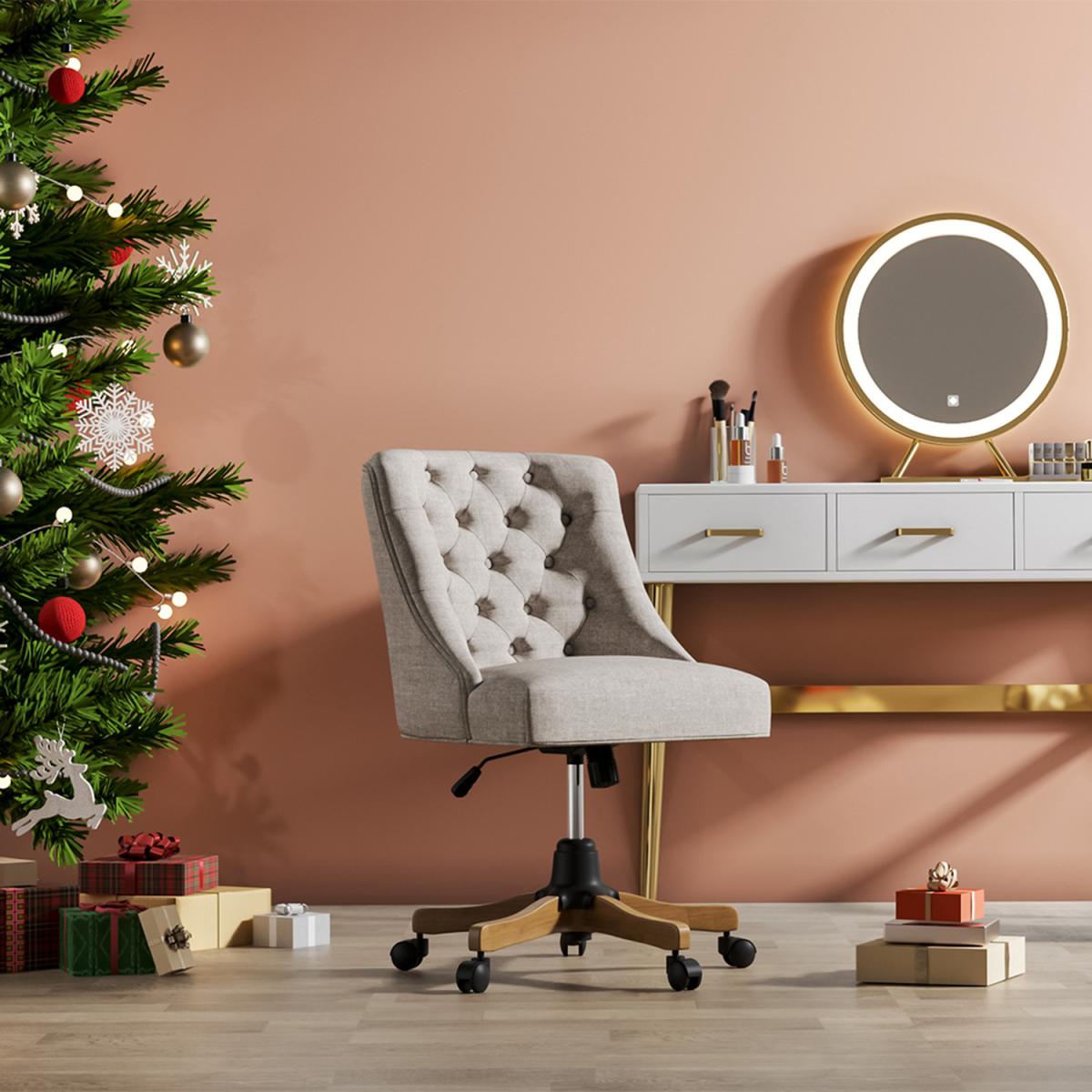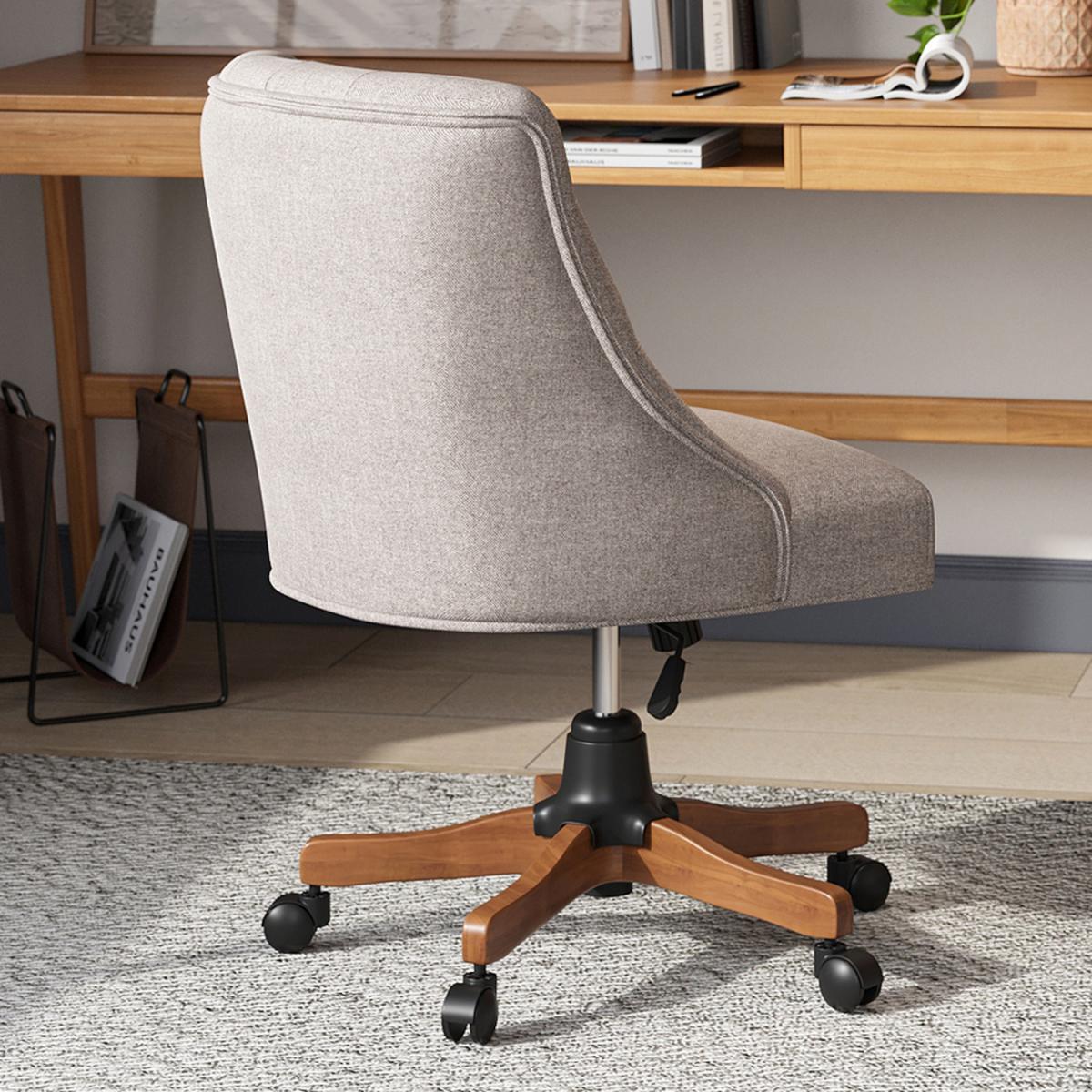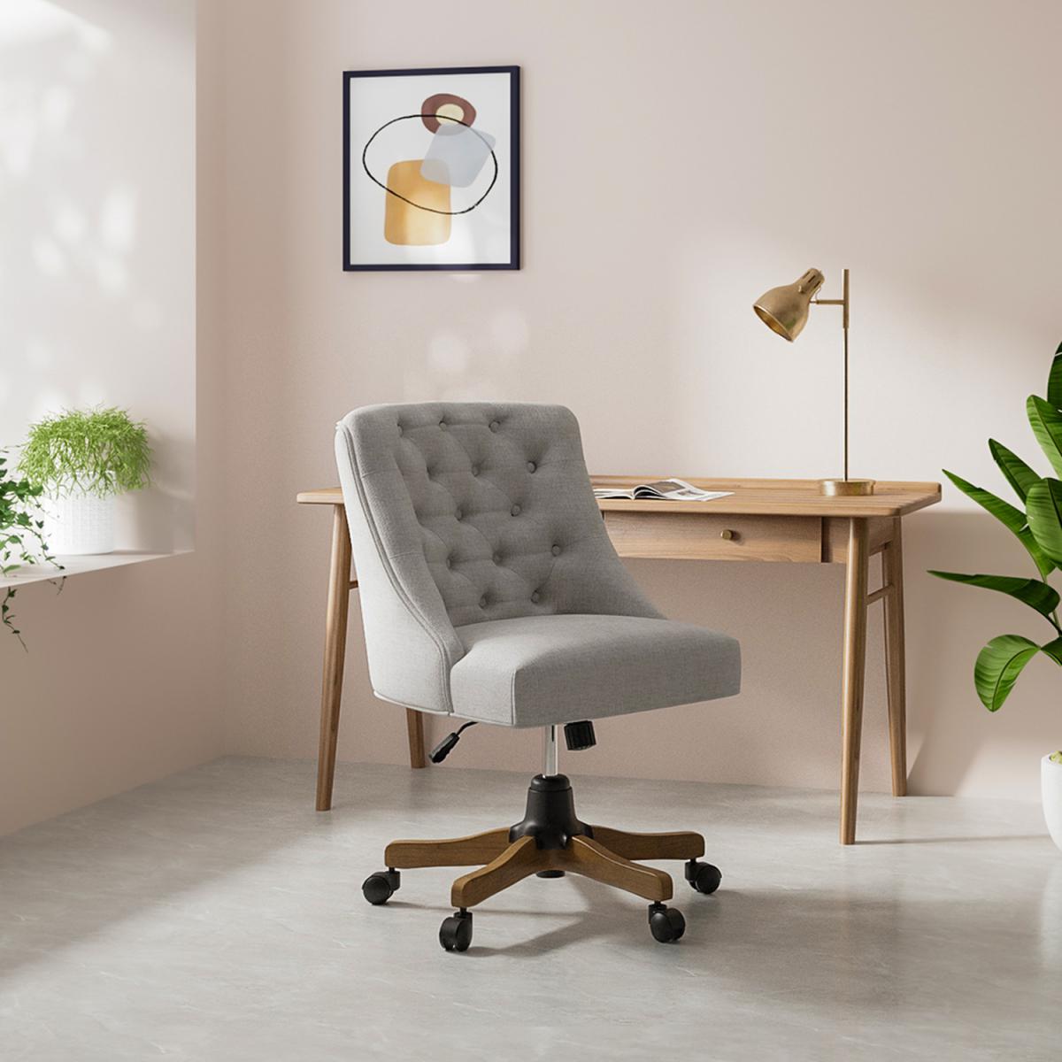The mid-back executive office chair offers reliable back support for daily use. It stands on metal wooden legs, which not only has excellent stability but also adds to the modern style of the chair. Wrapped in soft microfibre with sponge padding to extend comfort, the seat is etched with a button and square design for style. This revolving computer chair stands on 5 noise-cancelling casters, all made of high-quality plastic and rubber and capable of multi-directional running. You can also easily adjust the height, allowing you to sit at a level that is best for you. Whether it is placed in the office or in the home, you will have instantly made the right choice.