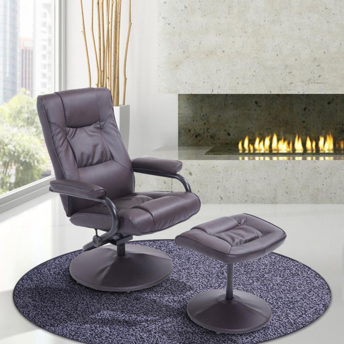 Swivel Recliner and Ottoman with Adjustable Backrest - Brown
