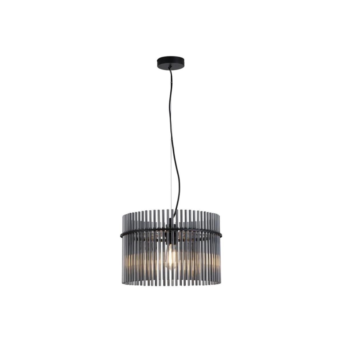 Elevate your space with the Swizzle Pendant – a contemporary fusion of lighting and art. Its precision-arranged cage of black smoked glass rods creates an architectural statement that captivates both illuminated and unlit. When lit, a radiant band of light glows through the glass, transforming the pendant into a luminous centrepiece that enhances any interior. Ideal for dining rooms, bedrooms, living areas, or minimalist kitchens, the glass rod design casts intricate shadows while creating a sophisticated ambience.