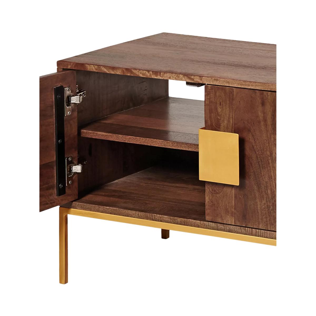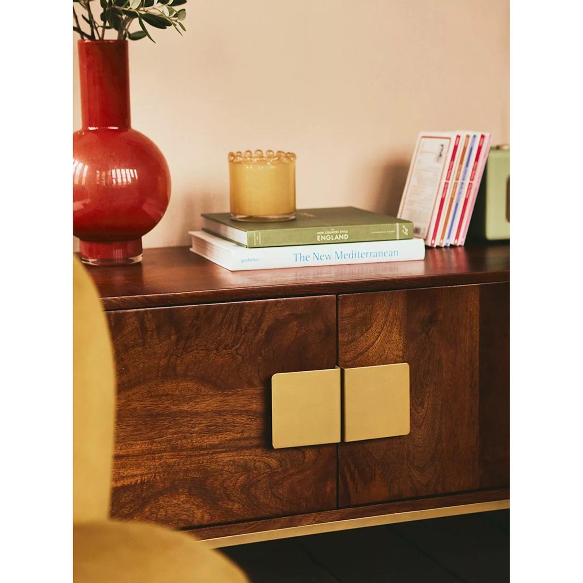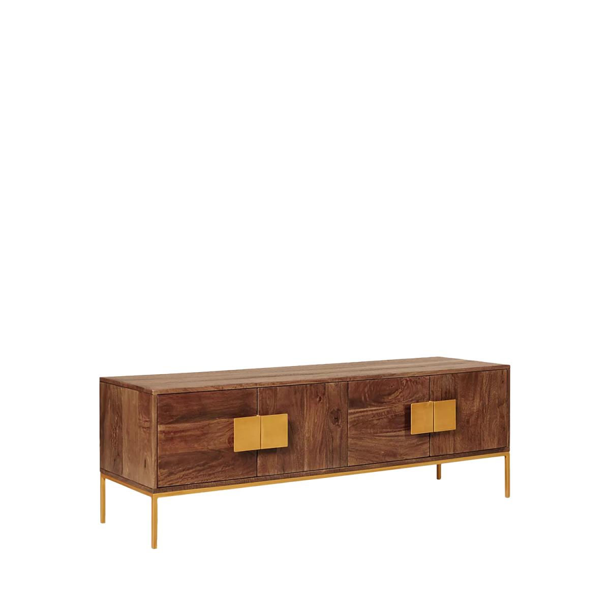 Richly coloured mango wood with a flash of antique brass, this Deco-style media unit will add bold dose of depth to your room. Made with solid wood and handcrafted one at a time, there may be natural variations in colour and texture that are not product flaws, they make your design truly one-of-a-kind. Want to see it first? You may want to see and get a feel for the furniture in one of our shops before ordering. We'll be able to tell you where the range you'd like to view is on display.