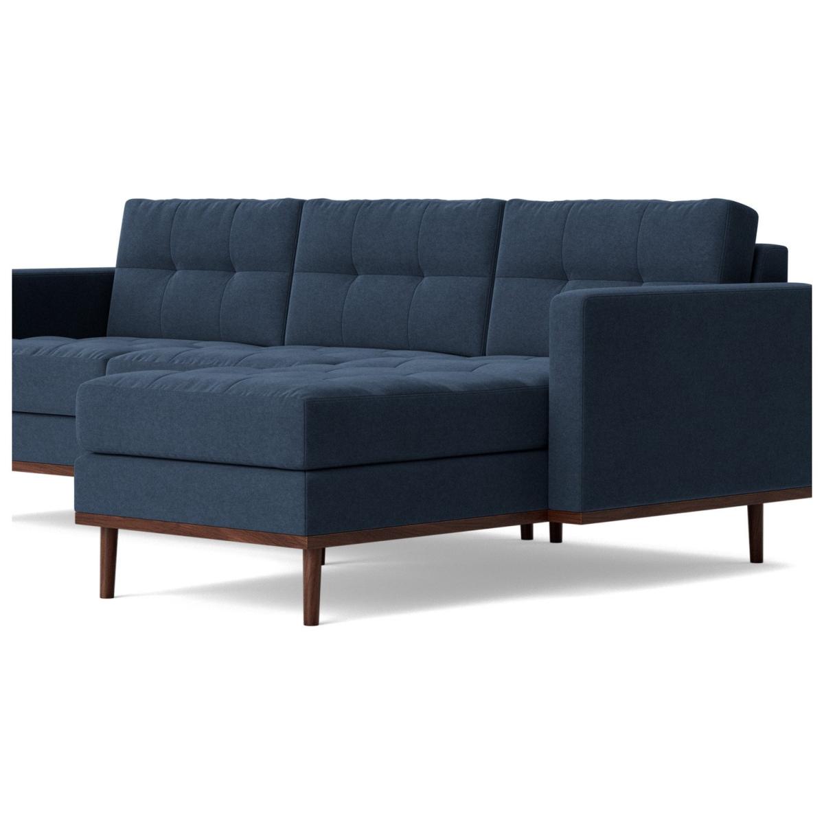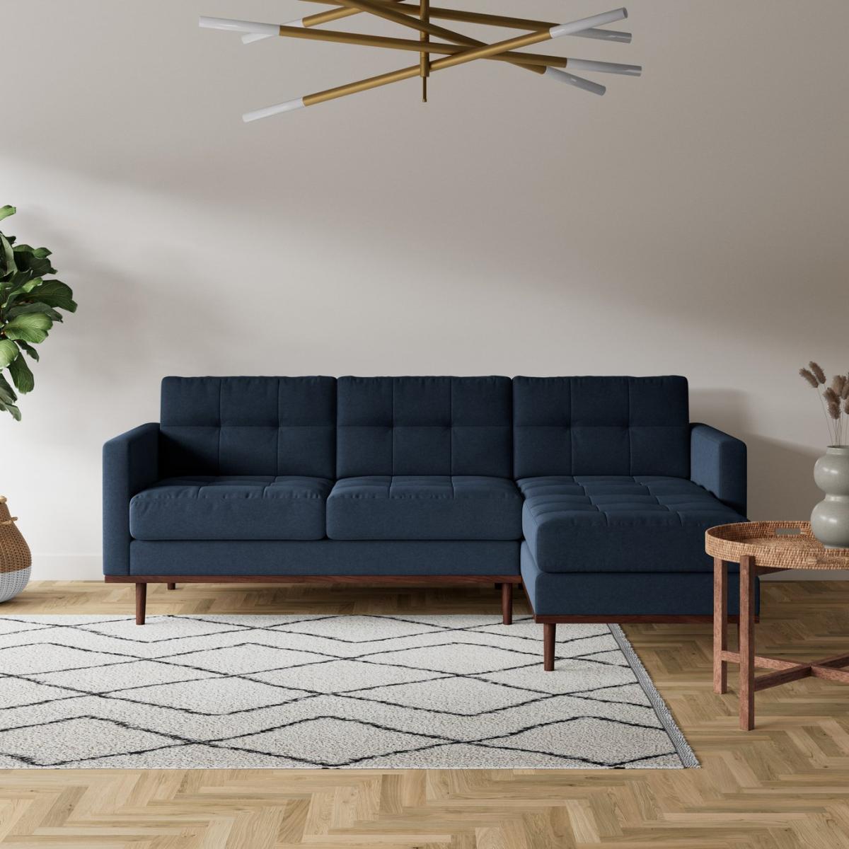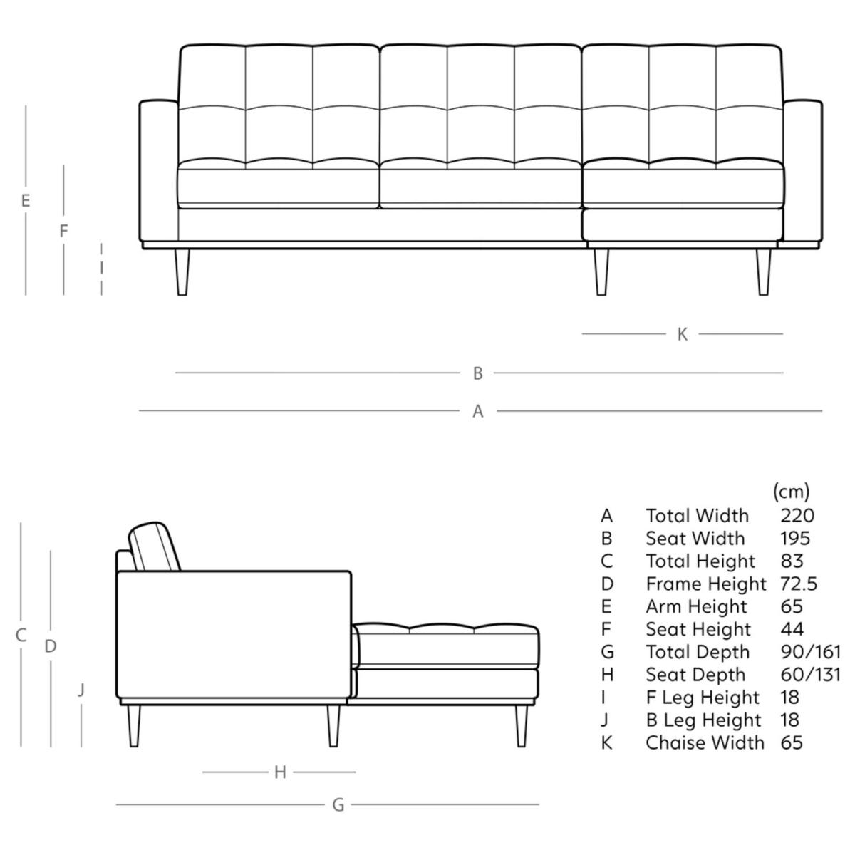 You'll never have an empty house again. This large corner sofa is very ready for your next gathering. We were so struck by the Berlin when it arrived. In fact, we're still speechless (well, almost). Those clean lines, that tufting on the cushions, this seating sensation is a Mid-Century marvel on legs - beech ones. Want more? Have a look at designs from Swoon's Berlin Mid Century sofa range. See the collection of ottomans, armchairs, love seats, sofa beds, 2, 3 and 4-seater couches, chaise and corner sofas. Don't forget to order a free fabric swatch. Part of the Berlin collection. Right hand corner. Material: Made from 100% polyester. Wooden feet. Fixed seats with foam and fibre filling. Free fabric swatch available on this line. Dimensions: Size H83, longer width 220, shorter width 220, D93cm. Floor to seat height: 44cm. Depth of seat: 131cm. Height of seat back: 39cm. Shorter seating area width between arms: 220cm. Longer seating area width between arms: 220cm. Height of arm rest: 65cm. Weight: 72.5kg. Packaged dimensions: Package size H82, W153.5, D99cm. Second package size H82, W87.5, D161cm. General information: Professional clean only. Plump cushions regularly to maintain shape. Self-assembly. Maximum individual user weight: 450kg. Manufacturer's 10 year frame guarantee.
