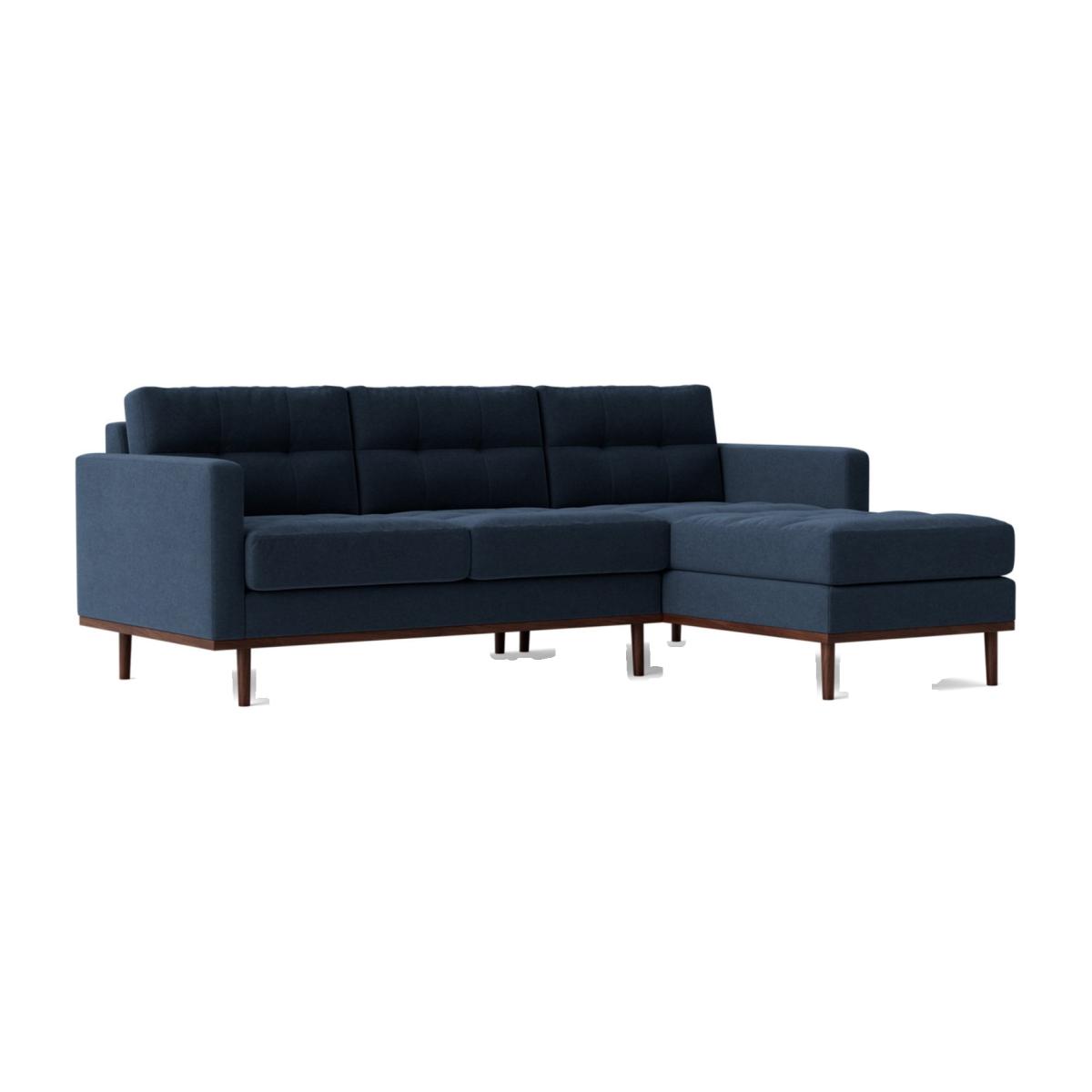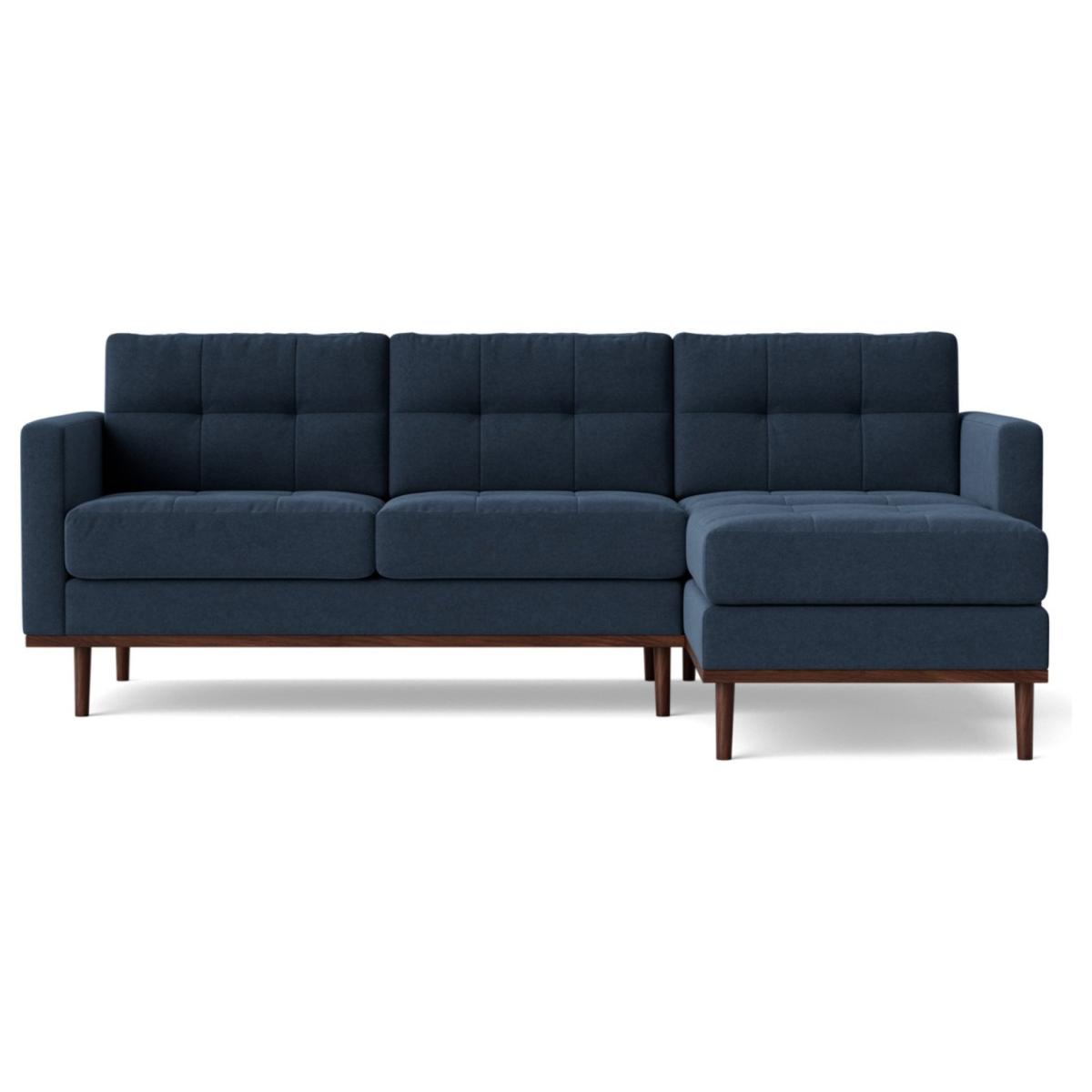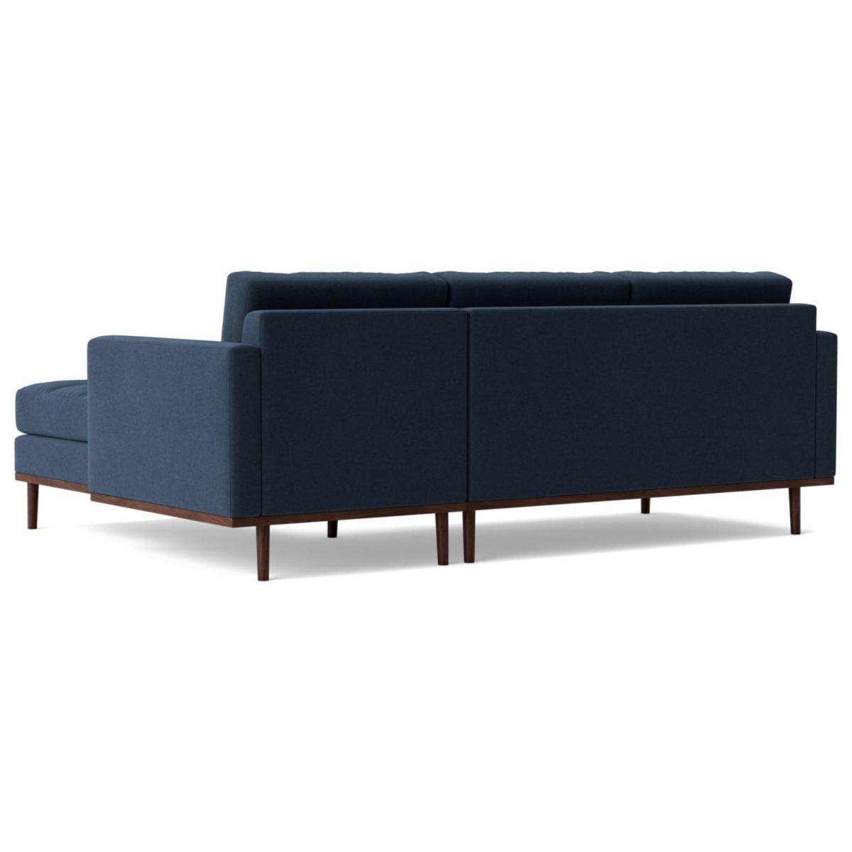 You'll never have an empty house again. This large corner sofa is very ready for your next gathering. We were so struck by the Berlin when it arrived. In fact, we're still speechless (well, almost). Those clean lines, that tufting on the cushions, this seating sensation is a Mid-Century marvel on legs - beech ones. Want more? Have a look at designs from Swoon's Berlin Mid Century sofa range. See the collection of ottomans, armchairs, love seats, sofa beds, 2, 3 and 4-seater couches, chaise and corner sofas. Don't forget to order a free fabric swatch. Part of the Berlin collection. Right hand corner. Material: Made from 100% polyester. Wooden feet. Fixed seats with foam and fibre filling. Free fabric swatch available on this line. Dimensions: Size H83, longer width 220, shorter width 220, D93cm. Floor to seat height: 44cm. Depth of seat: 131cm. Height of seat back: 39cm. Shorter seating area width between arms: 220cm. Longer seating area width between arms: 220cm. Height of arm rest: 65cm. Weight: 72.5kg. Packaged dimensions: Package size H82, W153.5, D99cm. Second package size H82, W87.5, D161cm. General information: Professional clean only. Plump cushions regularly to maintain shape. Self-assembly. Maximum individual user weight: 450kg. Manufacturer's 10 year frame guarantee.