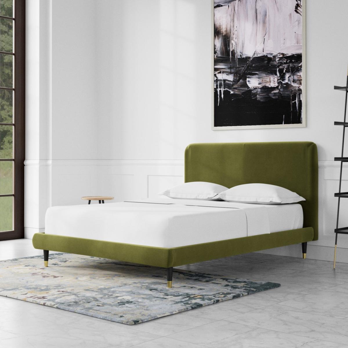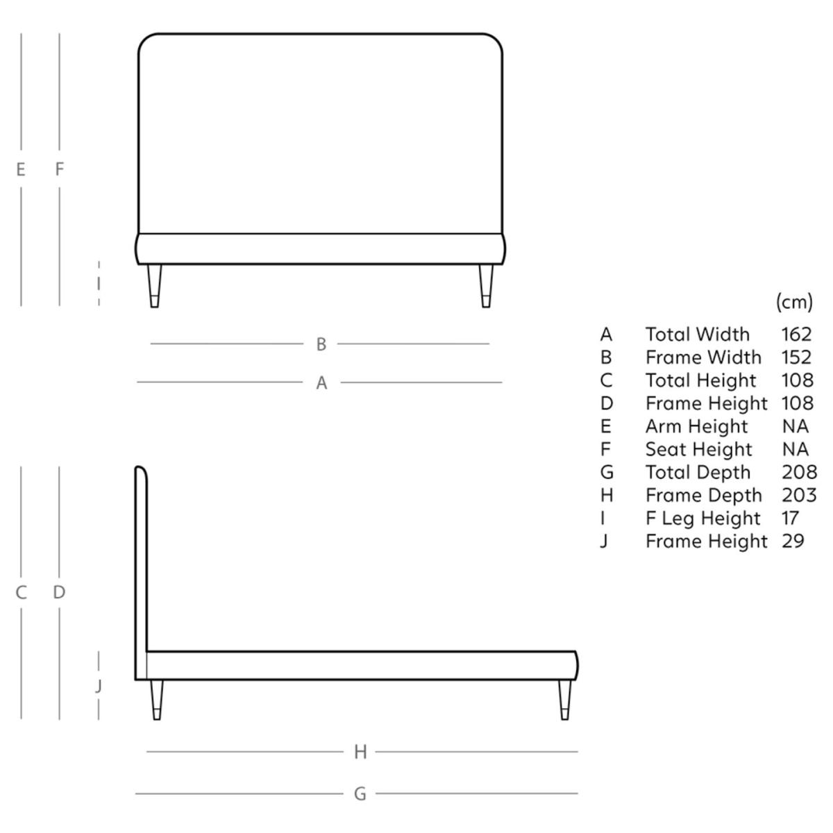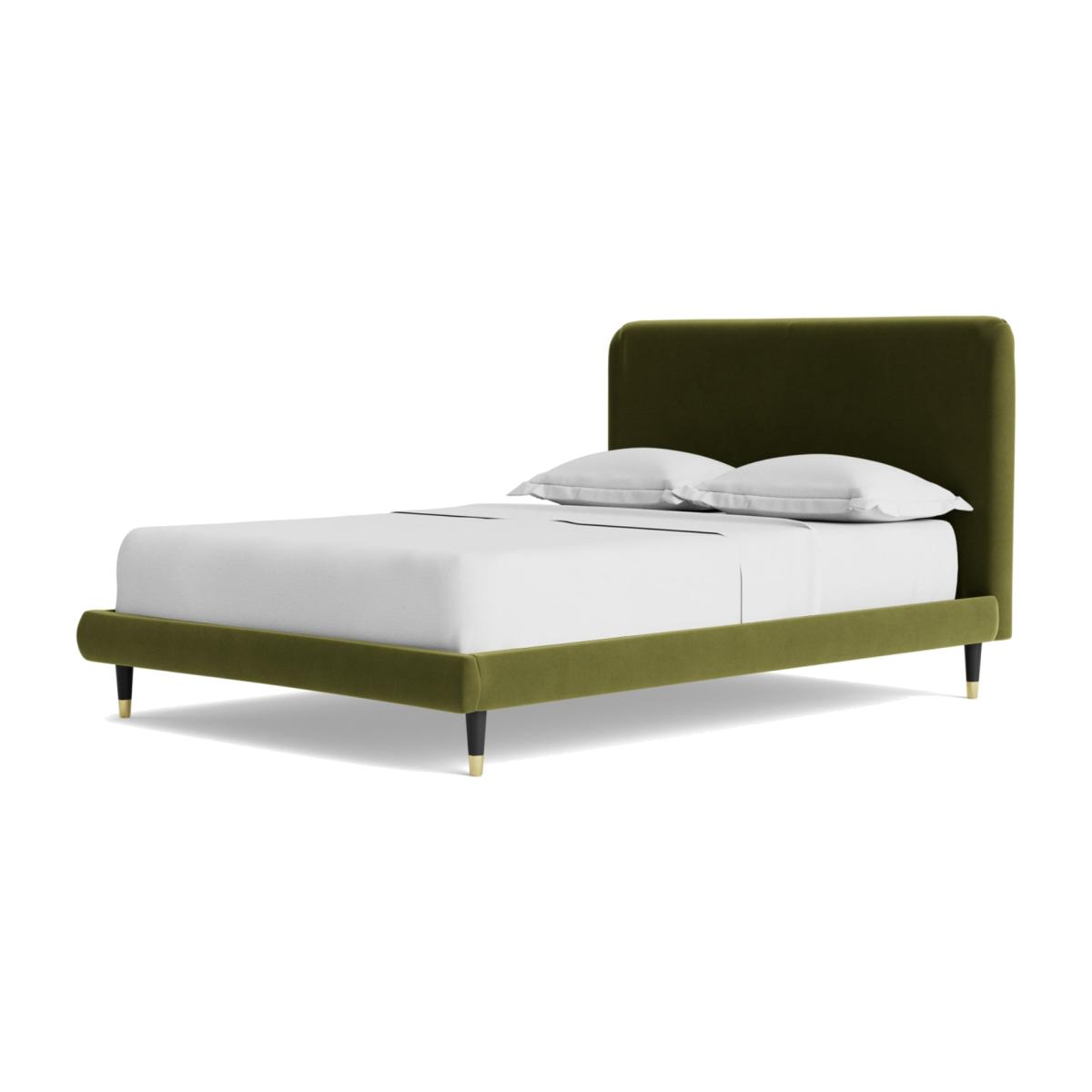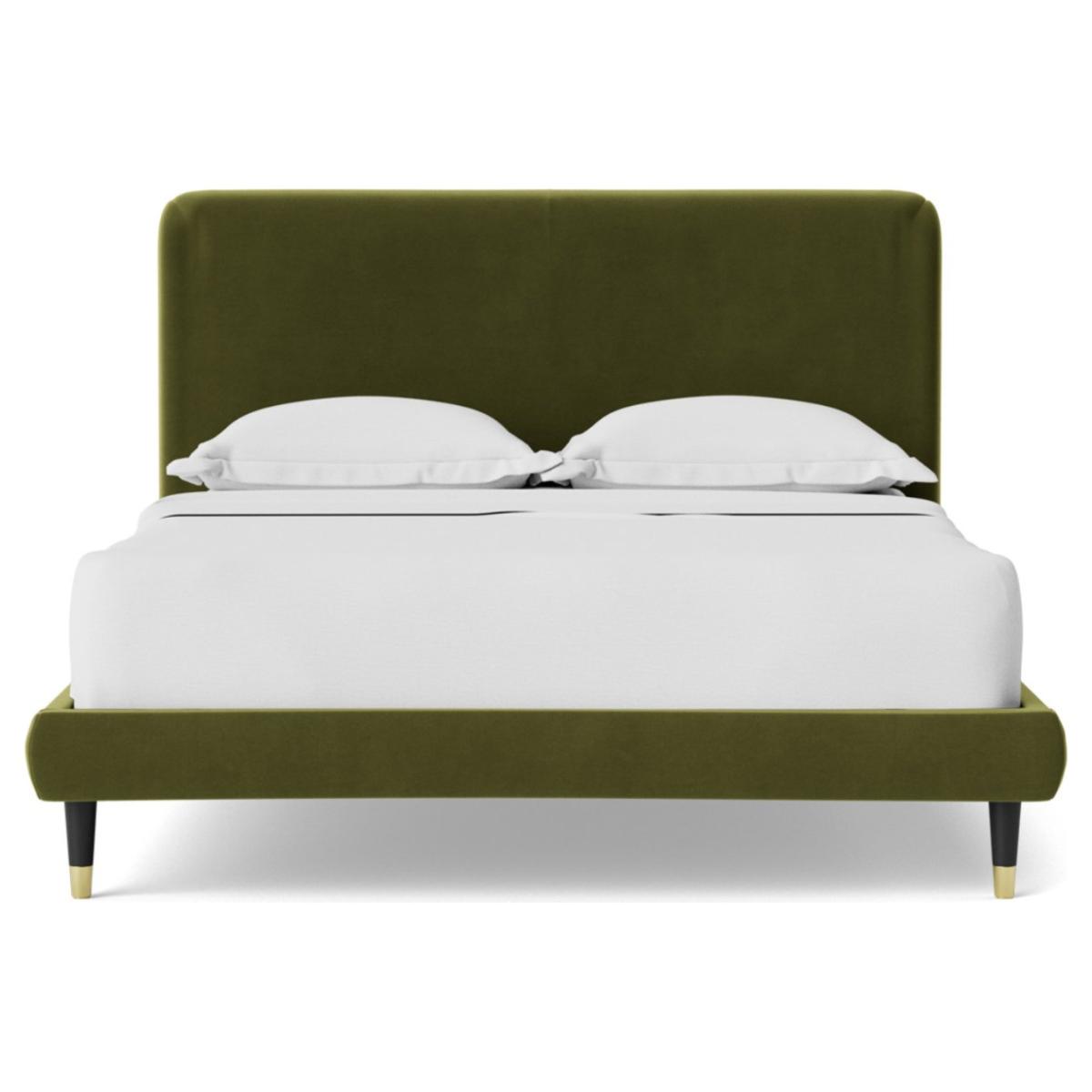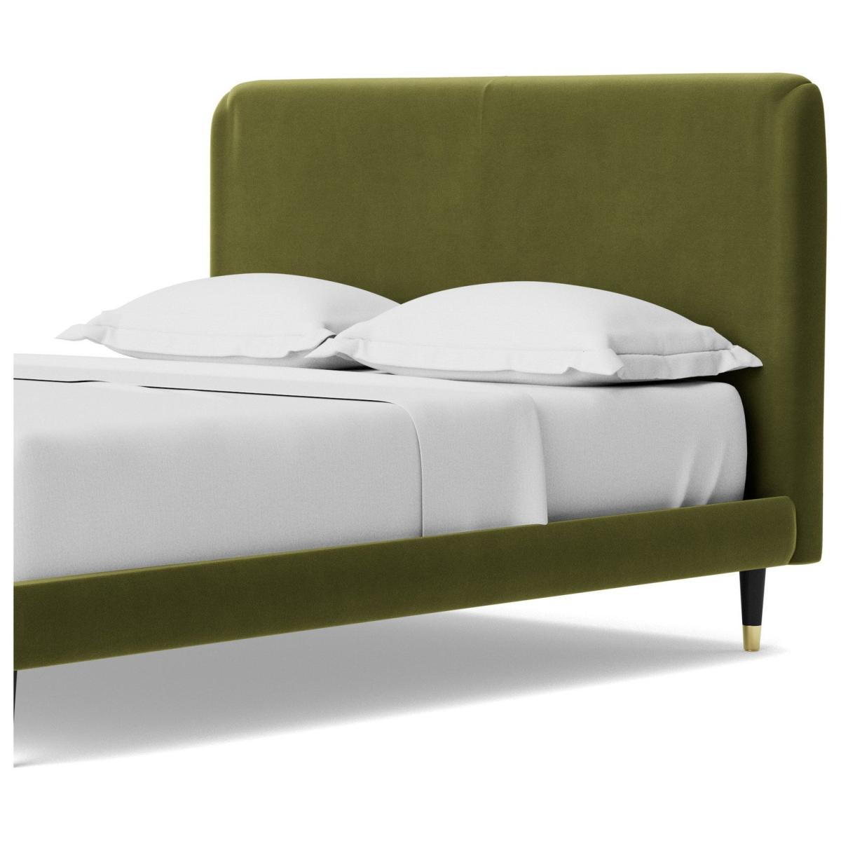 A clean and simple piece, the Brockham lends itself amiably to near any style or decor. The subtly rounded edges and corners of the headboard soften the frame further ensuring this piece guarantees a comfortable night's sleep. Want more? Have a look at designs from Swoon's Brockham bespoke bed range. See the collection of bed frames and ottoman beds. Don't forget to order a free fabric swatch. Our made to order furniture service means you can choose from different options, such as fabric, size and shape to create a beautiful bespoke piece of furniture. Because this piece is designed just for you, you might notice the delivery time is a little longer than usual. Luxurious and extra durable this deep pile velvet is sensually soft to the touch and doesn't mark or crease like traditional velvets. Part of the Brockham collection. Fabric frame. Easy velvet fabric - 100% polyester. Dark wood and brass feet. Base with sprung wooden slats. No storage. Size W162, L208, H108cm. Height to top of siderail 29cm. 17cm clearance between floor and underside of bed. Weight 58kg. Total maximum user weight 220kg. Self-assembly - 2 people recommended. Package Dimensions: Package 1 dimensions: H167.5, W95.5, D11cm. Package 1 weight: 18kg. Package 2 dimensions: H206.5, W43, D14cm. Package 2 weight: 40kg. General Information: Manufacturer's 1 year guarantee.