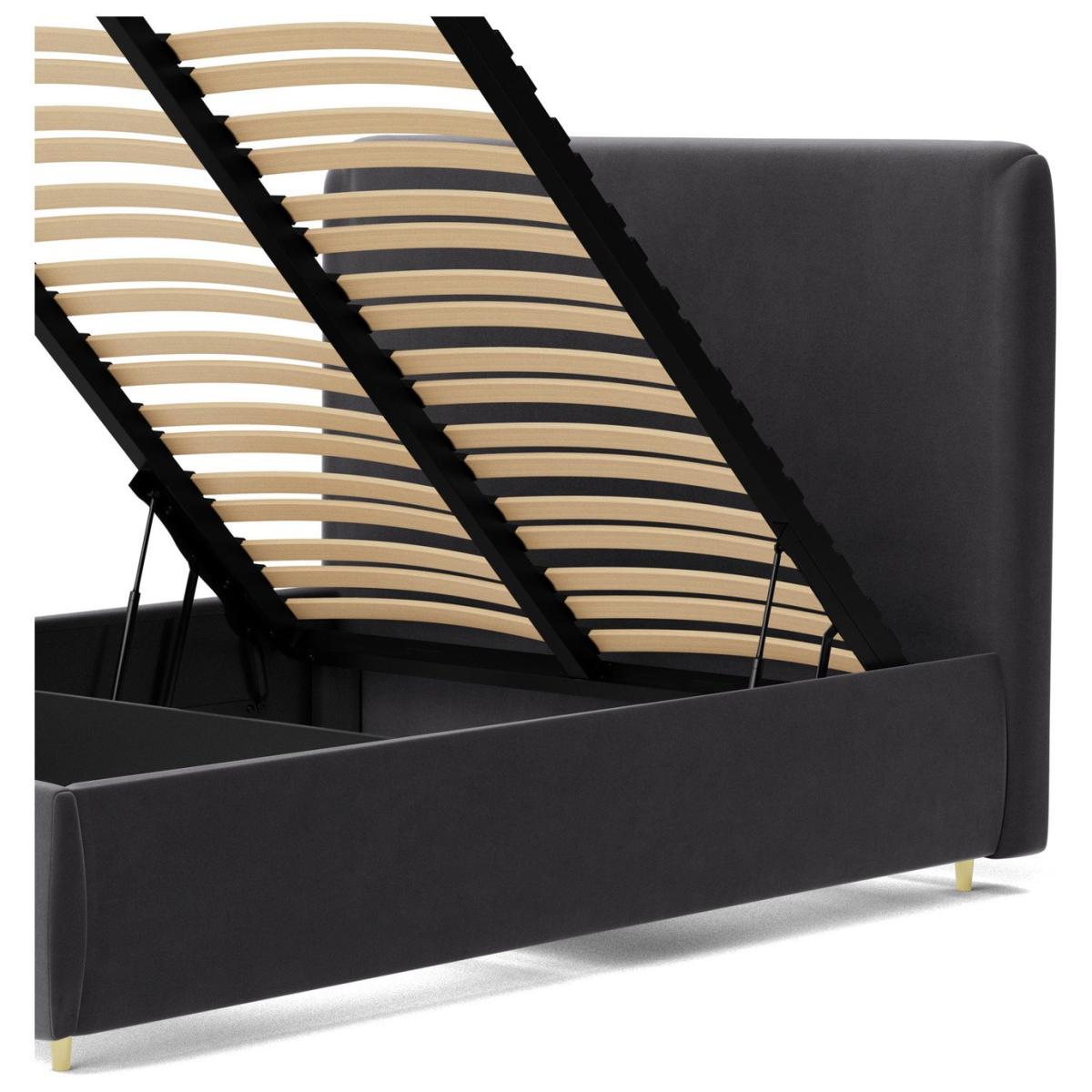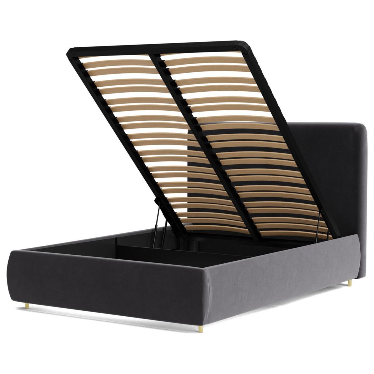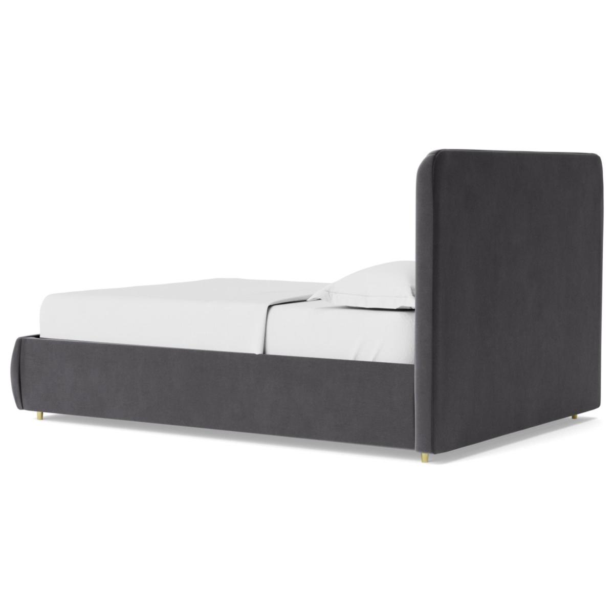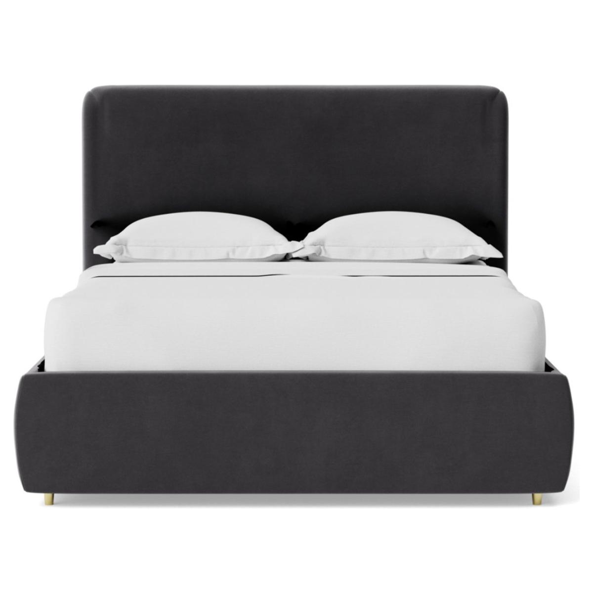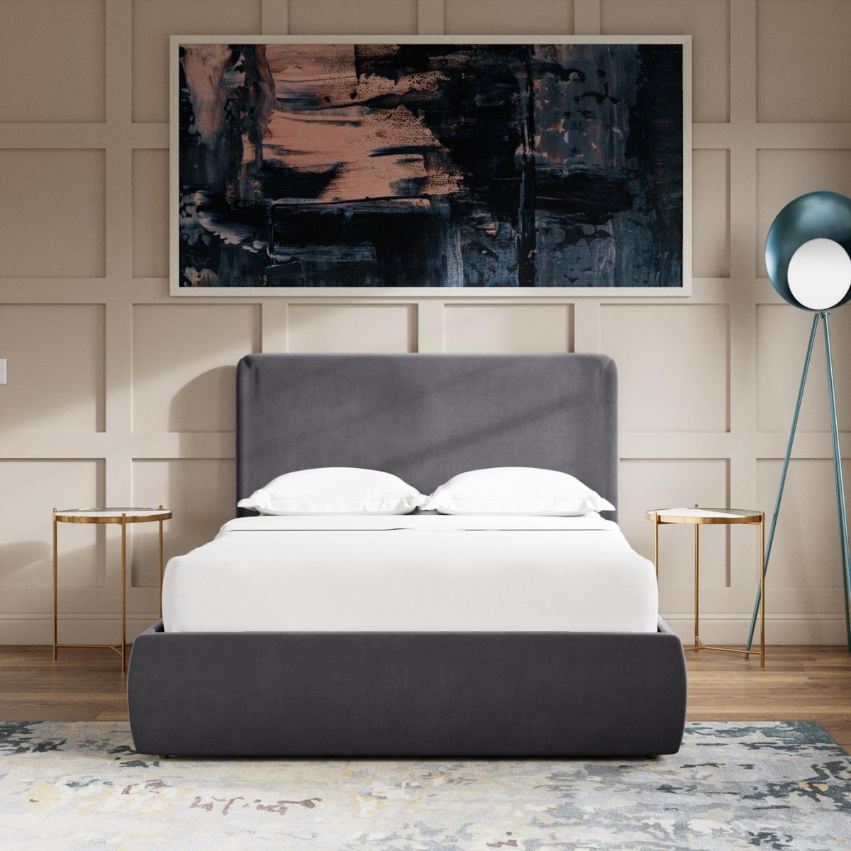 With its clean and simple lines, the Brockham sits nicely with any style. The perfectly padded frame is softened even further by the subtly rounded headboard. And there's more. Lift up the end of the bed using its nifty mechanism to reveal loads of storage space underneath. Want more? Have a look at designs from Swoon's Brockham bespoke bed range. See the collection of bed frames and ottoman beds. Don't forget to order a free fabric swatch. Featuring beech frame and plywood sprung slats. Our made to order furniture service means you can choose from different options, such as fabric, size and shape to create a beautiful bespoke piece of furniture. Because this piece is designed just for you, you might notice the delivery time is a little longer than usual. Luxurious and extra durable this deep pile velvet is sensually soft to the touch and doesn't mark or crease like traditional velvets. Part of the Brockham collection. Fabric frame. Easy velvet fabric - 100 % polyester. Dark wood and brass feet. Base with sprung wooden slats. End lift. Ottoman: end opening. Storage capacity: 945 litres. Size W165, L215, H109.5cm. Height to top of siderail 29cm. 5cm clearance between floor underside of bed. Weight 82kg. Total maximum user weight 220kg. Self-assembly - 2 people recommended. Package Dimension: Package 1 dimension H14, W196, D26cm. Package 1 weight: 34.9kg. Package 2 dimensions: H38, W205, D19.2cm. Package 2 weight: 26kg. Package 3 dimension: H11, W165, D105cm. Package 3 weight: 21kg. General information: Manufacturer's 10 year frame guarantee.